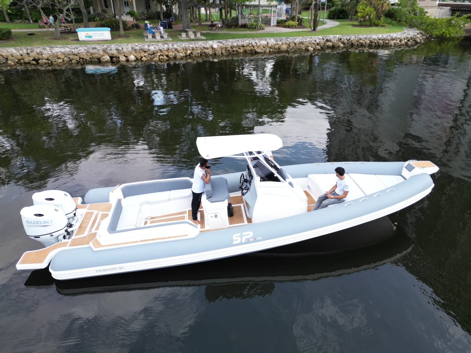 The Comfort 30 by Sea Prop is a versatile and powerful RIB, designed to provide a smooth and enjoyable boating experience. Measuring 30 feet in length, this boat is a great choice for those who value agility and speed. Despite not having a cabin, the Comfort 30 still offers comfort and practicality with its well-appointed deck and a head for added convenience. The engine options of twin 200hp to 250hp provide ample power for any boating adventure, whether it be for fishing, cruising, or water sports. With a sleek and modern design, this boat is sure to turn heads and provide unforgettable memories on the water.
