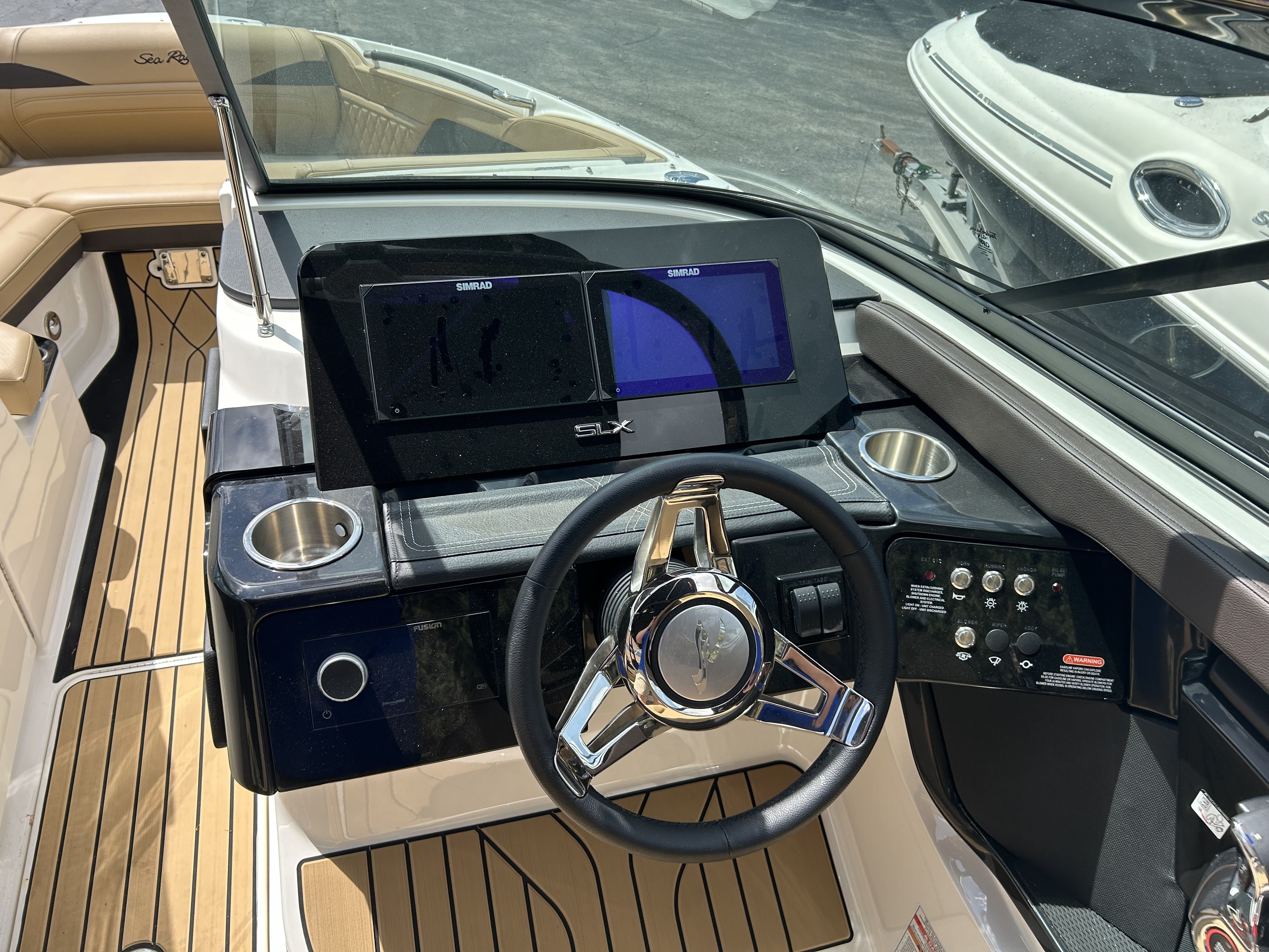 Contact us to find out ALL available savings! Take advantage of limited-time savings on in-stock boats!All Sale and/or Clearance Prices include all rebates and incentives.Discover a carefree escape from the ordinary in a boat that shines bright with a full range of advanced features. The award winning SLX 260 Outboard showcases signature Sea Ray design elements and everything carefully considered from bow to stern. Seating has been improved for a smooth and luxurious ride. Integrated storage keeps gear, watersports equipment and other items secure and within reach. The expanded transom sunpad encourages relaxation and fun at the water's edge. Aboard the SLX 260 Outboard, refined enhancements and intuitive technology combine for an exceptional on-water experience.