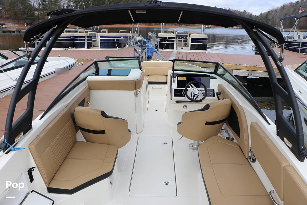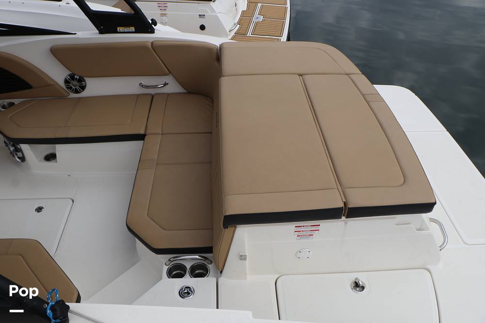 All key functions are close at hand, with a Simrad display for navigation and a Fusion Bluetooth stereo system powering clear audio through marine-grade speakers. A private changing room/head compartment provides comfort and convenience, and ample storage keeps your gear neatly organized.