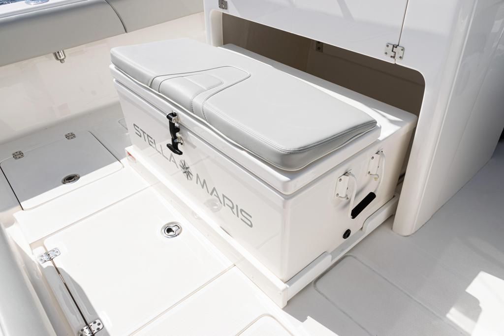 -145 qt fiberglass cooler under helm w/ acrylic sliding tray