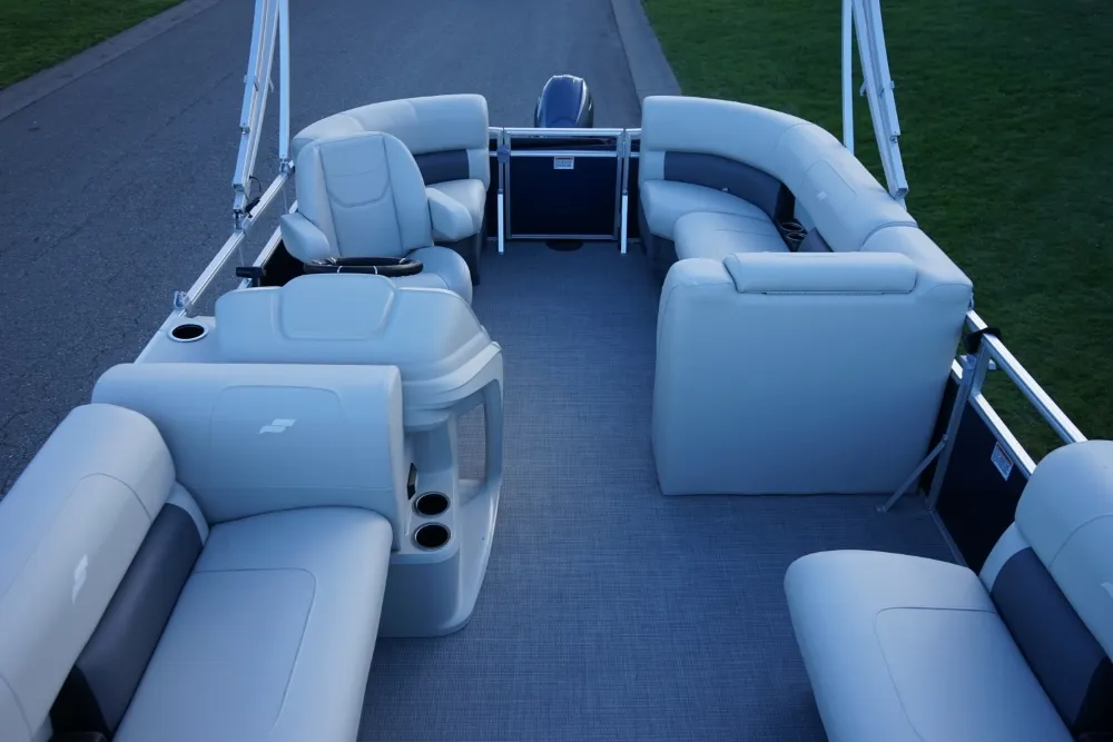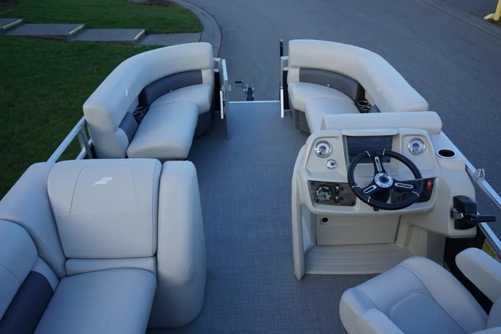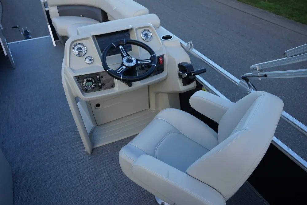 Kick back and enjoy summer sun with our LX series of versatile and affordable pontoons. Available in floorplans from 16' to 22', LX cruising models come with upgraded sea weave flooring, a custom-molded console and a bimini top for protection from the sun, while fishing models include pedestal-mount fishing seats and a fully plumbed livewell.• Yamaha F60LB• Convenience Package• Blue Playpen Cover• Full Front Gate• Tilt Steering• Bimini Top• Jensen Stereo• Docking Lights• Mood Lights• 5-Step Ladder• Motor Cowling Cover• TrailerMaster Marine Boat Center | To learn more about this listing, give us a CALL or TEXT at (360) 336-2176, email us at sales@mastermarine.com, or visit our website at mastermarine.com.