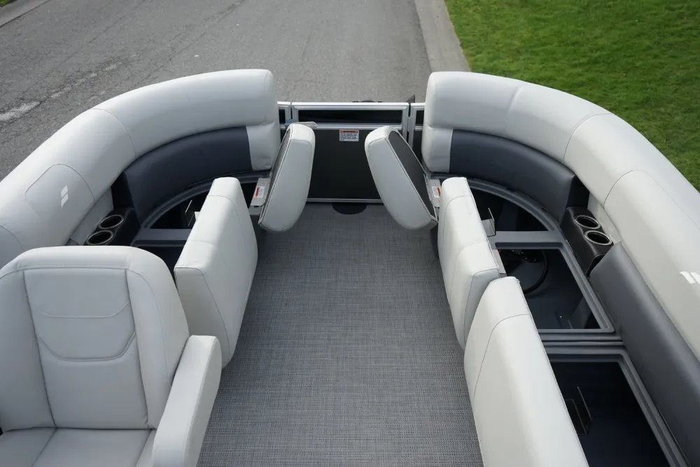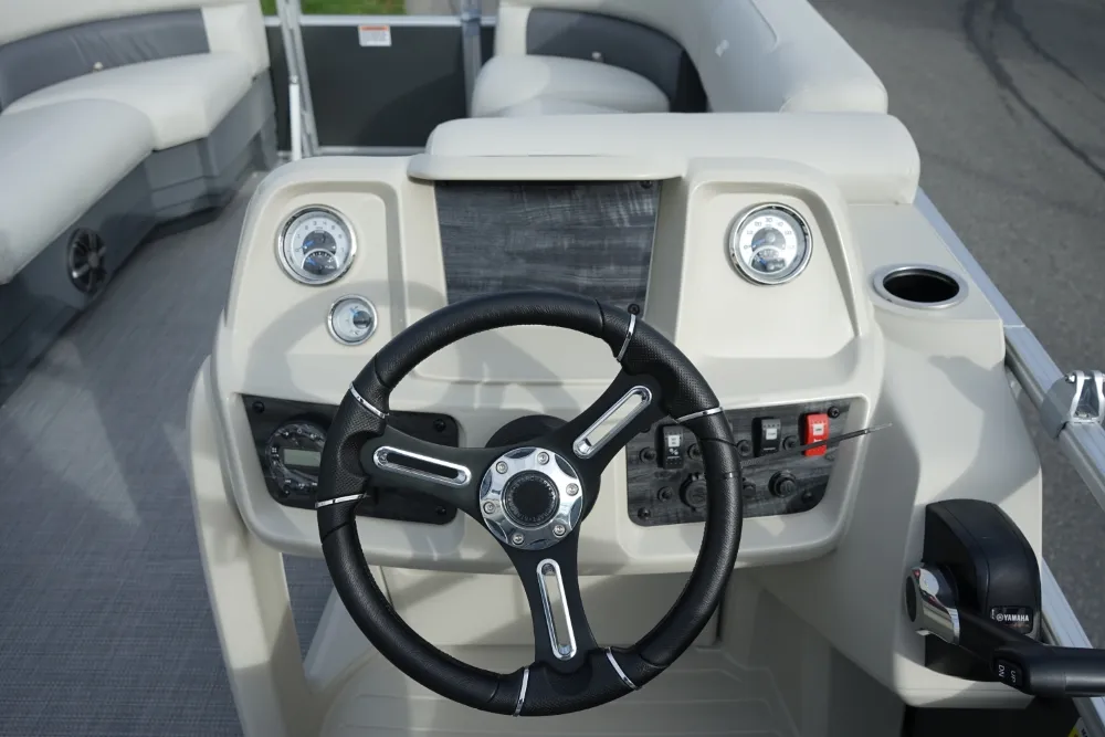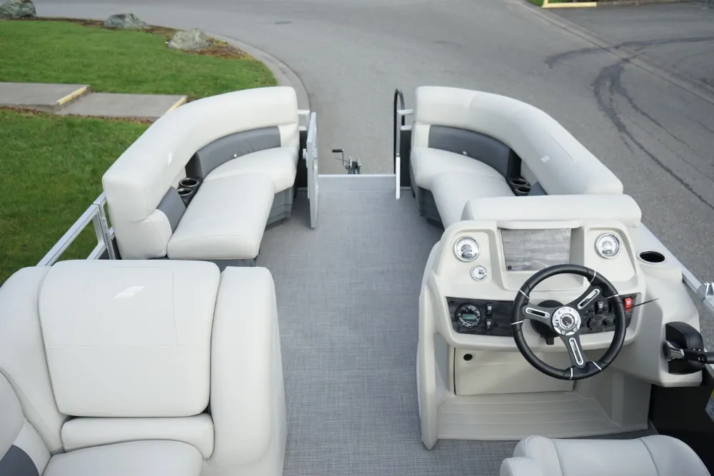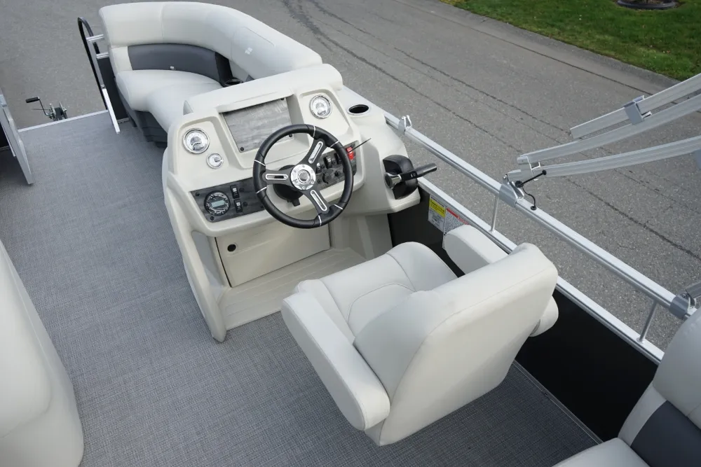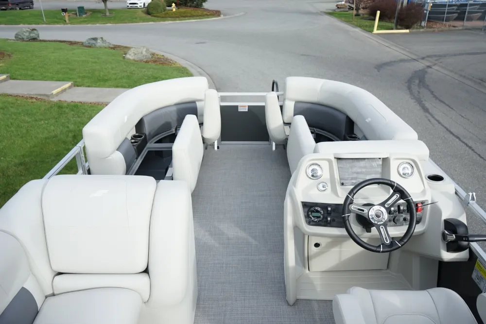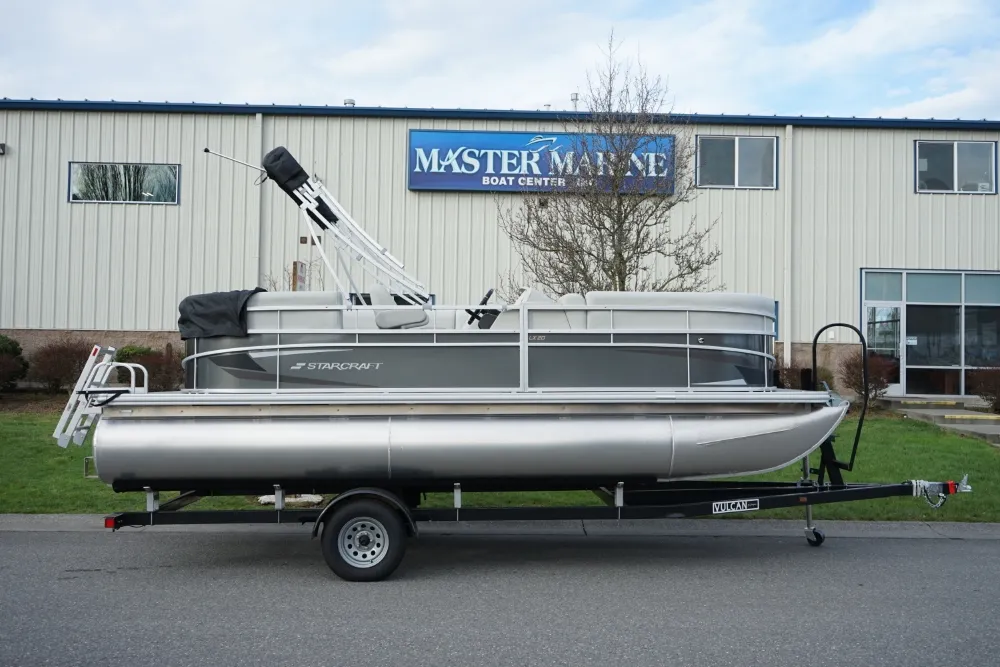 Kick back and enjoy summer sun with our LX series of versatile and affordable pontoons. Available in floorplans from 16' to 22', LX cruising models come with upgraded sea weave flooring, a custom-molded console and a bimini top for protection from the sun, while fishing models include pedestal-mount fishing seats and a fully plumbed livewell. • Yamaha F70LA • Convenience Package • Black Playpen Cover • Extra Table Floor Base • Full Front Gate • Tilt Steering • Bimini Top • Jensen Stereo w/4 Speakers • Docking Lights • 5-Step Ladder • Mood Lights • Motor Cowling Cover • TrailerMaster Marine Boat Center | To learn more about this listing, give us a CALL or TEXT at (360) 336-2176, email us at sales@mastermarine.com, or visit our website at mastermarine.com.