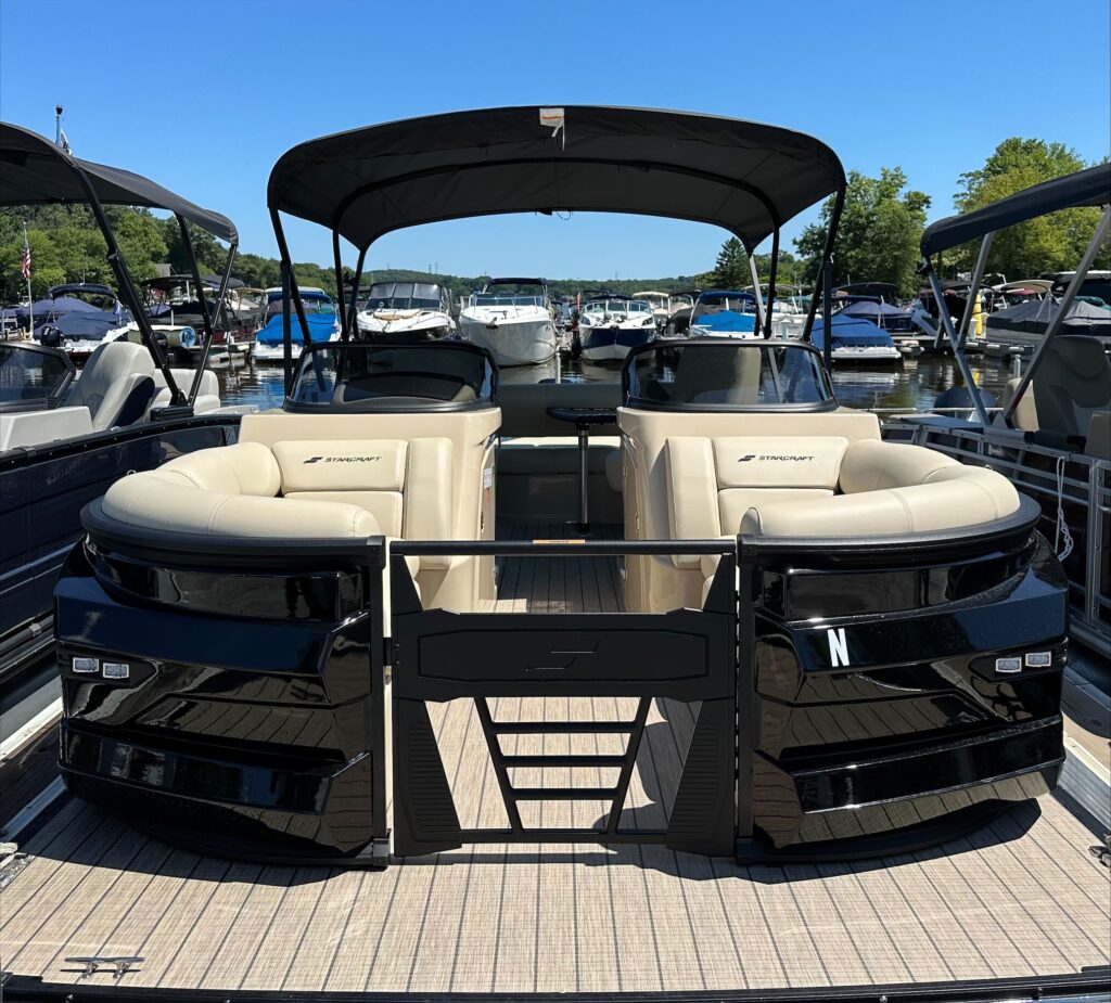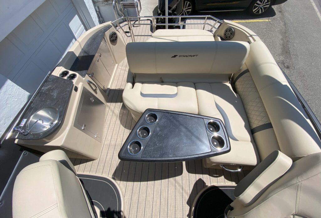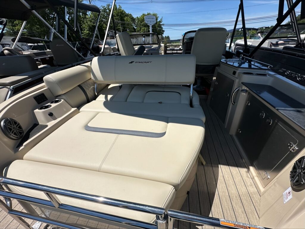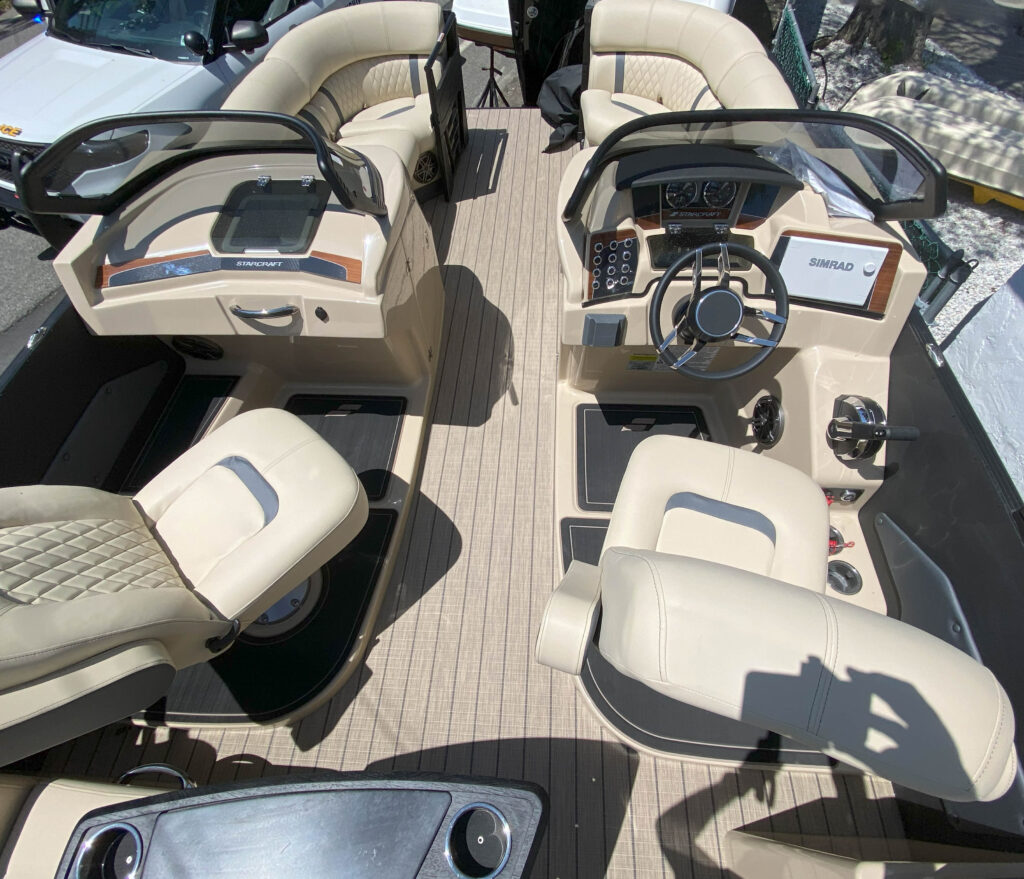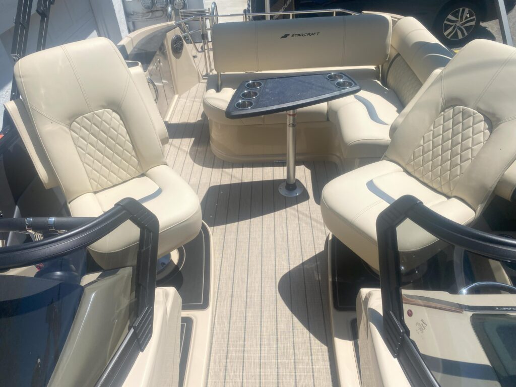 Luxury lives here. Starcraft Marine’s new flagship pontoon boat series, this RX 23 Q DC, is all about pampering you and your family with its plush tan furniture and 250 HP performance.