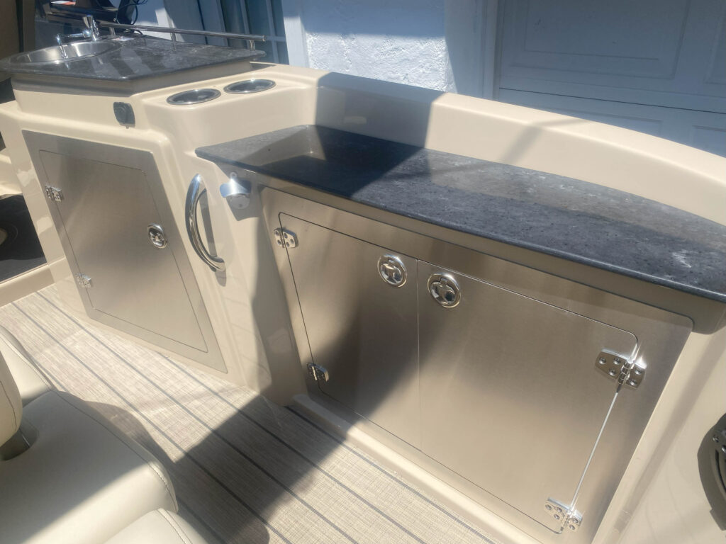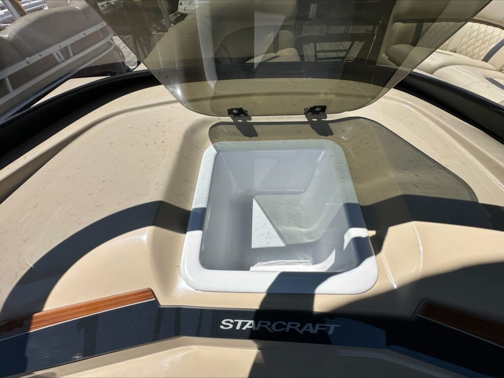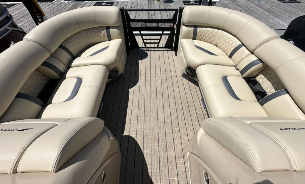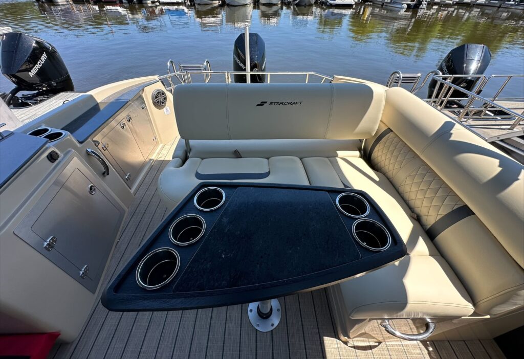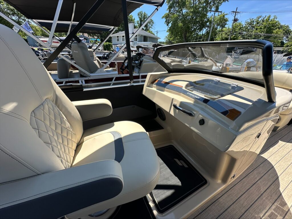 Luxury lives here. Starcraft Marine’s new flagship pontoon boat series, this RX 23 Q DC, is all about pampering you and your family with its plush tan furniture and 250 HP performance.