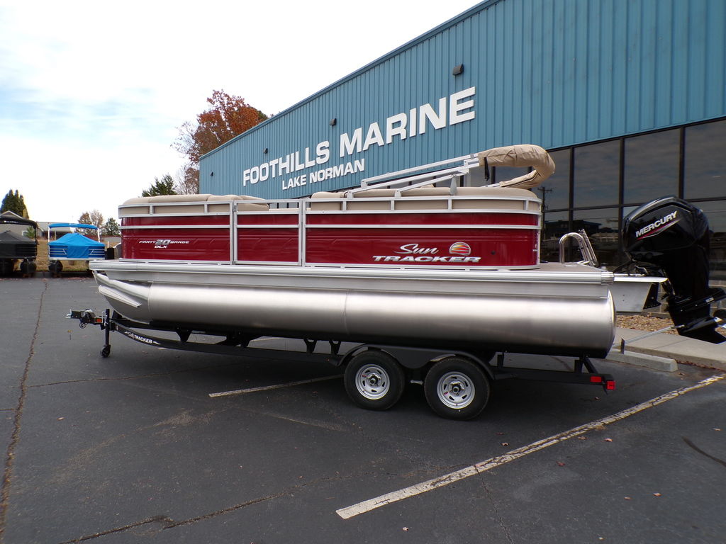 2024 Sun Tracker Party Barge® 20 DLX The PARTY BARGE® 20 DLX is perfect for those who want a spacious recreation pontoon boat that’s big enough to handle a crew of up to 10, but isn’t so big it can’t be towed and launched by just two. Regardless your crew’s size, this pontoon boat packs the right amount of features for a full day of fun. To start, check out the dual bow couches and midship L-lounge, all with the STOW MORE™ seat storage system to provide plenty of space for gear (the seat-back compartments can even be accessed safely while cruising!). Or, crank up the Bluetooth® stereo and take a cooling dive off the full-width swim platform—there’s even an extra-large ladder for easy reboarding. So, load it up with gear, load up the family and head to your favorite lake for some quality family time.