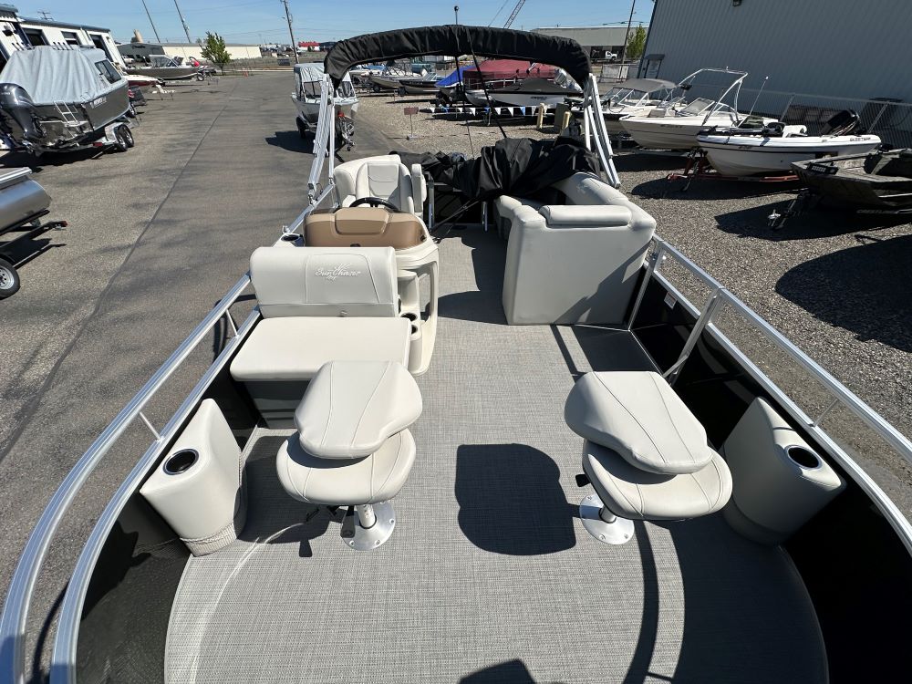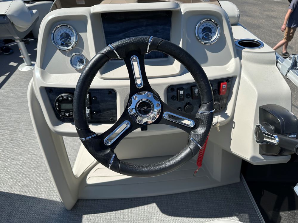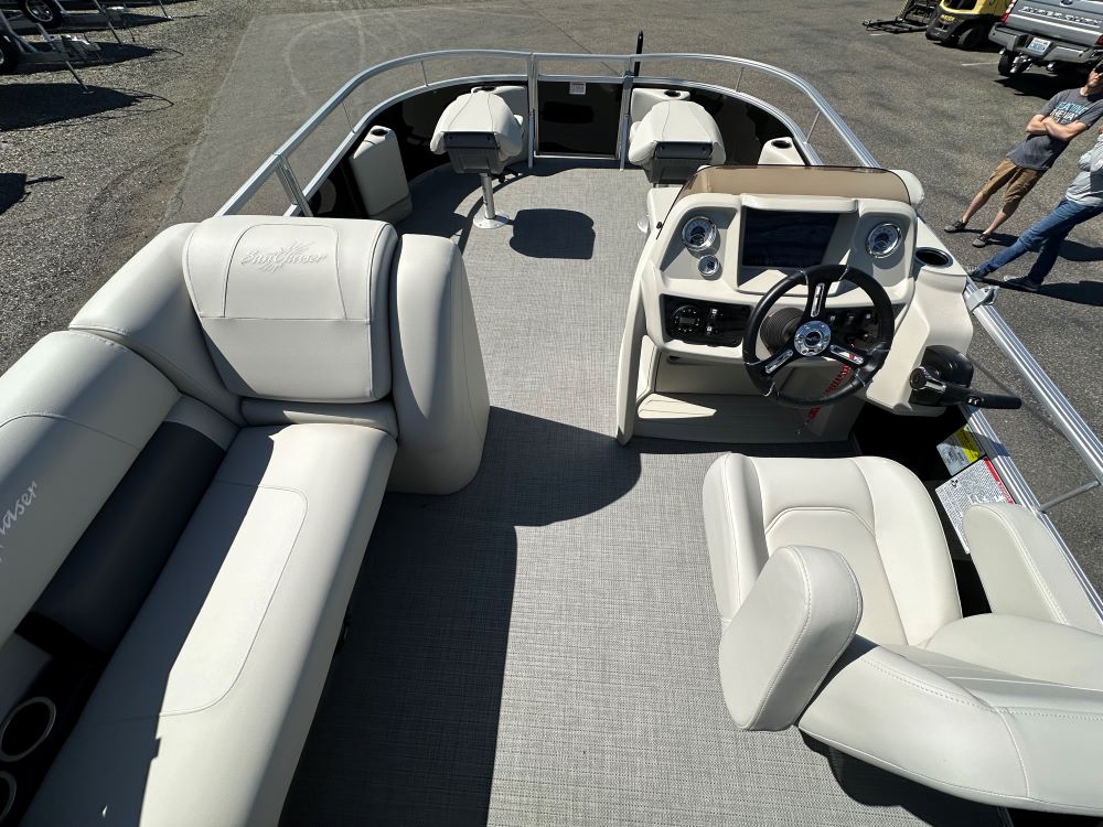 Cast off on your aquatic adventures with Vista, our most affordable pontoon series. Vista cruising models come with super comfortable lounge seats, a custom molded console and a 5-step retractable aluminum boarding ladder. Or choose one of the Vista fishing models, complete with pedestal-mount fishing seats and a plumbed LiveWell. Add a Convenience Package and enjoy premium upgrades like a JENSEN stereo, docking lights, tilt steering and mood lighting.