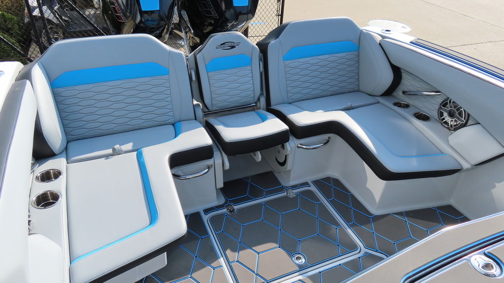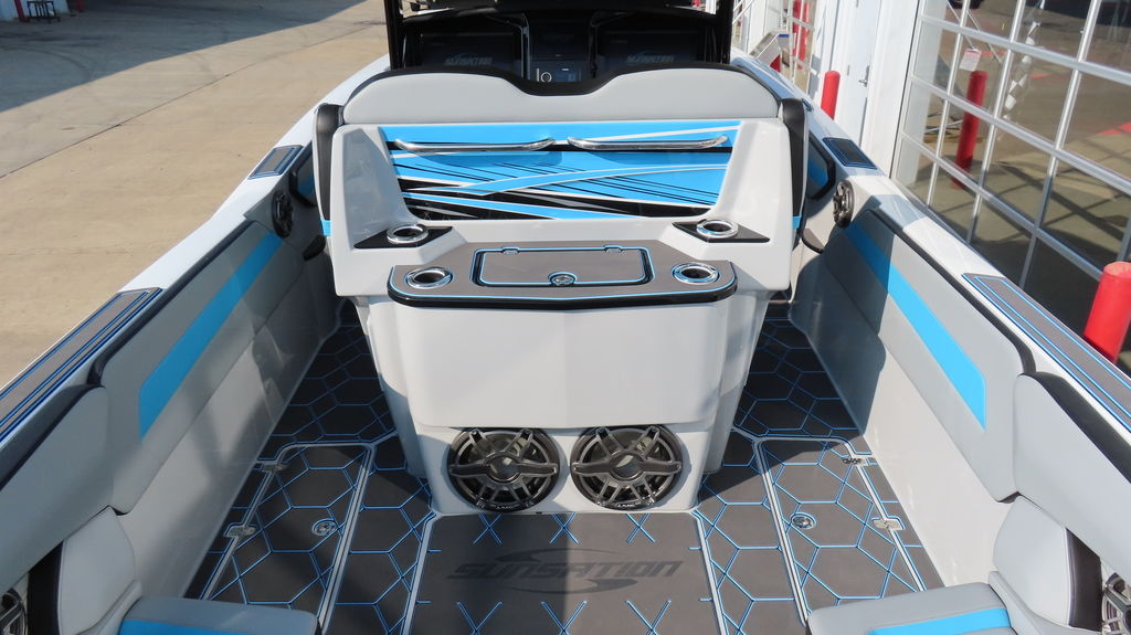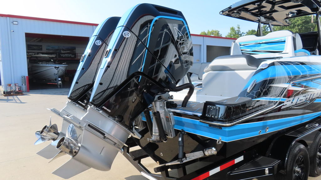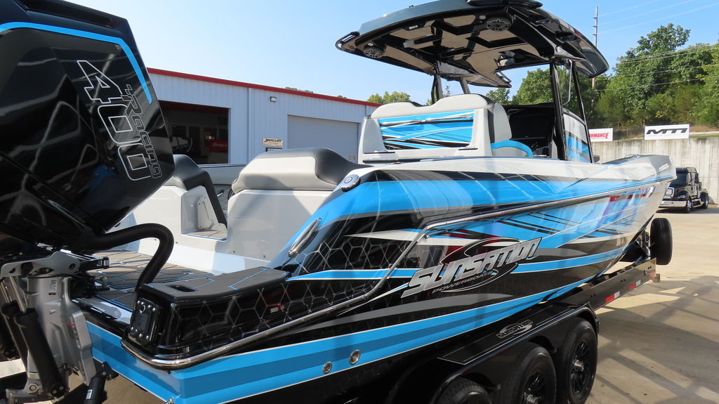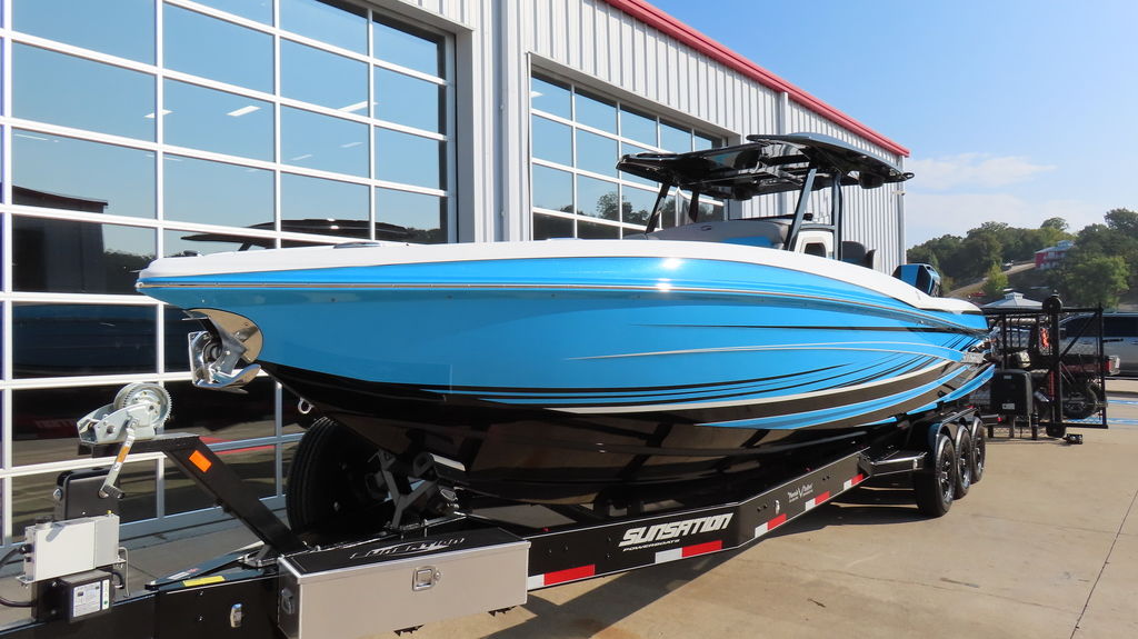 2024 Sunsation 32 ccx powered by twin Mercury Racing 400R V10, Trim tabs, Dual Garmin GPS, Mercury Vesselview, Fusion stereo with stage 3 JL audio sound system, Fusion bow remote and usb charger, Sea Deck flooring, Battery charger, Underwater lights, Porta potty, Swim ladder, Windlass anchor, Custom paint, Custom Phoenix painted trailer included