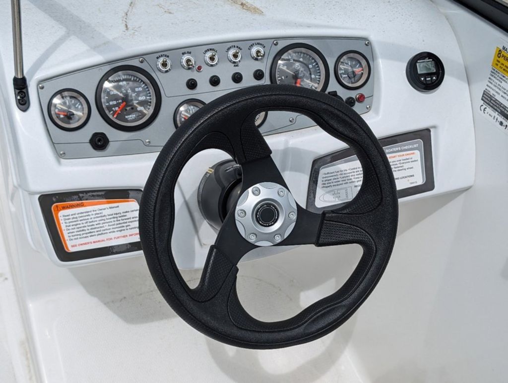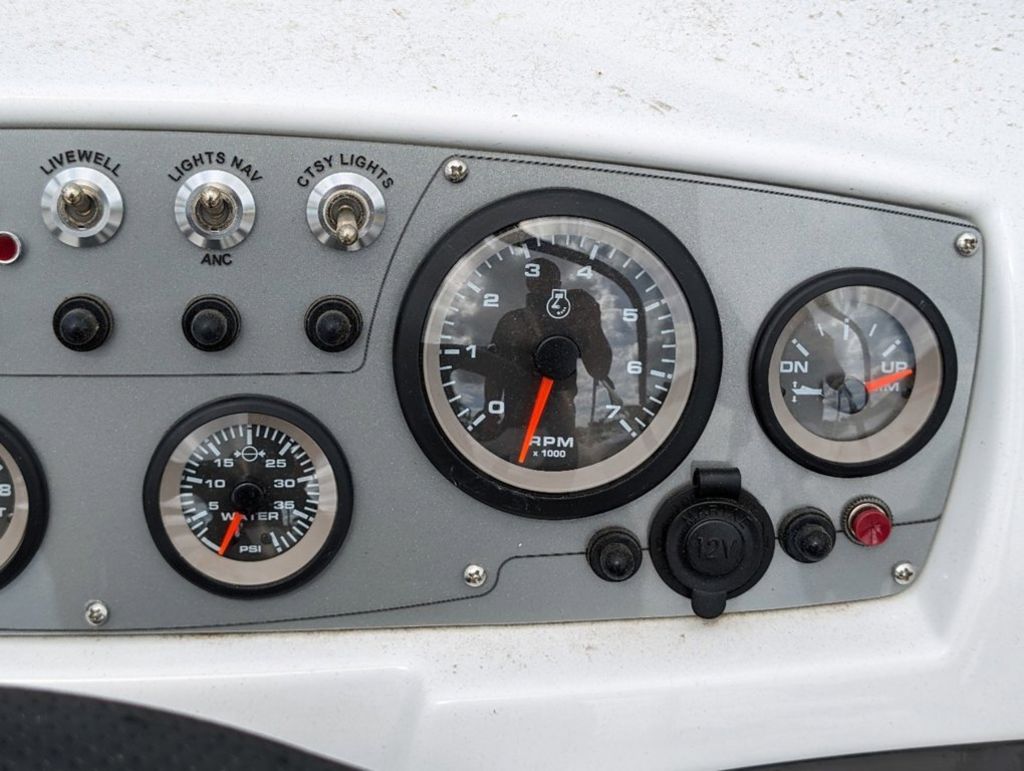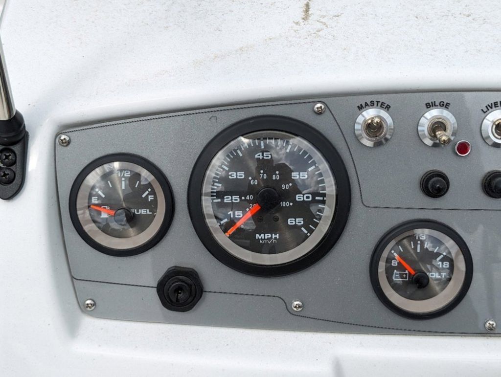 - Helm console w/speedometer, tachometer, fuel gauge, trim gauge, water pressure gauge & voltmeter
