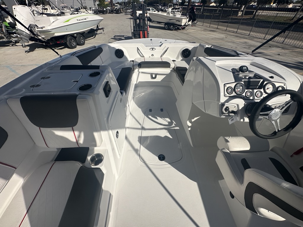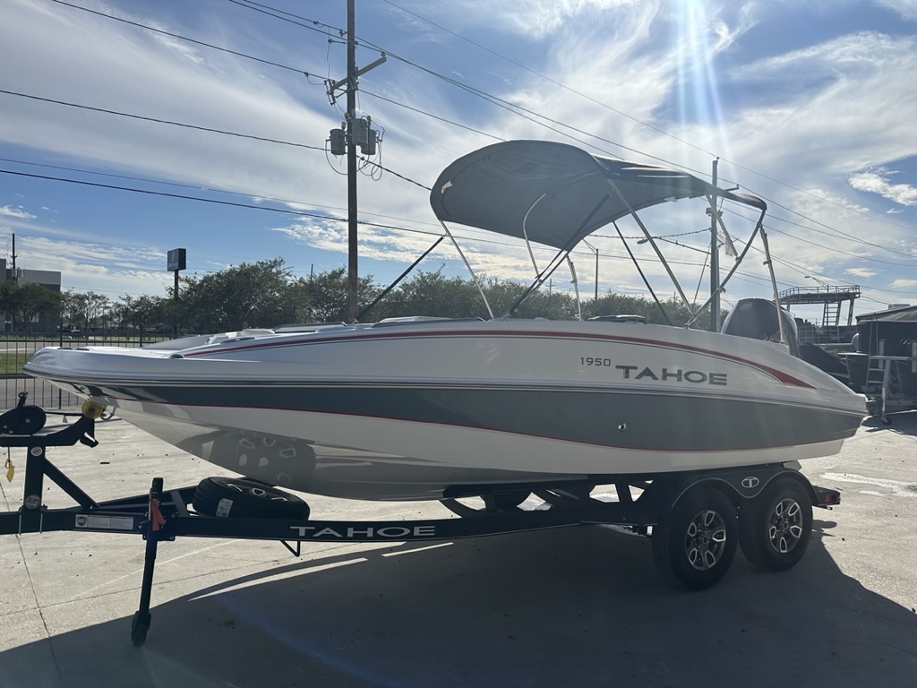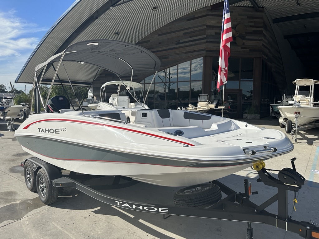The TAHOE® 1950 deck boat lets you experience summer the right way—on the water with family and friends in bountiful luxury with exhilarating performance.