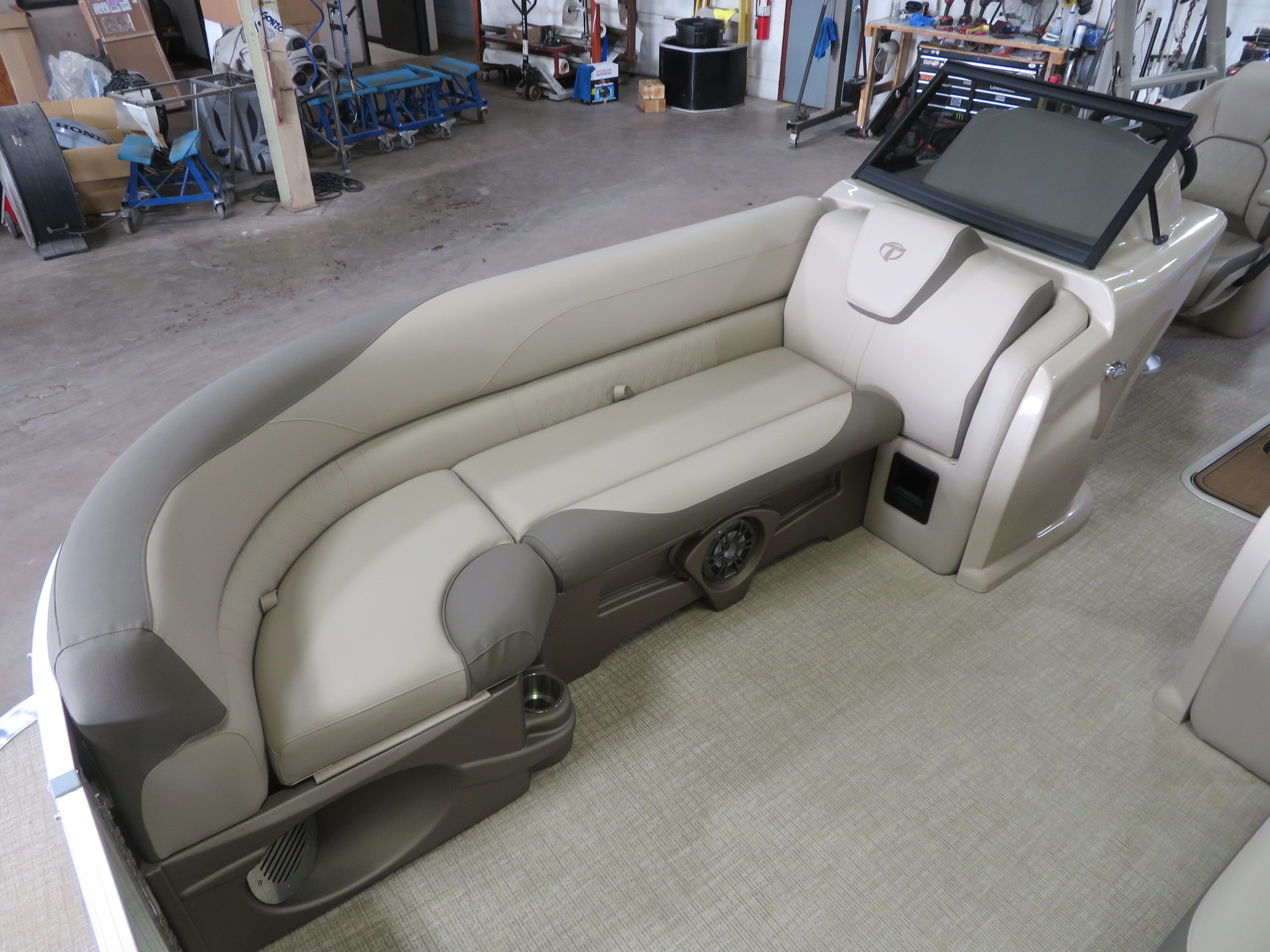 2024 Tahoe LTZ 2385 Elite Windshield Cruise Tritoon Pontoon & Suzuki 200HP 4-Stroke EFI. This Two Tone Cruise Pontoon Has 2 Lounge Bench Seating Up Front With Storage, Side Lounge Seating With Storage, Rear Wrap Around Lounge Seating With Sink, Paper Towel Holder & Cooler, Mid Back Commander Reclining Captain's Chair, Riptide Dune Vinyl Floor, Built-In 38 Gallon Gas Tank, LED Docking Lights, Buckskin Vinyl Package, Collapsible DECO Sport Tower, In-Tube Ski Storage Locker, 4 Buoy Holders, Side Keels, Privacy Station, LED Nav Lights, Gauge Package With Hour Meter, Fusion Bluetooth Radio With 4 Speakers, USB Input w/AUX, Electric Power Assist Tilt Steering, 25" Tubes, Duel USB Charging Port, 20 Quart Cooler, Aluminum Undersheeting, Lifting Strakes, Ski Tow Bar, Rear Starboard Stainless Steel Ladder, Roman Bronze Seat Cladding, Polished Corner Caps, Large Greywood Kidney Table, Lifetime Aluminum Seat Frames, Bimini Top, 25" Tubes, Multiple Cup Holders, Dual Battery Selector, Hi-Flex Logos, Mooring Cover, New Battery, Front And Rear Swim Deck. Rated For 12 People.