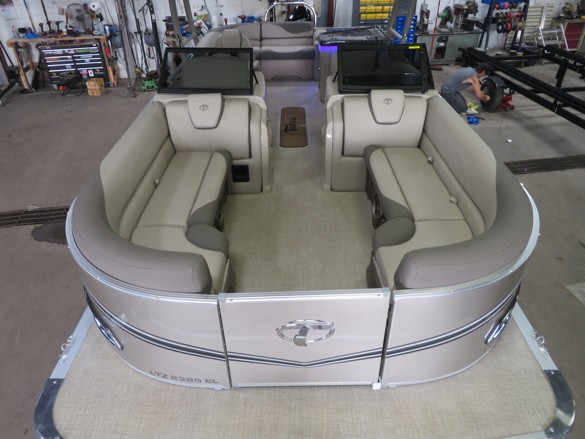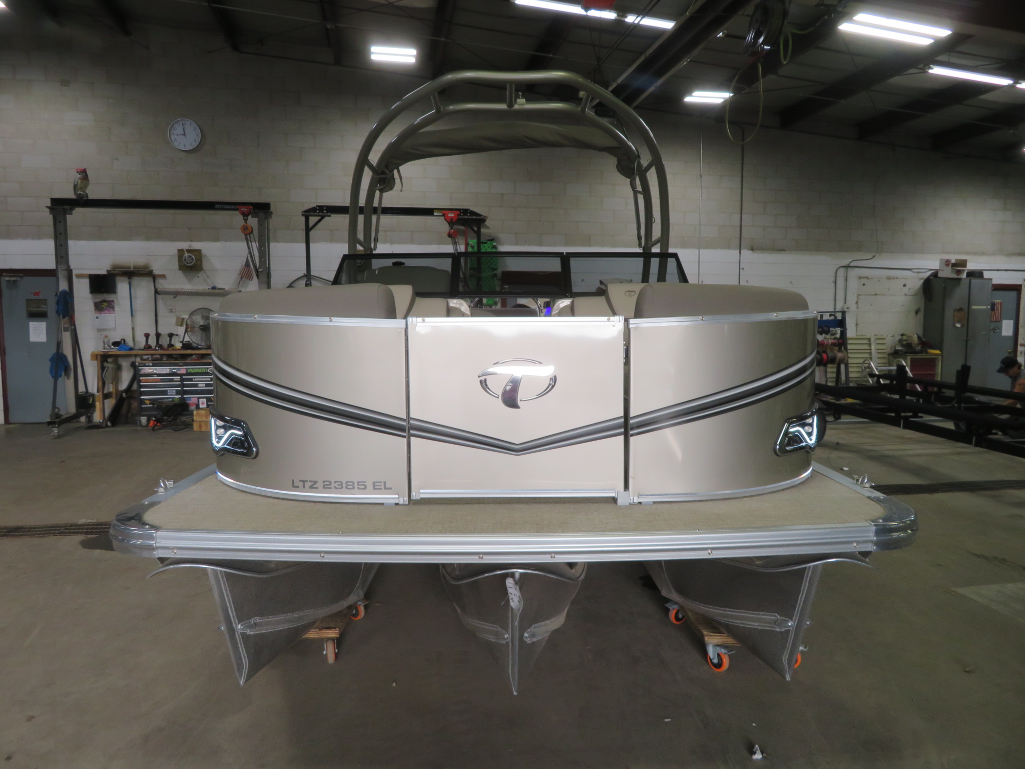 2024 Tahoe LTZ 2385 Elite Windshield Cruise Tritoon Pontoon & Honda 250HP 4-Stroke EFI. This Two Tone Unique Cruise Pontoon Has 2 Lounge Bench Seating Up Front With Storage, Side Lounge Seating With Storage, Rear Wrap Around Lounge Seating With Sink, Paper Towel Holder & Cooler, Mid Back Commander Reclining Captain's Chair, Riptide Dune Vinyl Floor, Built-In 38 Gallon Gas Tank, LED Docking Lights, Buckskin Vinyl Package, Collapsible DECO Sport Tower, In-Tube Ski Storage Locker, 4 Buoy Holders, Side Keels, Privacy Station, LED Nav Lights, Gauge Package With Hour Meter, Fusion Bluetooth Radio With 4 Speakers, USB Input w/AUX, Electric Power Assist Tilt Steering, 25" Tubes, Duel USB Charging Port, 20 Quart Cooler, Aluminum Undersheeting, Lifting Strakes, Ski Tow Bar, Rear Starboard Stainless Steel Ladder, Roman Bronze Seat Cladding, Polished Corner Caps, Large Greywood Kidney Table, Lifetime Aluminum Seat Frames, Bimini Top, 25" Tubes, Multiple Cup Holders, Dual Battery Selector, Hi-Flex Logos, Mooring Cover, New Battery, Front And Rear Swim Deck. Rated For 12 People.