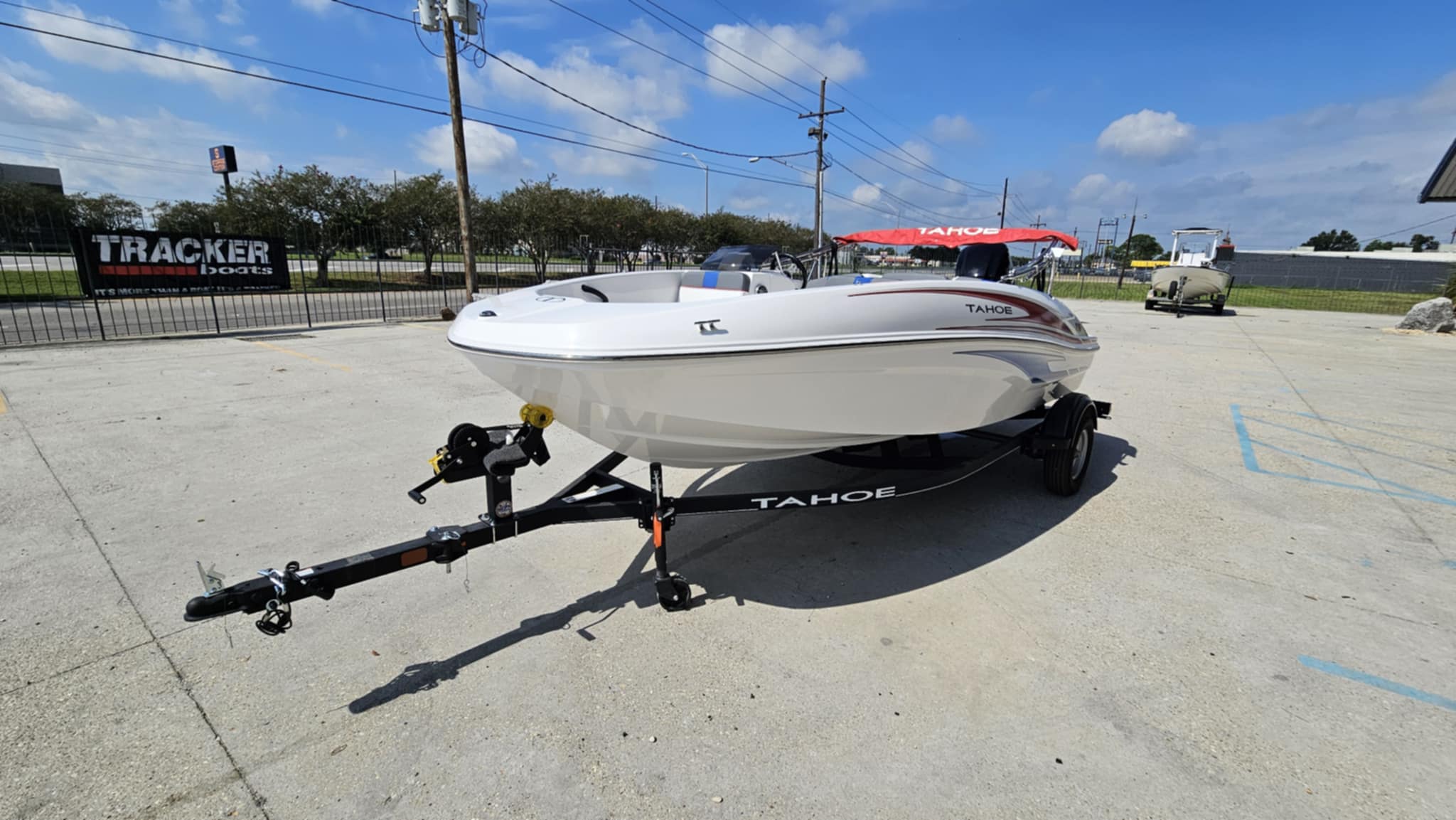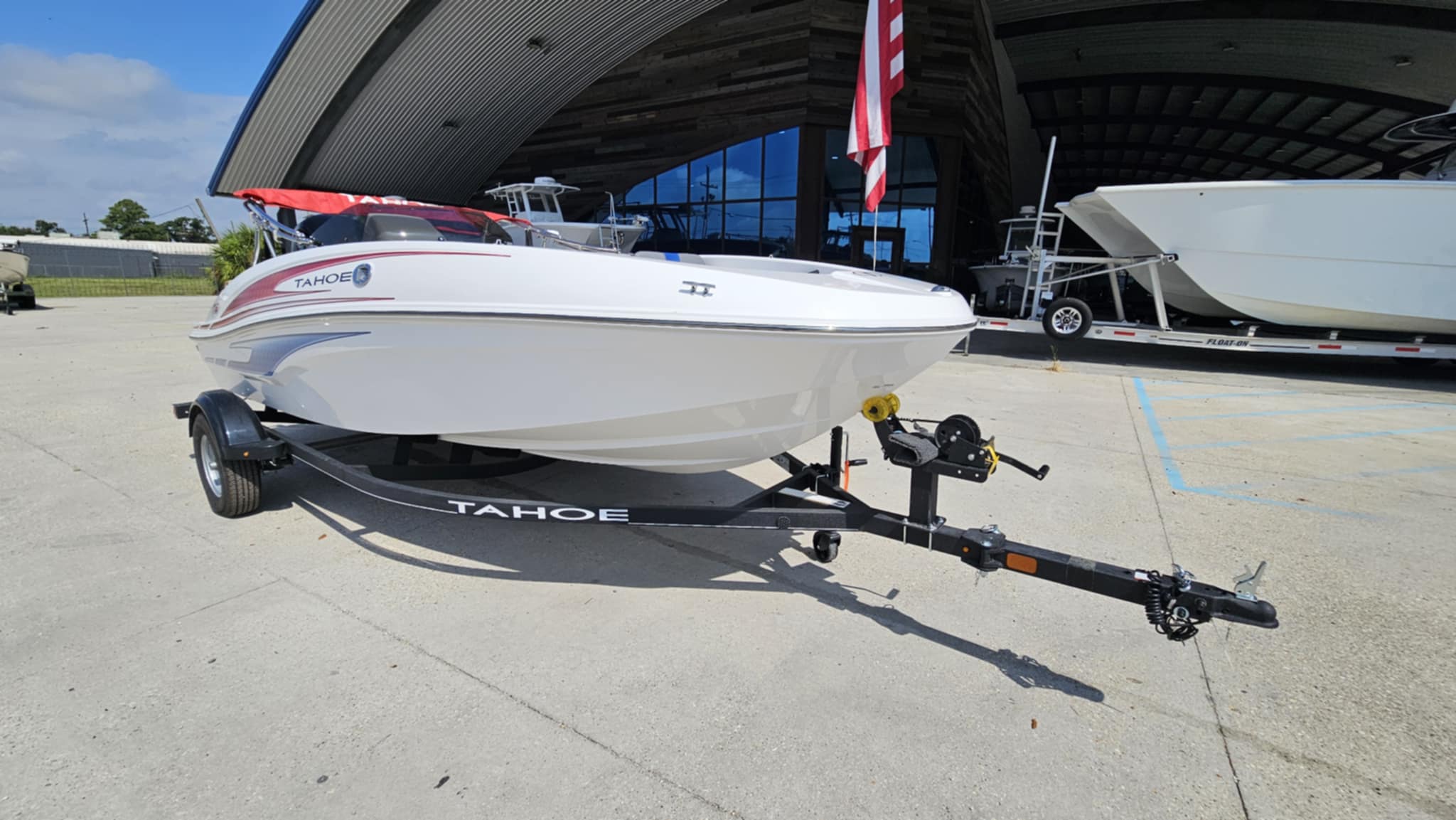 The TAHOE® T16 is fully loaded and priced to deliver huge returns of fun and excitement. A 7” touchscreen multifunction display is standard and displays your GPS-accurate speed, the water depth, as well as your motor’s vitals. Inside, creature comforts abound in the form of twin forward lounges with ample underseat storage, and out back you’ll find a sun pad and a FourStroke Mercury outboard for spirited and economical performance. Rounding out the package is a custom-built trailer for years of on-road peace of mind.