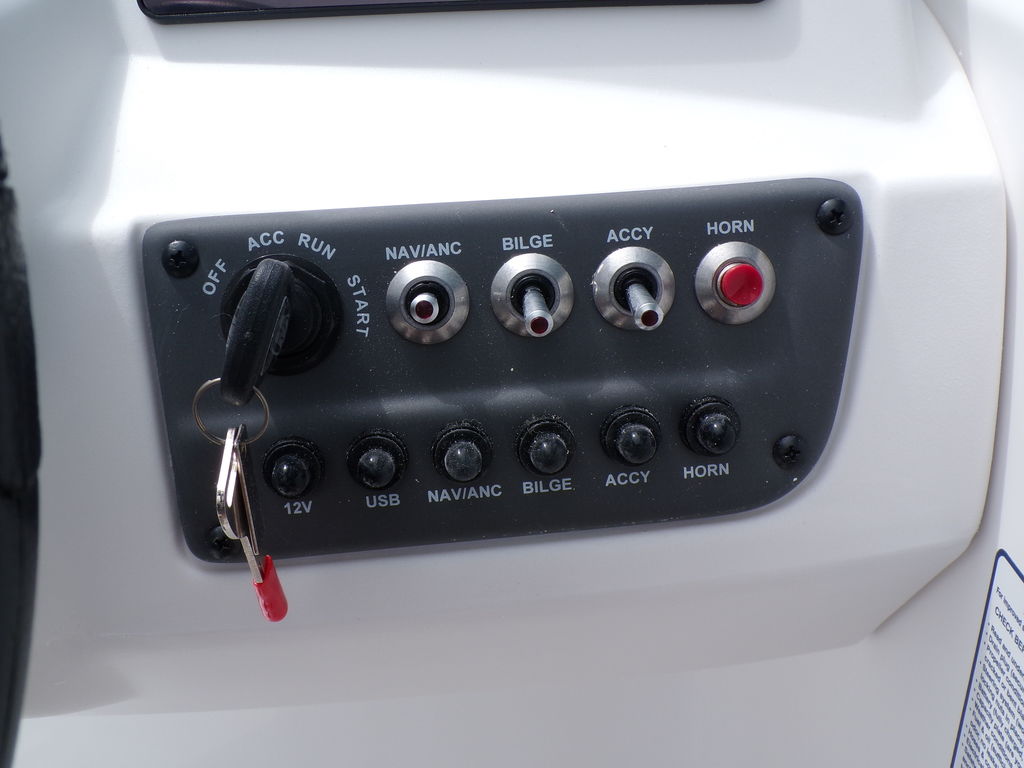 - NEW Ice white console design w/acrylic windscreen & soft-lined storage trays w/phone connectors