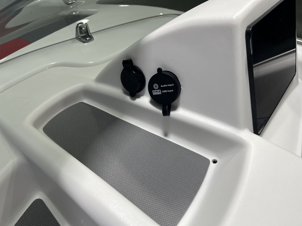 - NEW Ice white console design w/acrylic windscreen & soft-lined storage trays w/phone connectors