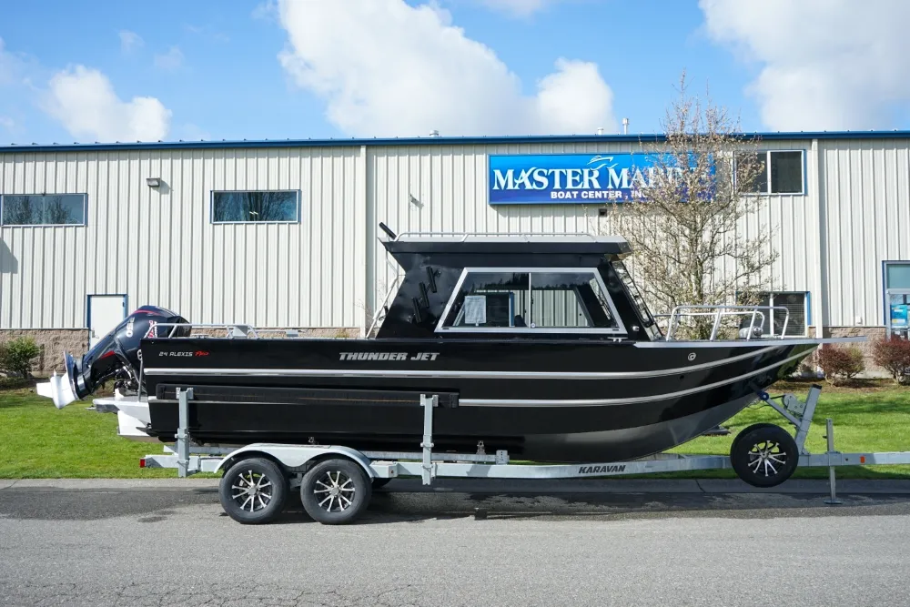 Built strong to troll big water for big fish, the Alexis Pro offers a full hardtop for the security and comfort your crew demand. Welded-in grab rails and a deep cockpit add to the safety, and generous storage holds all your tackle and gear. The heavy-gauge deep-V hull takes on the most challenging conditions with ease, opening up new fishing grounds for guides, pros, and recreational anglers alike.• Mercury 250XL Pro DTS• Full Side Paint• Painted Bow and Gunnels• Hippo Lined Cockpit• Smartcraft Gauge Upgrade• Kicker Pre-Rig at Rear Helm• Aux Steering Station• Quick Connect Kicker Fuel Supply• Power Steering with Tilt Helm• Starboard Transom Door• Sound Dampening Package• Anchor Windlass• Welded Bow Pulpit with Roller• Raised Bow Rails• Bow Access Plate• Aft In-Floor Storage• Forward In-Floor Storage• Self Bailing Deck• Side Cabin Net Holders• Alaskan Package• Side Mount Rod Holders• Insulated Transom Fish Box• Basic Anglers Package• Diamond Tread Fish Box Lid• Kicker Bracket• Porta-Potti with Privacy Curtain• Front Premium Fish Seats with Smooth Move Suspension• Rear Seatbed• Additional USB Port• Dual Batteries with 2 Bank Battery Charger/ACR Switch• LED Flood Light• Electric Trim Tabs• Cockpit Side Wall Rod Holders• Wallas Diesel Heater/Defrost• Vinyl Wrapped Transom Board• Trailer with Disc BrakesMaster Marine Boat Center | To learn more about this listing, give us a CALL or TEXT at (360) 336-2176, email us at sales@mastermarine.com, or visit our website at mastermarine.com.