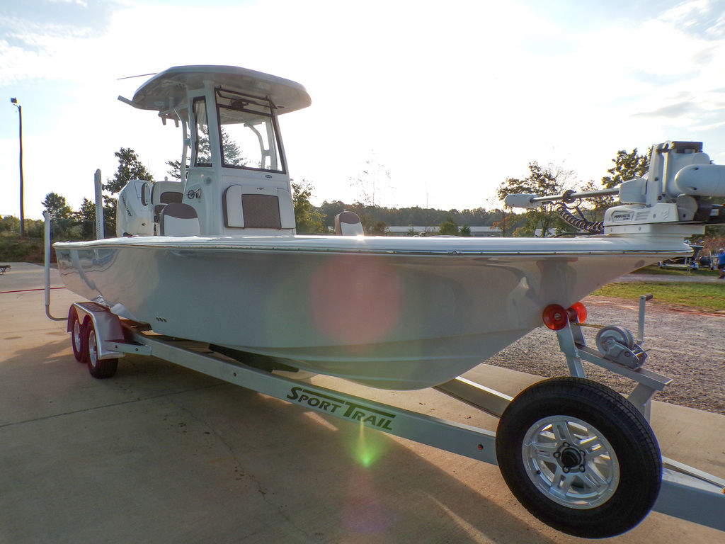 This Carolina Bay model provides customers with an efficient stepped bottom hull, large bow casting deck, dual livewells, and recessed bow seating. The 2500 Carolina Bay is the complete package for family and fishing. The ride and performance of this hull is unmatched by any 25ft. bay boat in the industry.