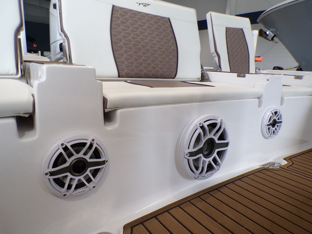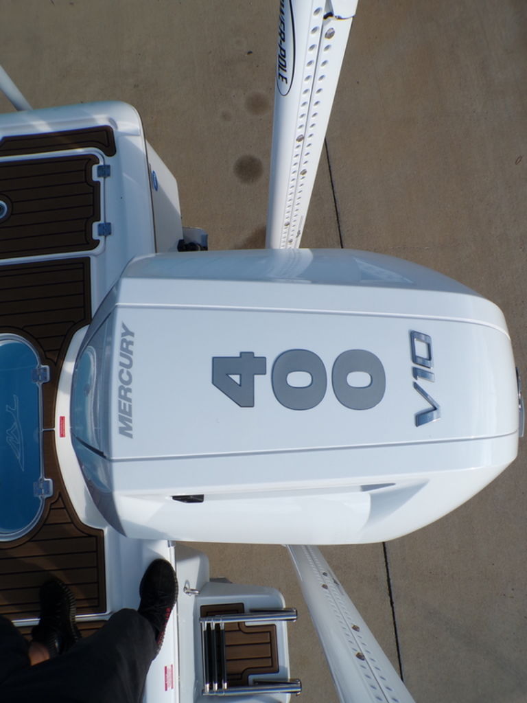 Powered by the Maximum Performance Mercury 400L Verado "Cold Fusion White" V10 FourStroke Engine - Drive-By-Wire Controls