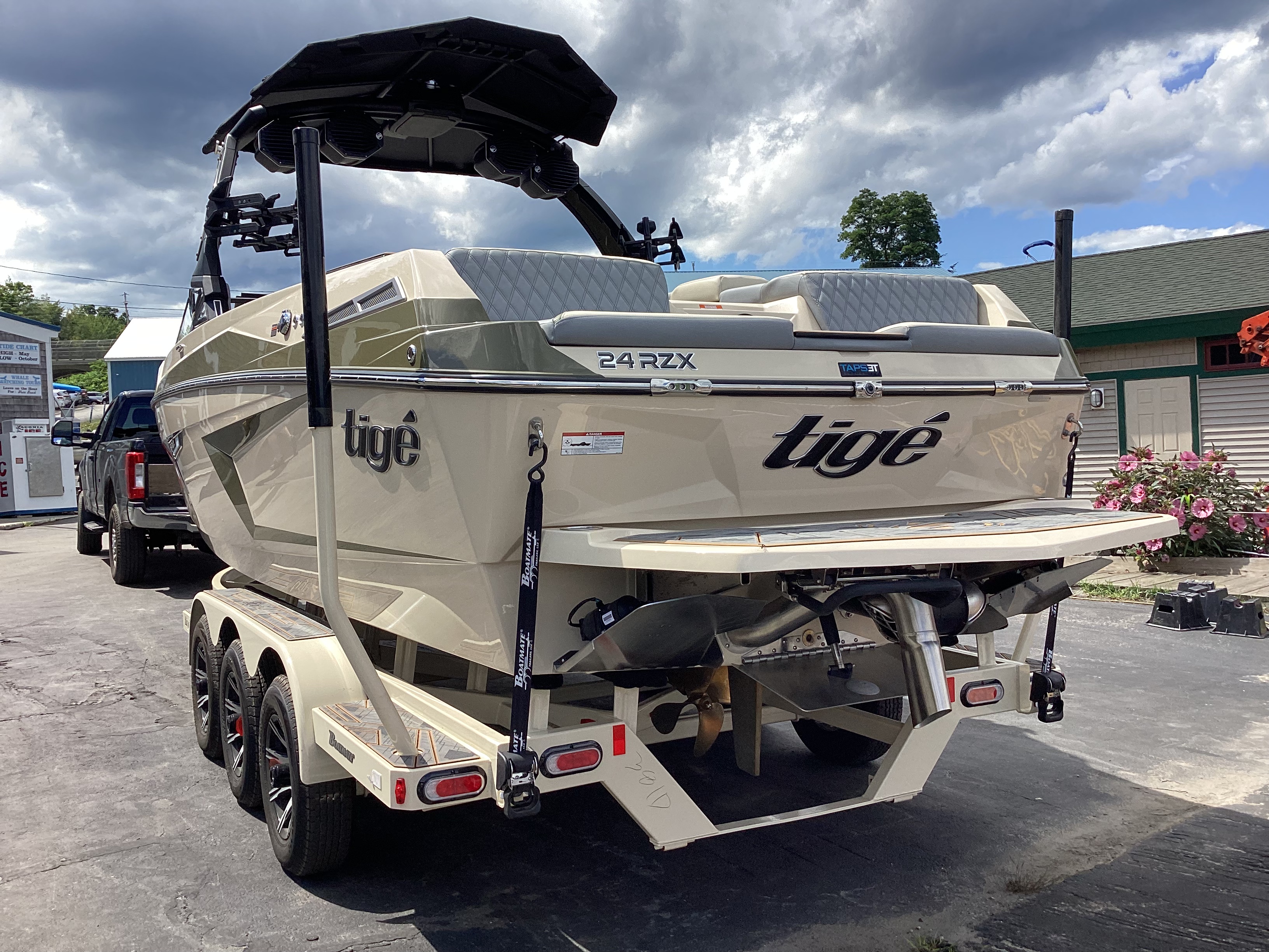 Tige is a premium brand or luxury wake and surf boats, known for innovation, style and wave performance. The company’s TAPS 3T System uses three plates to make it easy to switch sides and adjust wave sizes, combined with a unique hill to create smooth waves without excessive ballast. In addition, the one-touch driver interface makes adjustments simple. The combination provides one of the best surf systems in the industry, comparing favorably to Mastercraft and Malibu, while providing all the premium features without the luxury surcharge. Check out Tige’s luxurious fit and finish, with numerous customizable features. Models range from the compact Z1 to the larger Z5, and the best-in-class Ultre, and are accompanied by the ATX sister brand at more lower price points. In 2025 Tige won the NMMA CSI award for the 20th time, a record unmatched in the wakesurf category, and Tige was recognized with Innovation of the Year in 2024 in its Ultre model from the WakeWorld Riders Choice Awards. Length Overall: 24 ft. 5 in. (7.44 m)
