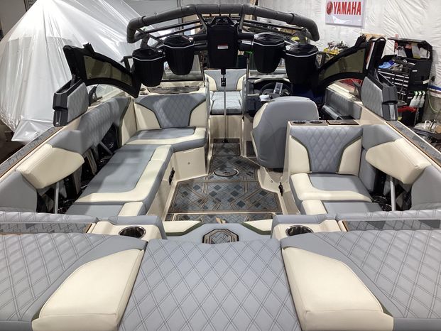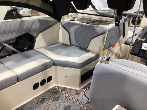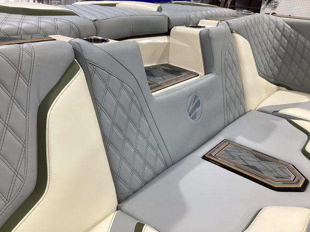 Expand your expectations with the 2025 24RZX luxury surf boat. Exuding confidence, its razor-edge design is complemented by distinct lines and lush double-diamond stitching. With a culmination of Tige's latest advancements, the 24RZX delivers superior wake performance, premium surf waves, unmatched luxury, expanded storage, and enhanced freeboard. For those who demand power, cutting-edge technology, and a distinctive presence on the water - the 24RZX stands as one of the top luxury surf boats on the water.