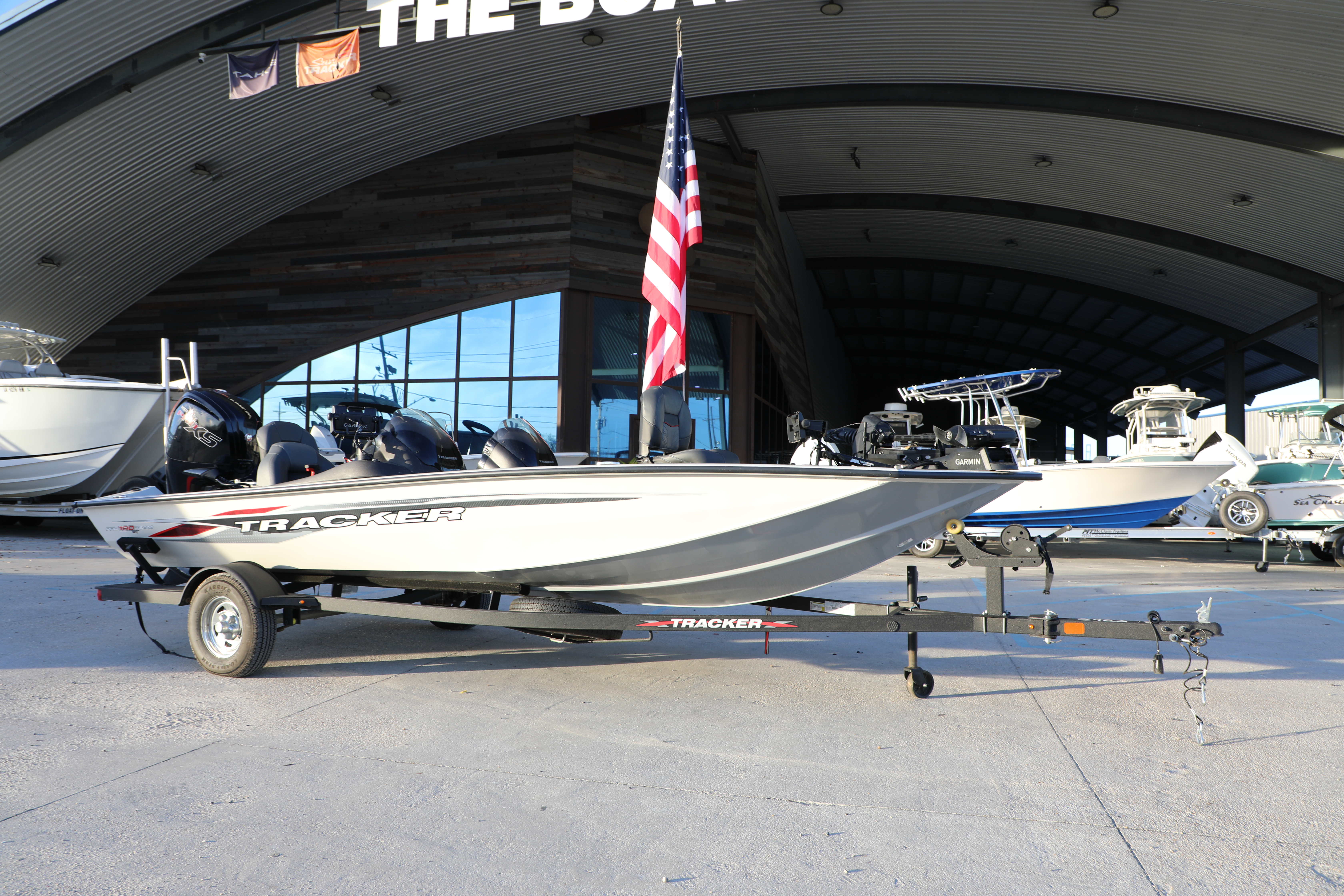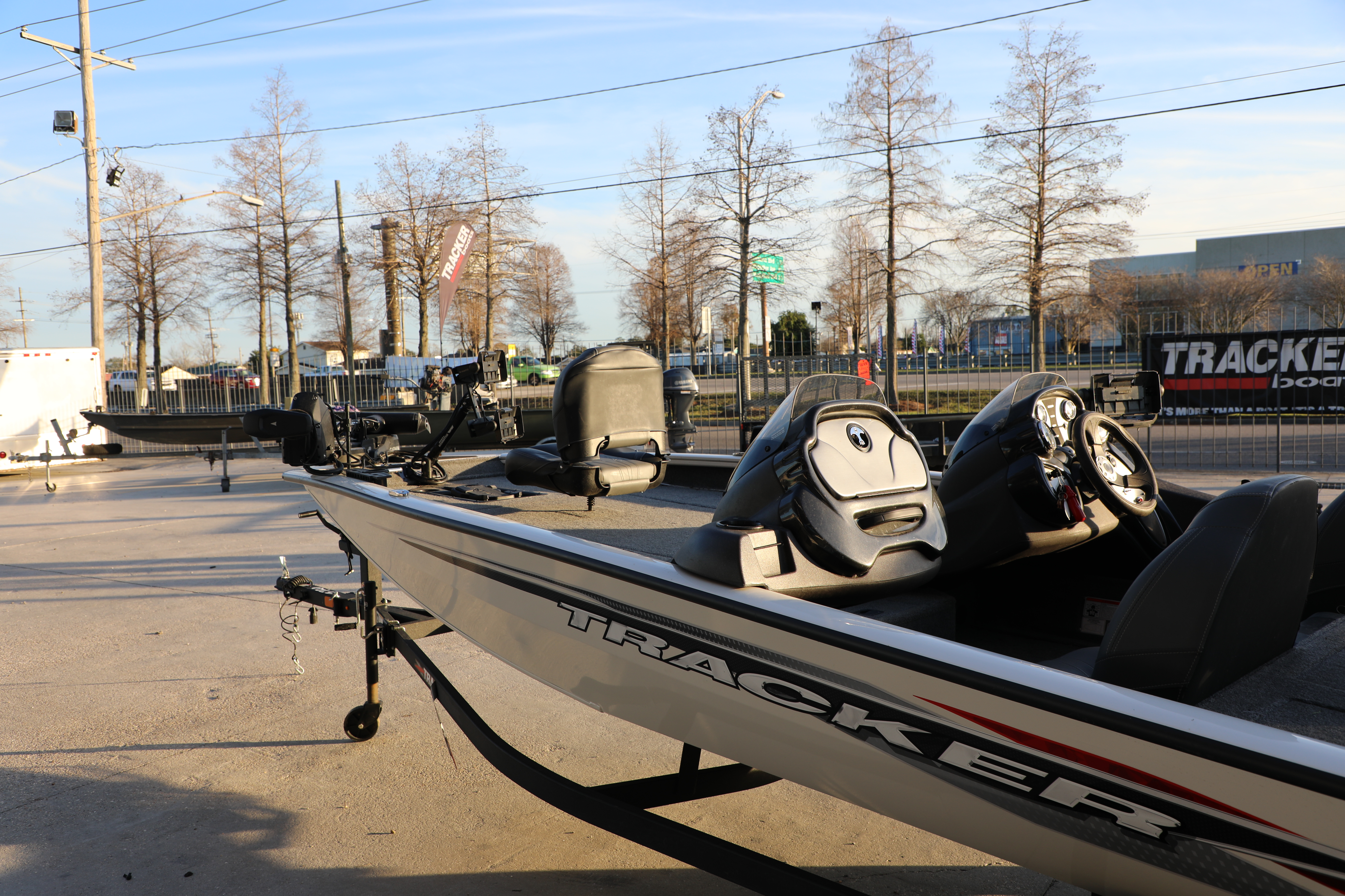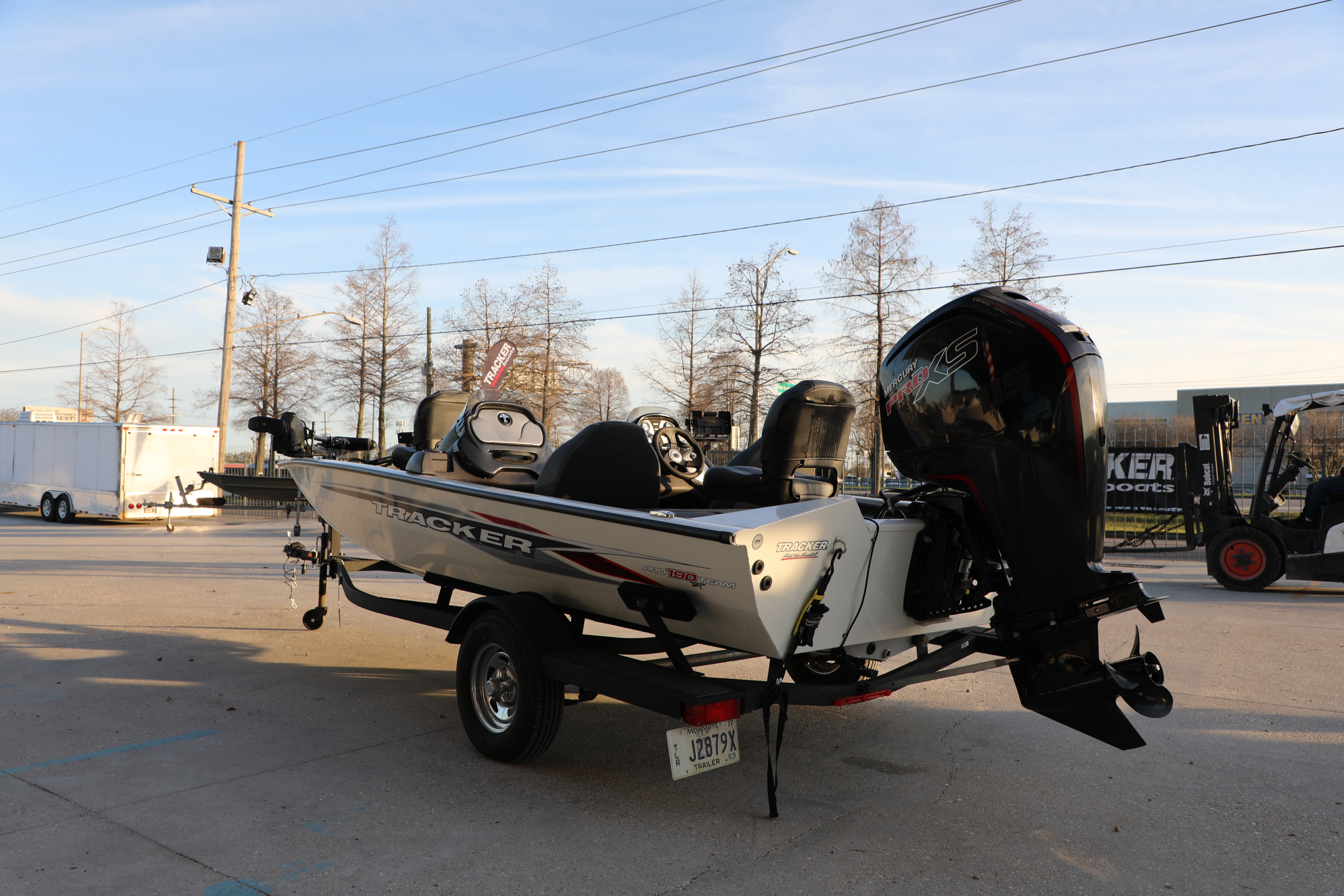The Tracker Pro Team 190 is an 18' 7" aluminum bass boat with a 7' 5" beam, designed for up to 4 people, featuring a 125 HP max rating, a 21.5-gallon fuel tank, and built with a 0.100 marine alloy hull, offering tournament-ready features like livewells and ample storage with a focus on stability and fishability. Key specs include a ~1050 lb dry weight, 18" interior depth, 10-degree transom deadrise for stability, and a package weight around 2330 lbs.
