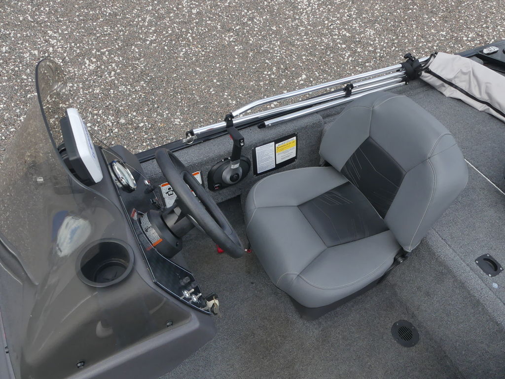- 1-piece rotomolded console w/tinted windscreen, integrated livewell, drink holder & 12V outlet