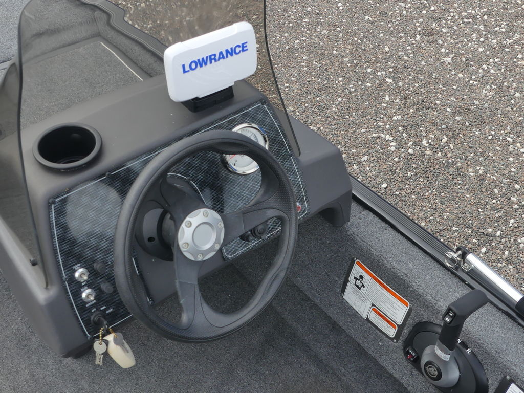 - 1-piece rotomolded console w/tinted windscreen, integrated livewell, drink holder & 12V outlet