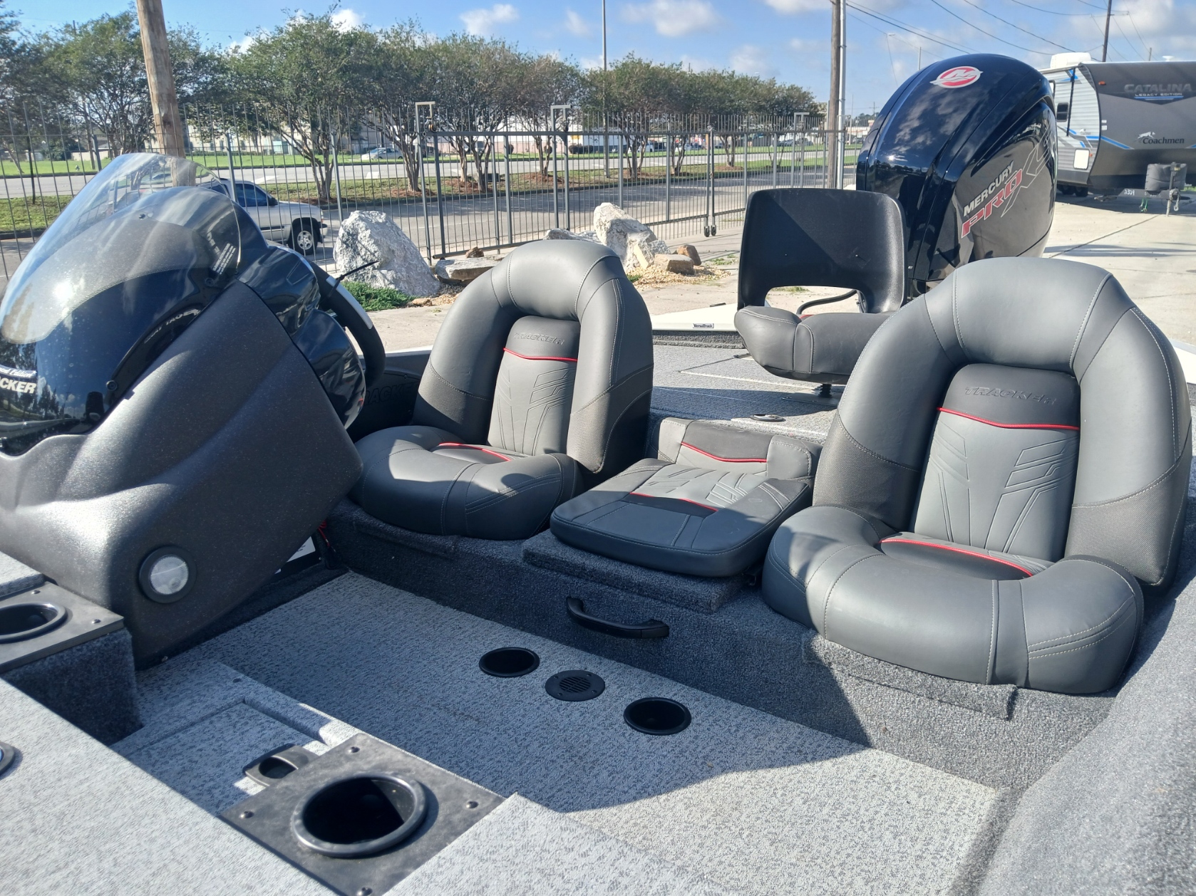 Powered by a reliable Mercury 115 Pro XS FourStroke, this rig jumps on plane fast and cruises smooth—perfect for chasing bass in any condition. The revolutionary Revolution™ hull ensures a soft, dry ride and solid handling from launch to landing.