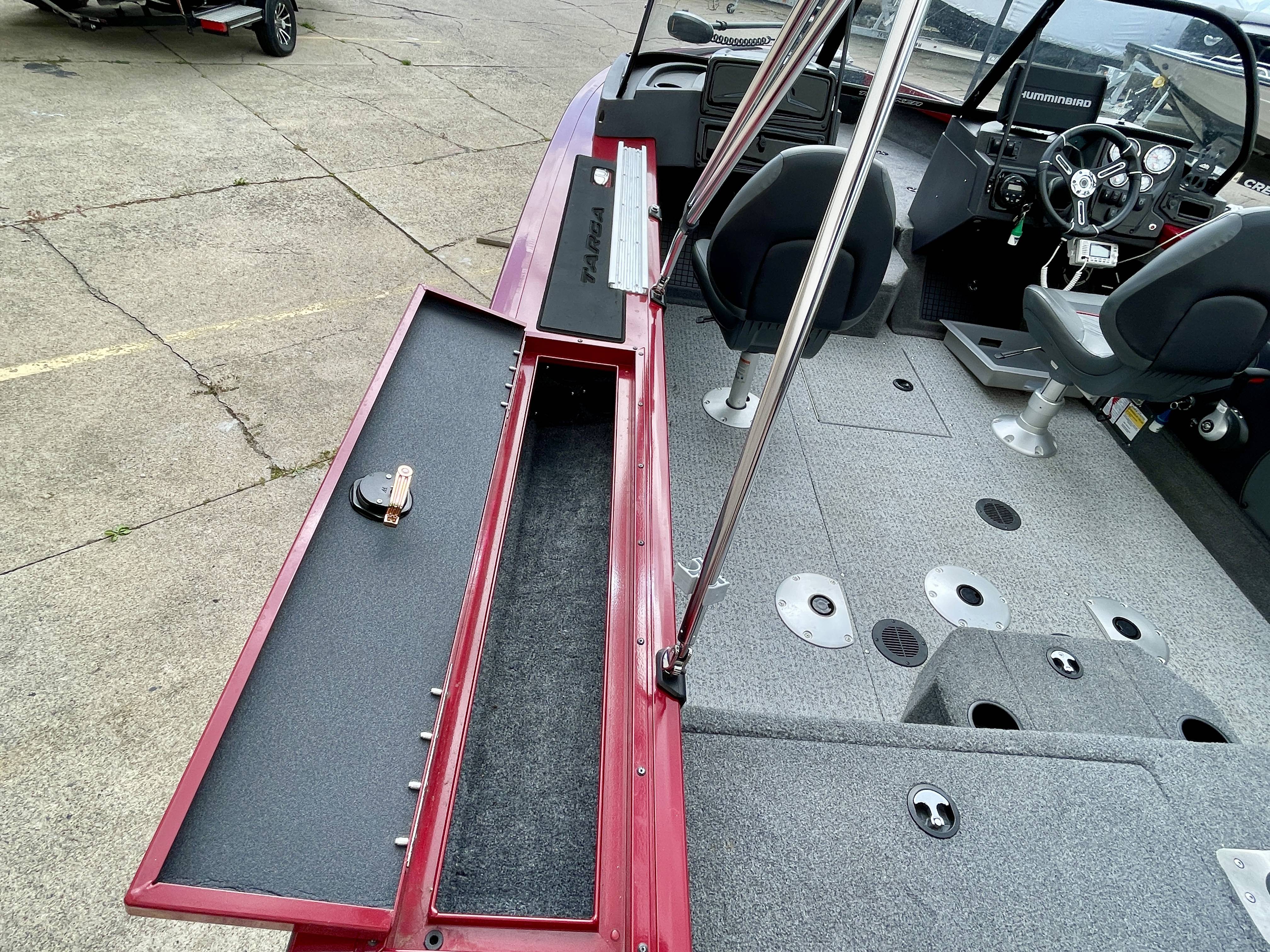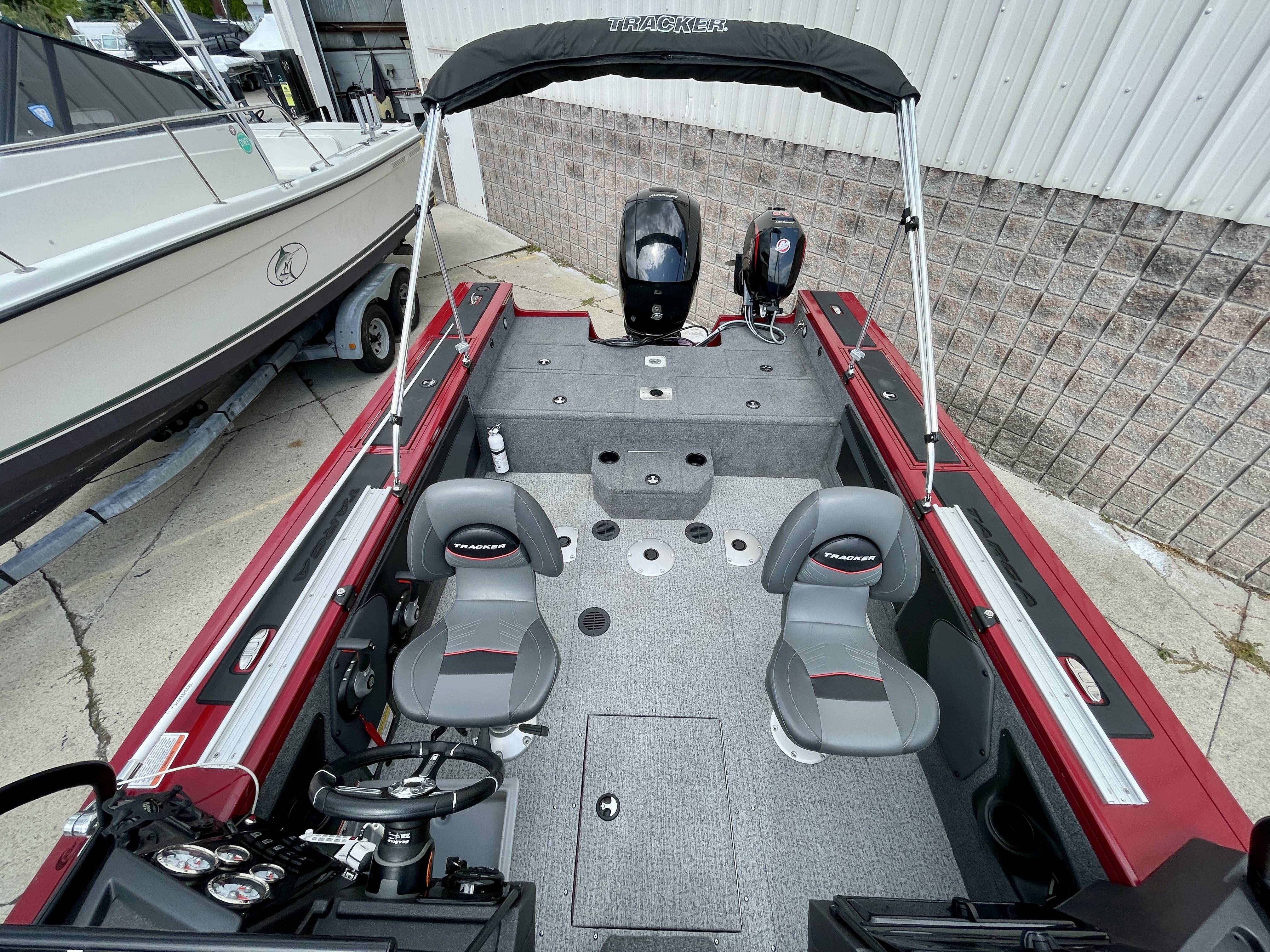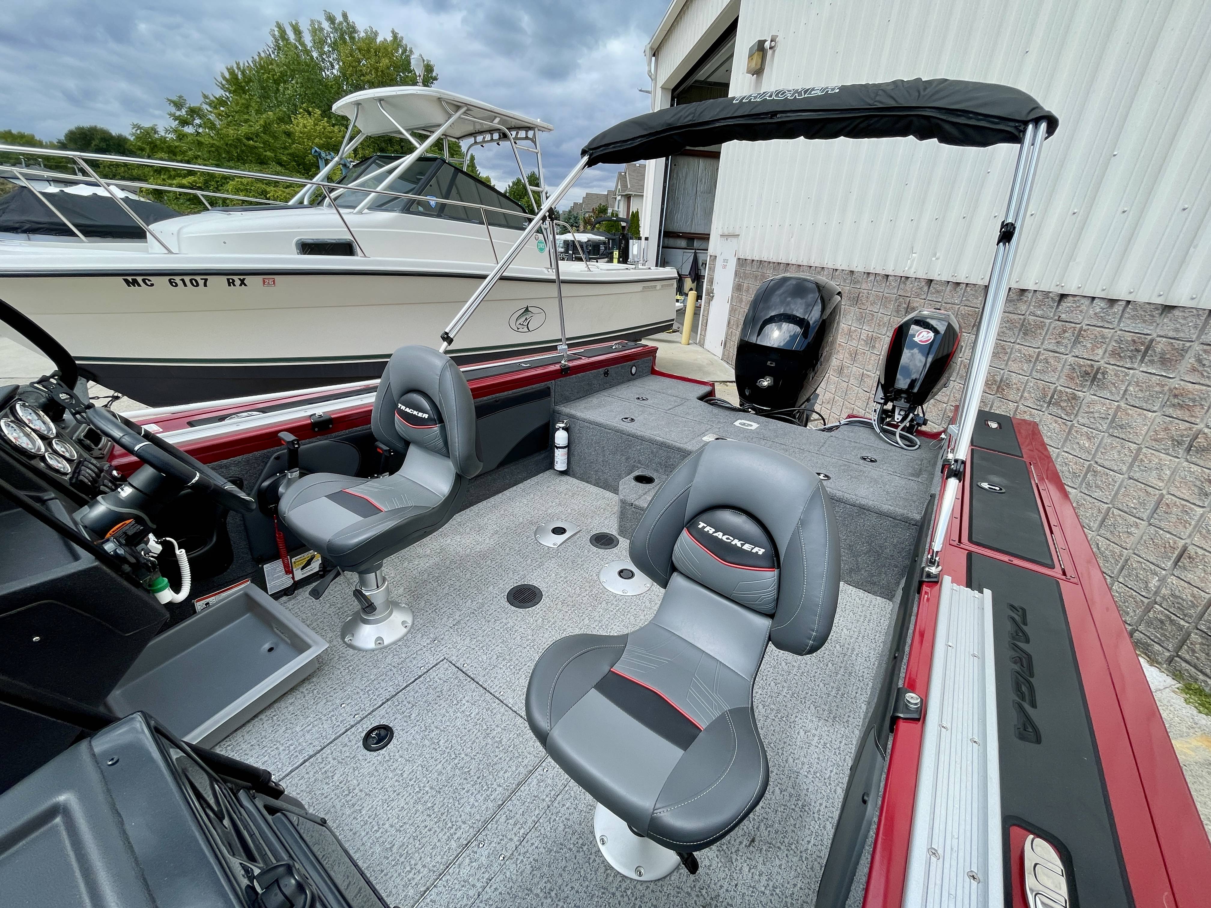 2024 Tracker Targa V-19WT with Mercury 150XL 4-stroke and 9.9 Mercury Kicker motor and trailerBoat is in LIKE-NEW condition with only 12 hours!! Boat is loaded from the factory including Hummingbord Helix 10, bimini top, full boat cover, tandem axle trailer with spare tire and easy step-on ladder for easy access on and off the boat, 2 fishing seats, 2 tracks on gunnel, full vinyl flooring in cockpit and bow, Minn Kota trolling motor and much more!Call 800-875-2620 for additional information or to schedule an appointment to view the boat today!