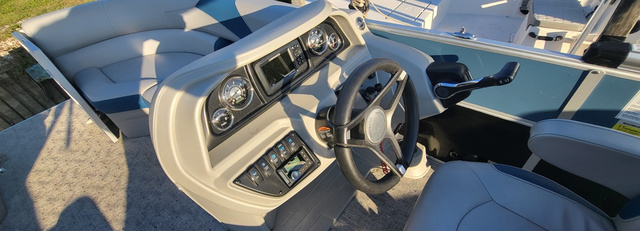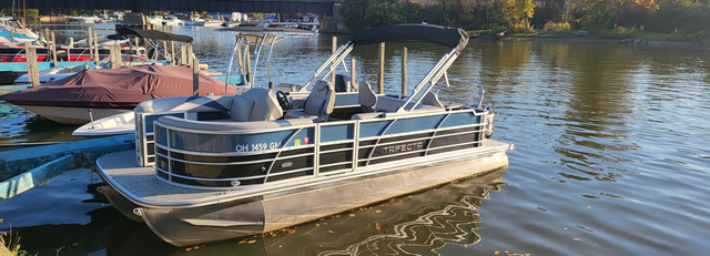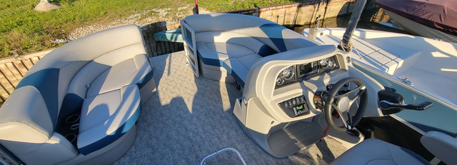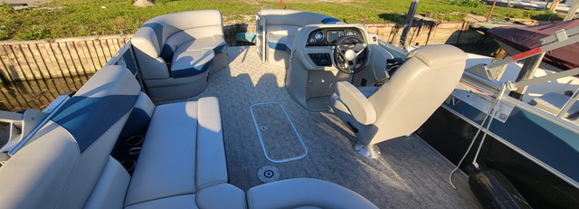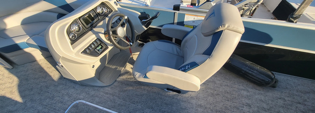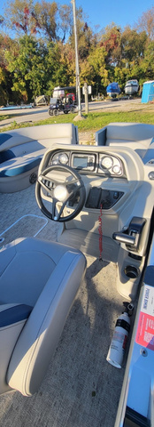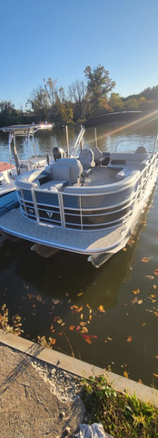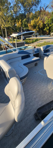 Trifecta Tritoon in perfect size for both fish and cruise and tubing or skiing and do everything boat. Trifecta are constructed with composite floors and no wood construction. Used in rental fleet this year only. Get this very popular boat without the expense of new. GPS fish finder, live well, rod holders and tacklebox, in floor storage on the new features including power bimini. Powered with a 115 Suzuki Four Stroke.