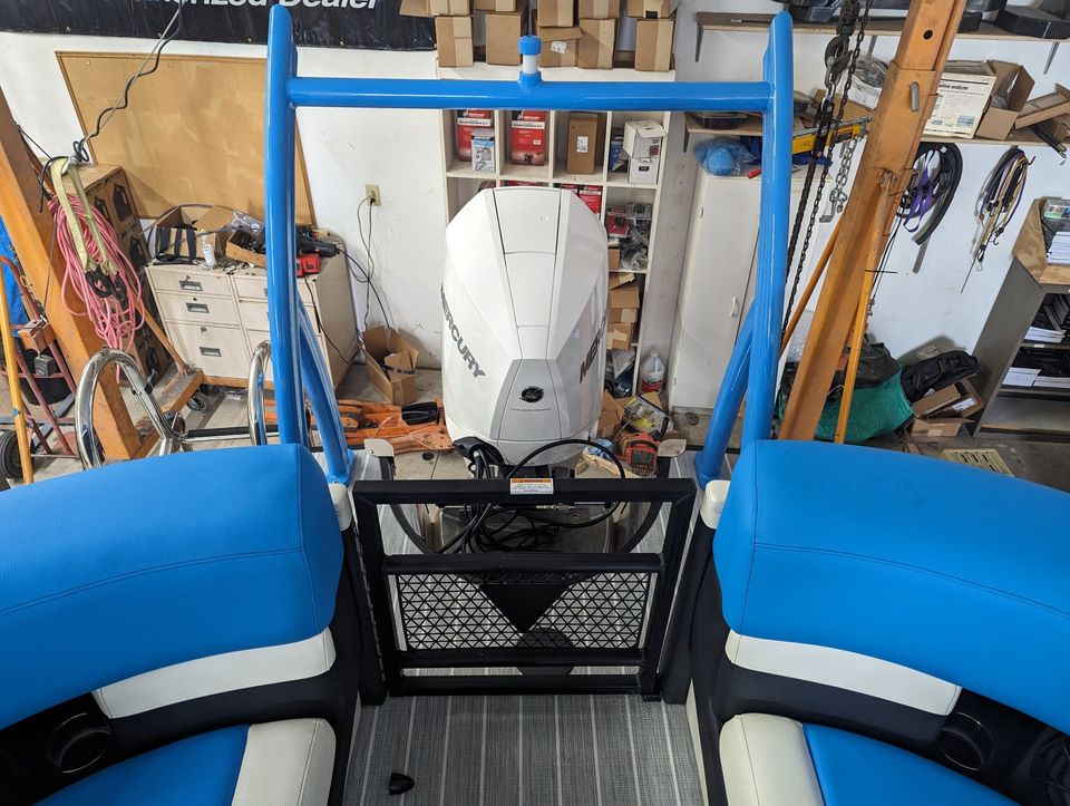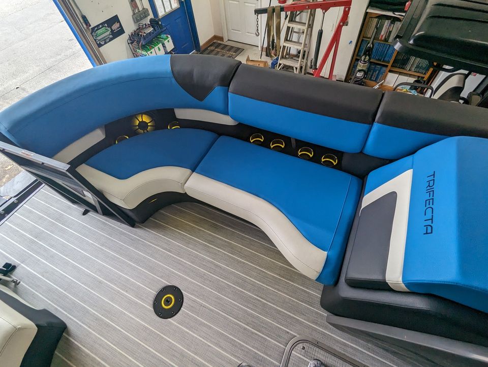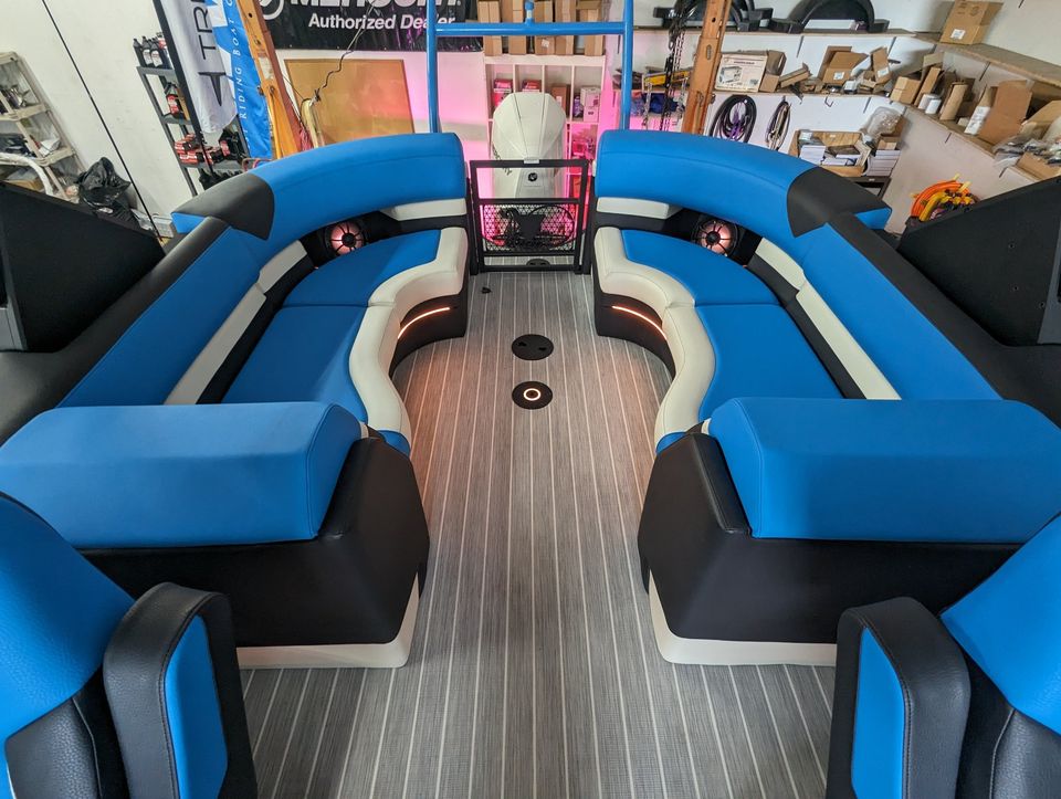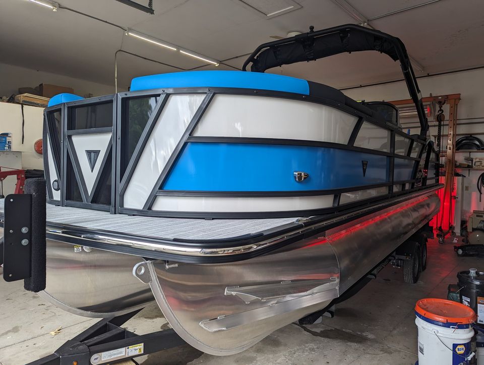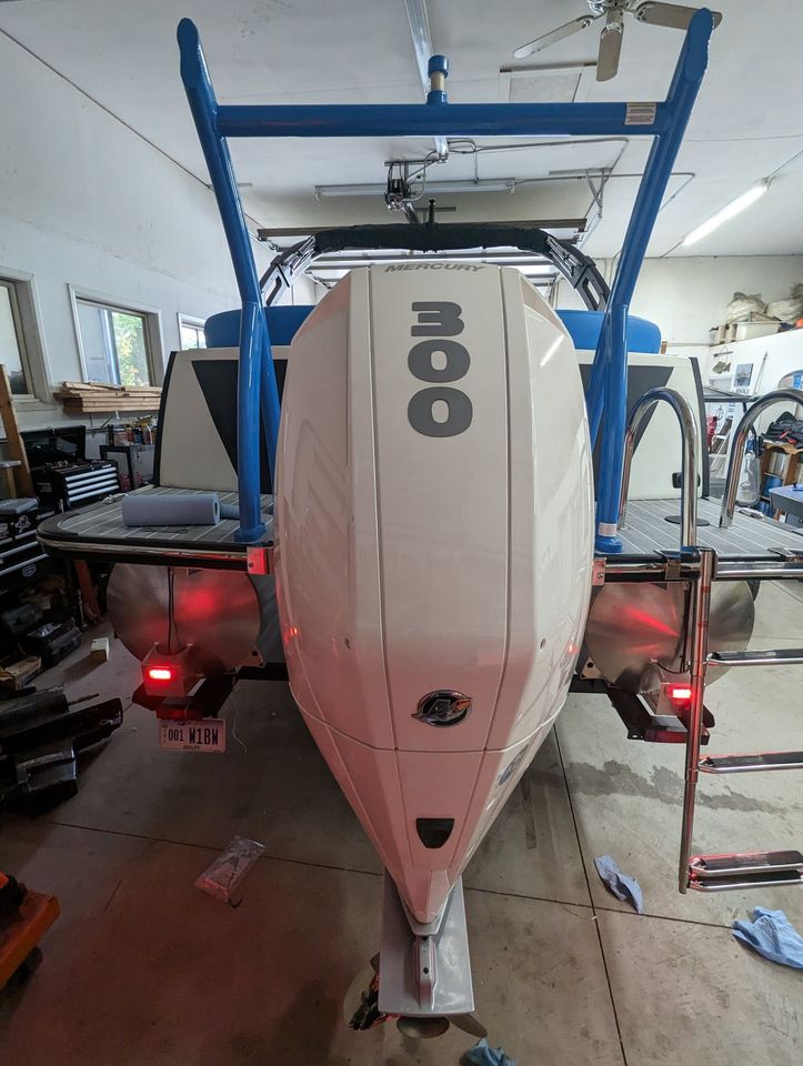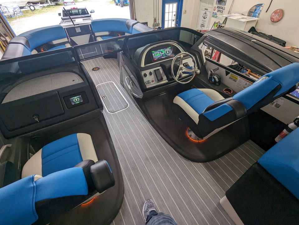 WE COULDN'T WAIT TO SHOW THIS ONE! JUST ARRIVED AND GOT UNWRAPPED. THIS BOAT IS A HEAD TURNER!!! A stunning electric blue, white & black color scheme on this Trifecta S Series with the new Arch and Dual Console for 2024. This boat is sure to turn some heads and capable of 50+. With its industry leading 3.0+ hull giving it the most efficient ride on the market - this boat is perfect for any outings, whether that is on inland lakes or larger bodies of water like our own Lake Erie. A fully customizable RGB LED system throughout the boat gives you unprecedented control of your boat's look at the click of a button. Folding color matched arch makes the boat very easy for storage. Twin touch screen displays allow easy access to all boat features, settings, and GPS navigation. Easy access storage throughout all the boat's seating and in the center toon. Two table mounts with led lighting. 22 RGB LED cupholders. Docking lights. Sink on passenger helm. Three phone USB & USB C charging ports. Scanstrut phone charger on dash. Transom remote for speaker system. And much more... Feel free to call with any additional questions or to schedule a test drive.