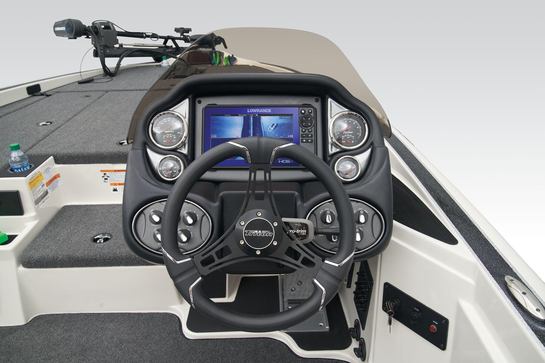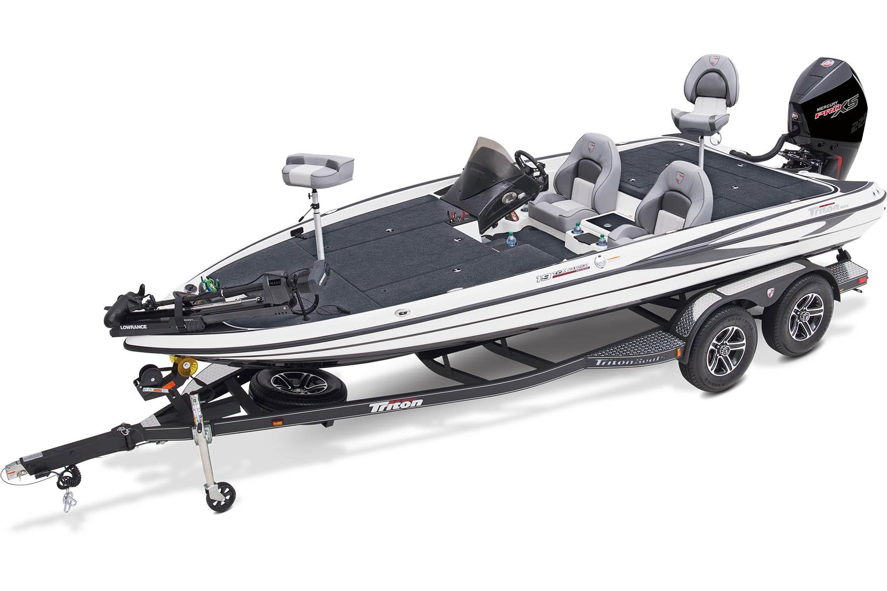 This model is available with a choice of color schemes and tailored packages, including a range of motor sizes. For more information, please reach out to Holiday Marine. Rest assured, it can be prepared for delivery within 3 weeks. Nation Wide Delivery The 19 TrX Patriot is loaded with features and high-performance stealth in a value package that is ideal for the hardcore weekend tournament angler. You get big-rig amenities inspired by championship results in a tournament-ready 19' class package. Armed with 225 horses, the 19 TrX Patriot is factory rigged with a Mercury® outboard, Lowrance® electronics, and Lowrance® trolling motor. There is no wasted space in a Triton—an 8' rod rack with 12-rod capacity, center storage box tackle organizing system and oversized storage compartments throughout mean you never leave anything behind. With a custom designed, road-trip ready trailer, the 19 TrX Patriot is ready to roll.