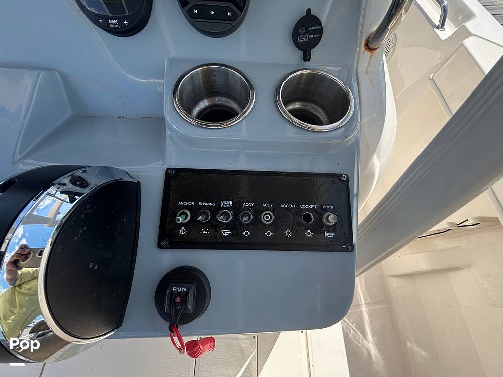 Anglers will love the dual livewells, insulated fish box, and abundant rod storage, including rocket launchers. The protective T-top offers welcome shade, while the roomy center console provides extra utility space.