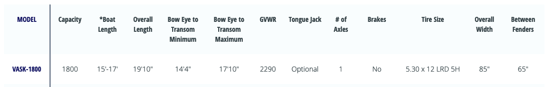 Fits 15-17' Flat hulls and semi-vee. Carrying Capacity: 1800 lb.