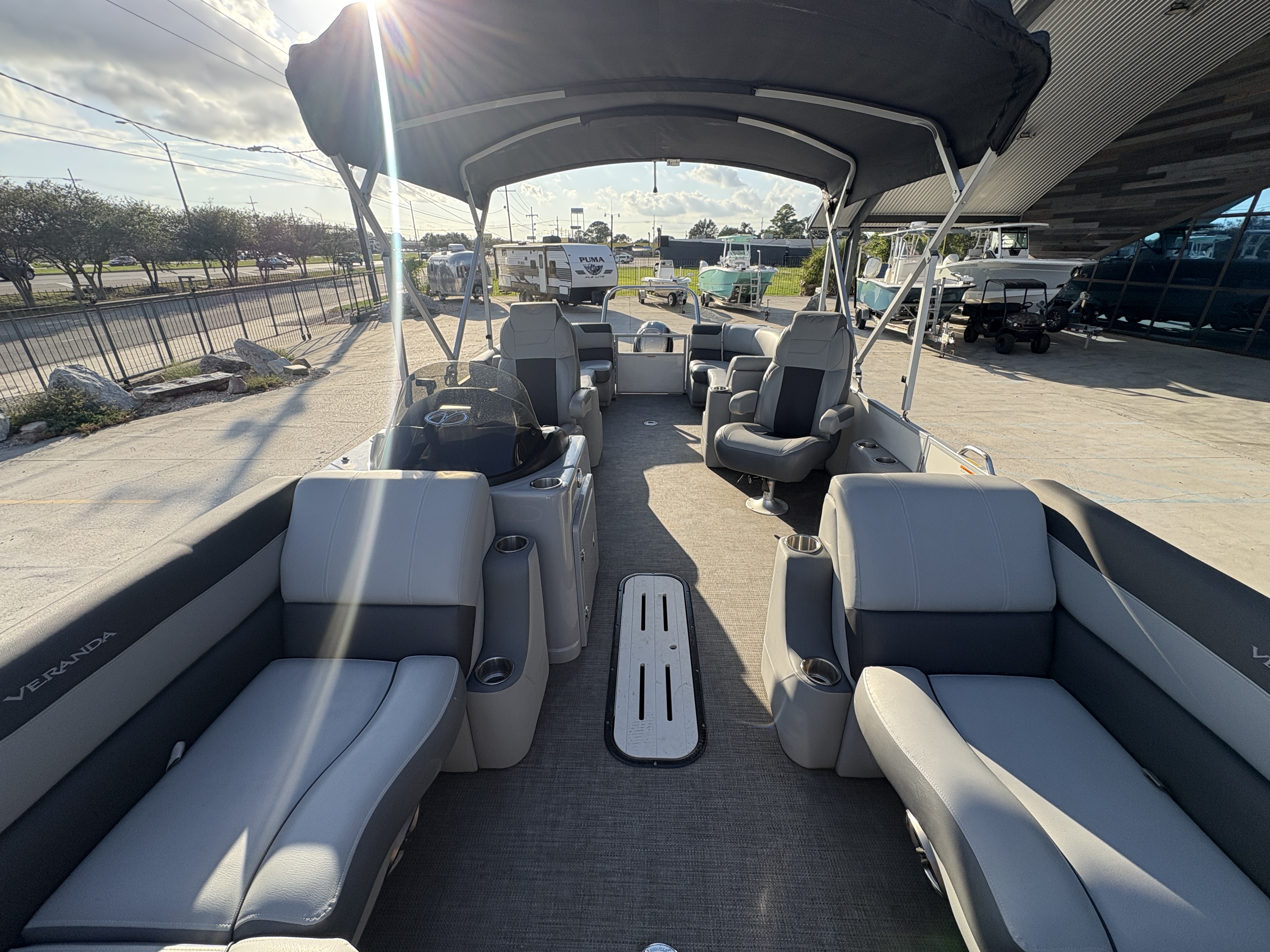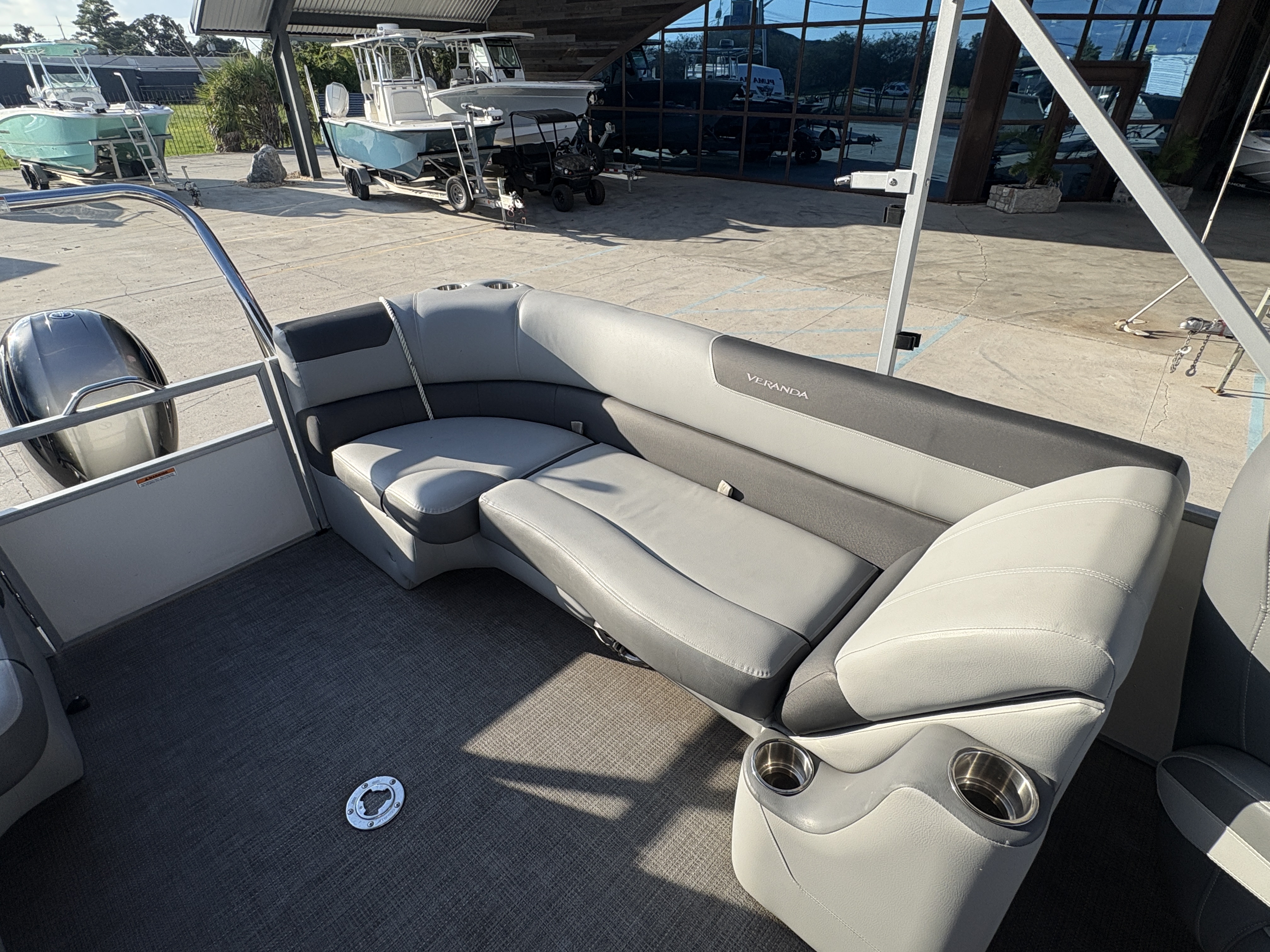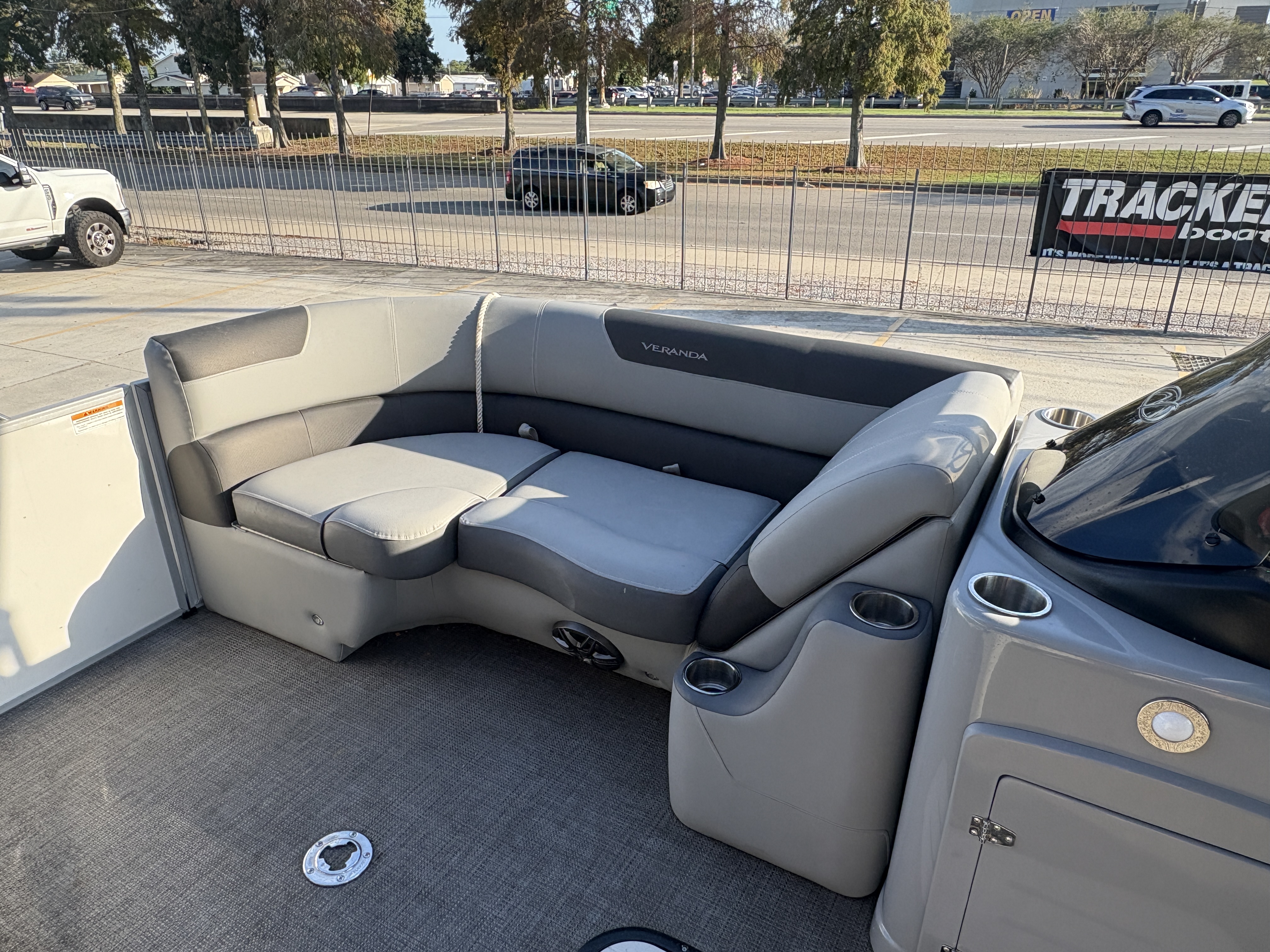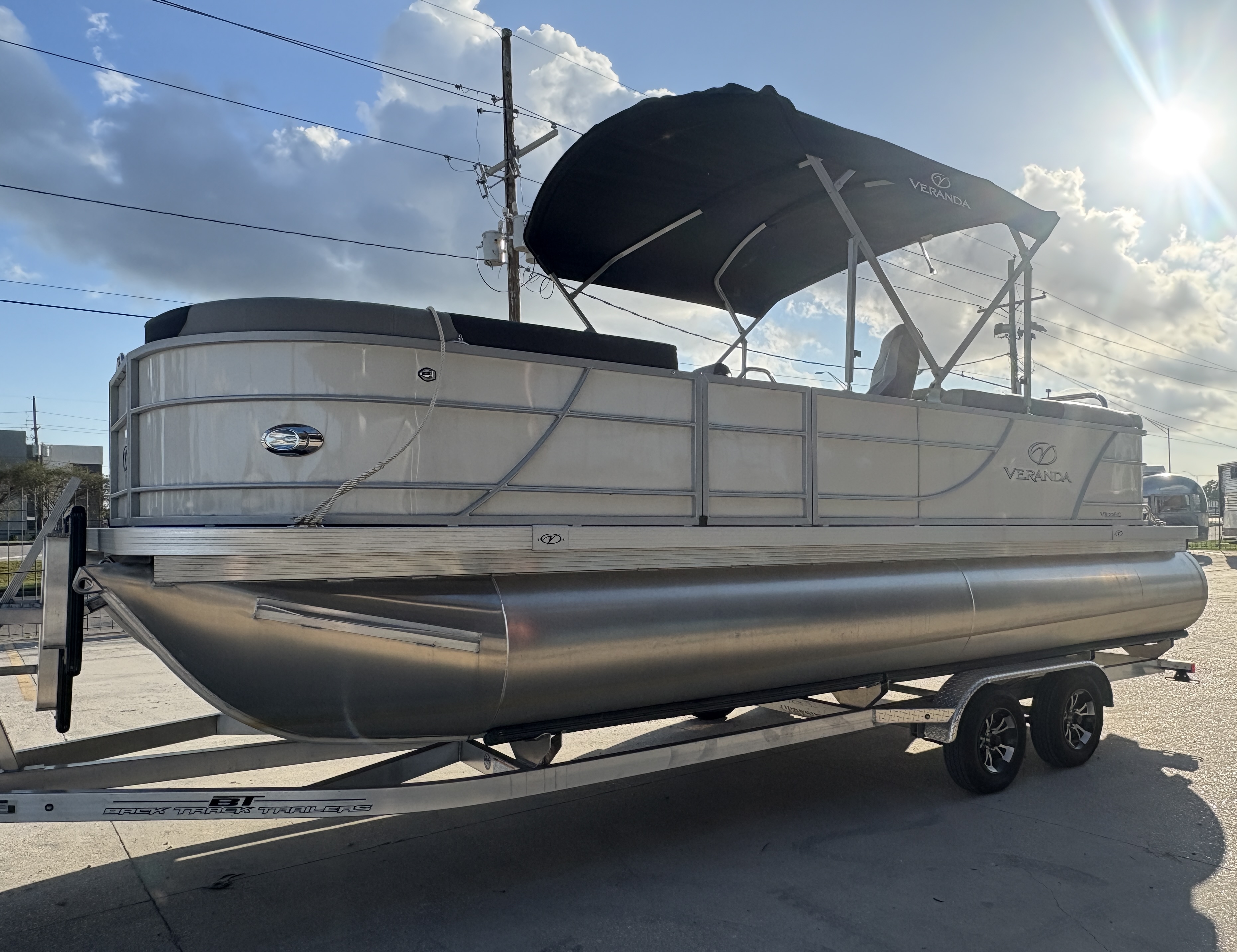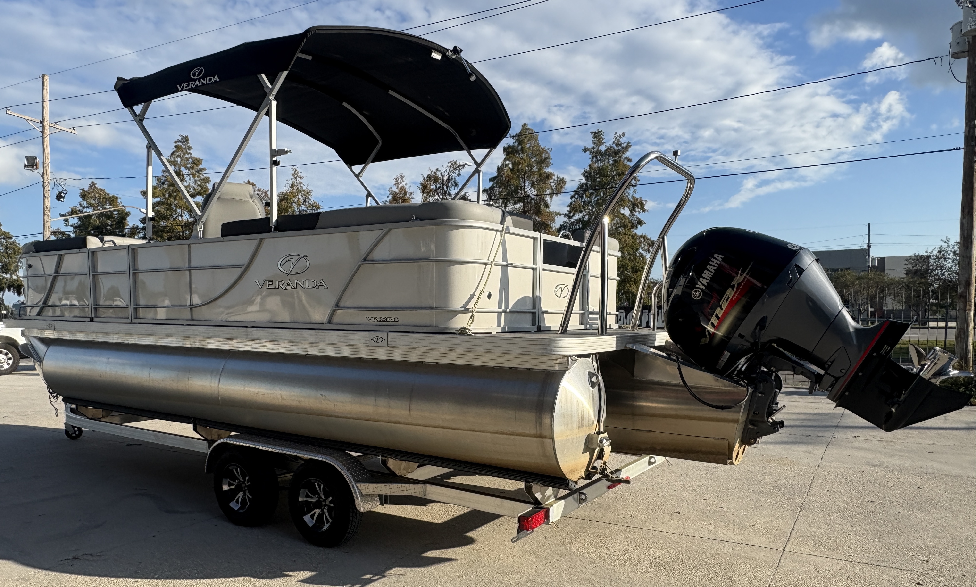 Experience the water in comfort and style with this 2024 Veranda VR22RC. Built on Veranda’s legendary all-aluminum, wood-free deck, this tritoon offers unmatched durability, a quiet ride, and peace of mind for years to come. The RC (Rear Chaise) layout gives you the best of both worlds—spacious bow seating and dual rear loungers that are perfect for sunbathing, relaxing, or entertaining friends. Premium upholstery, abundant storage, and stainless accents make every outing feel like a luxury experience. Powered by a dependable Yamaha outboard, the VR22RC delivers smooth performance whether you’re cruising, tubing, or enjoying a sunset ride with the family.