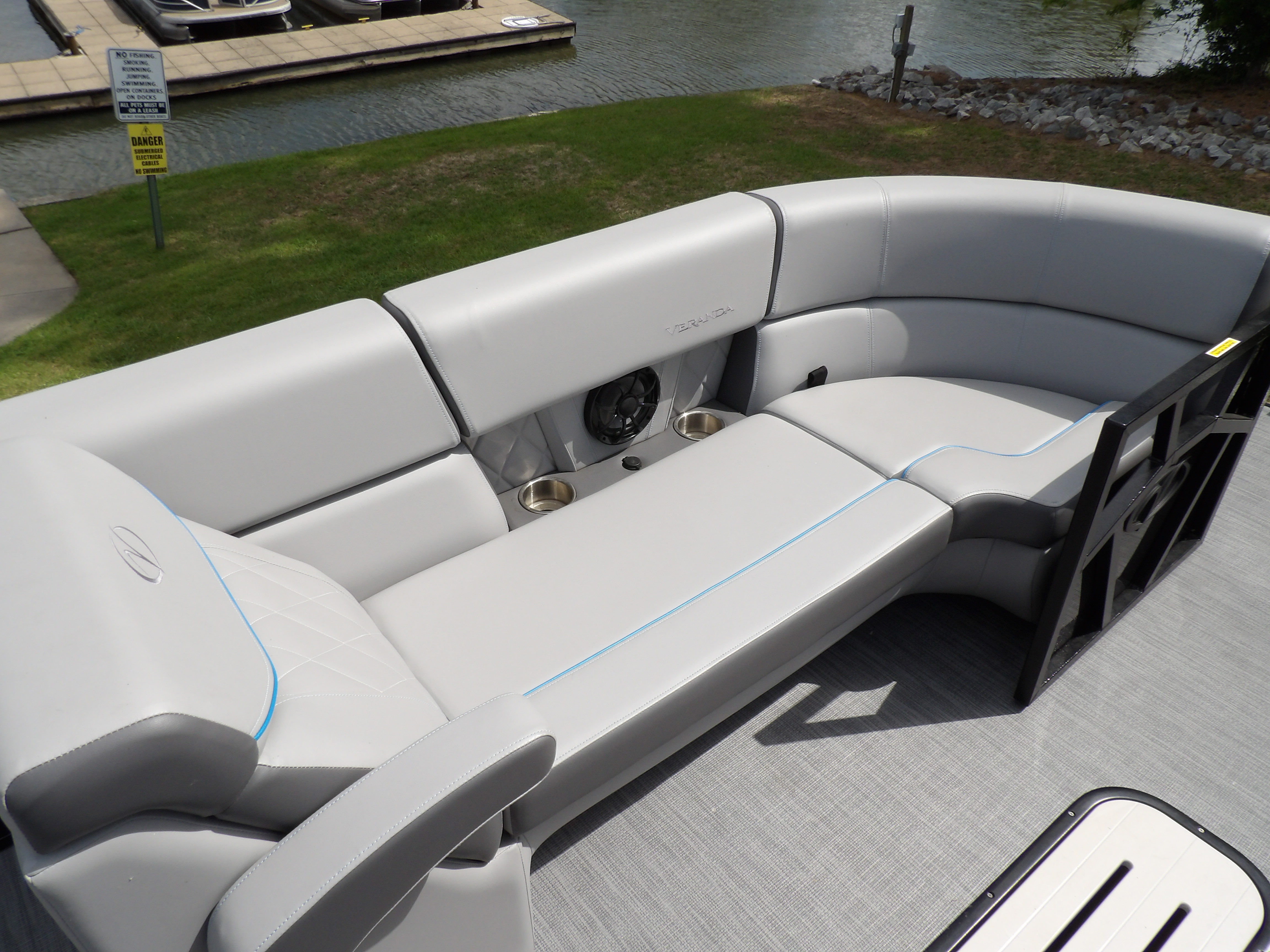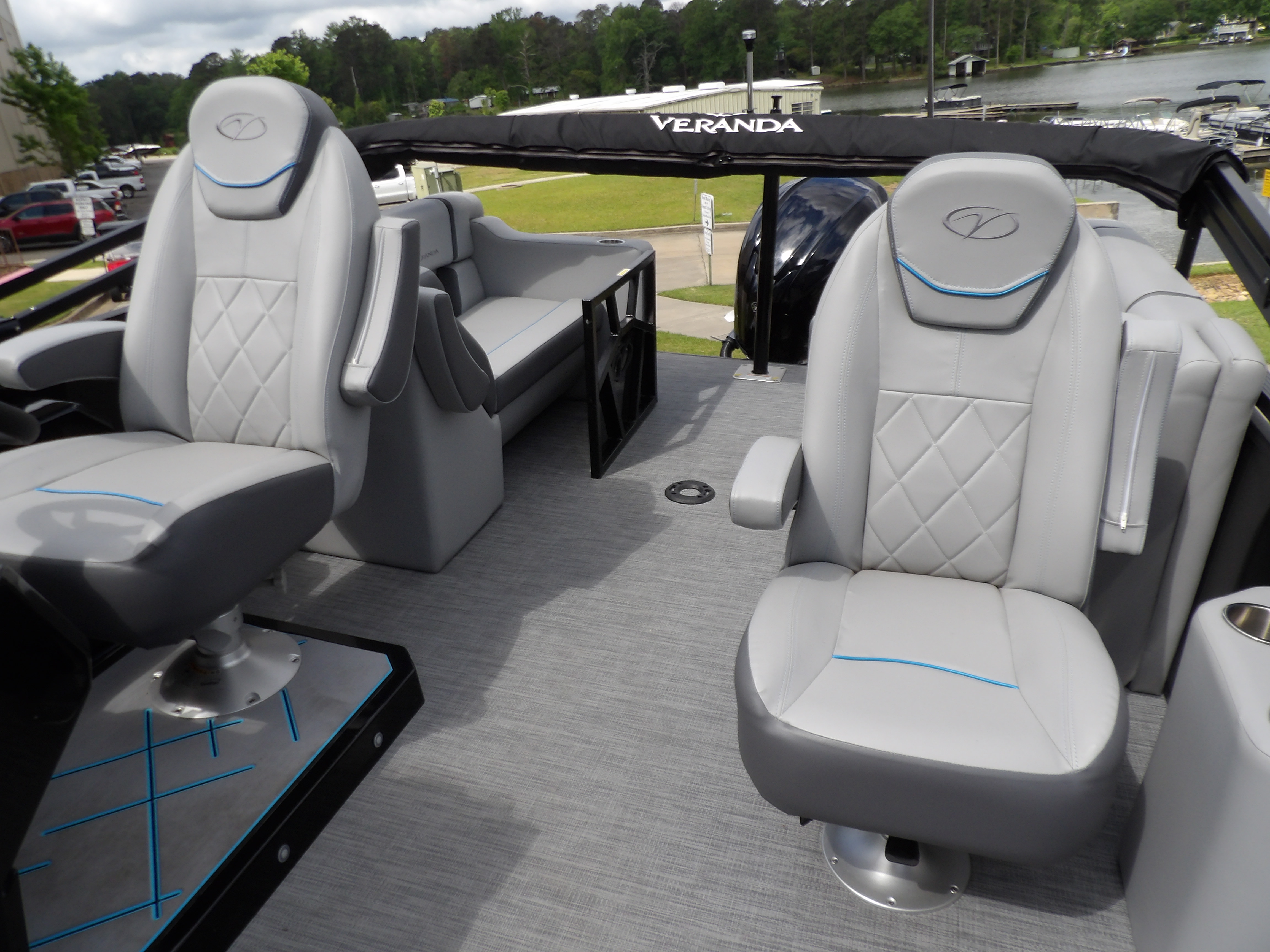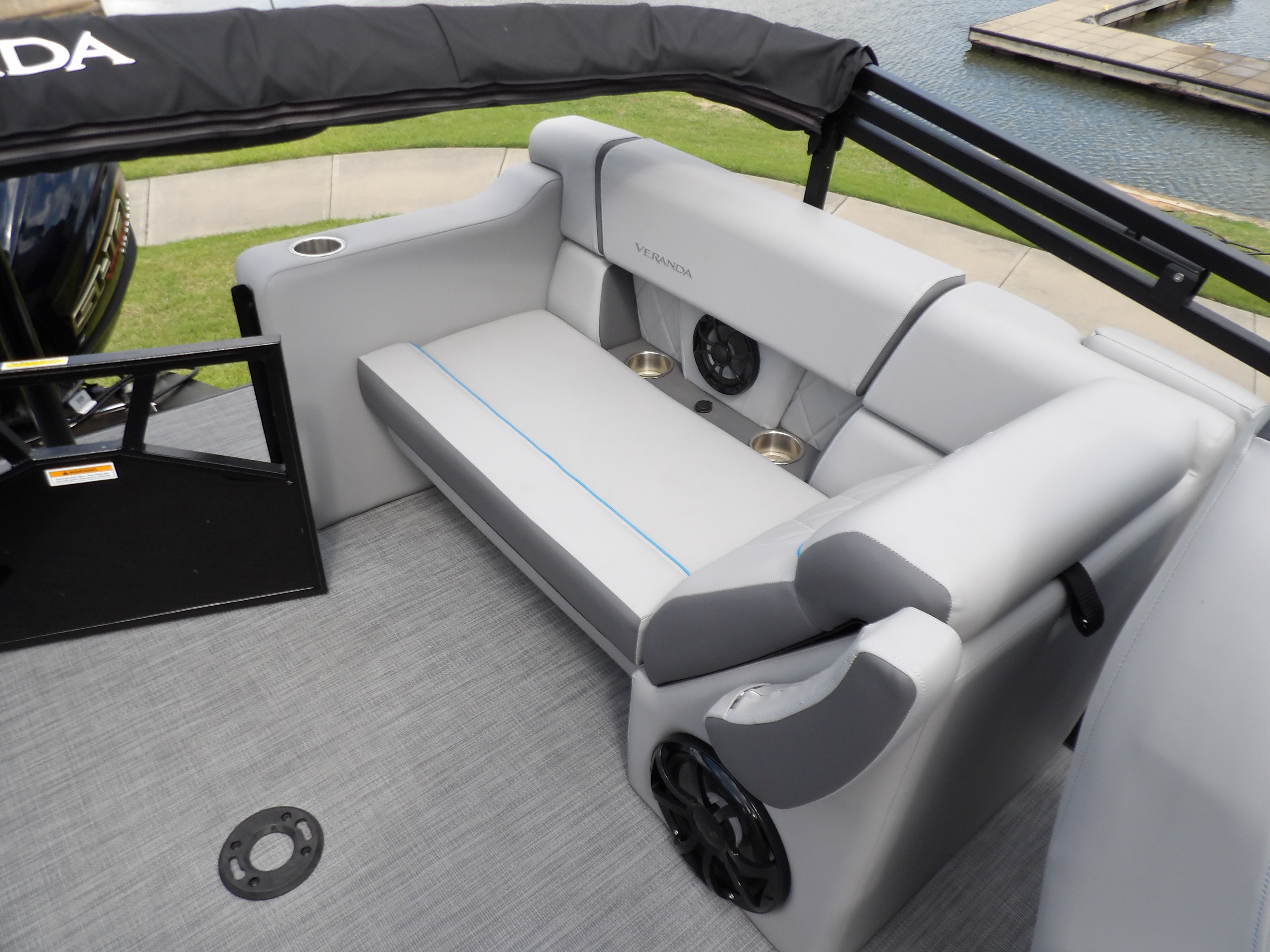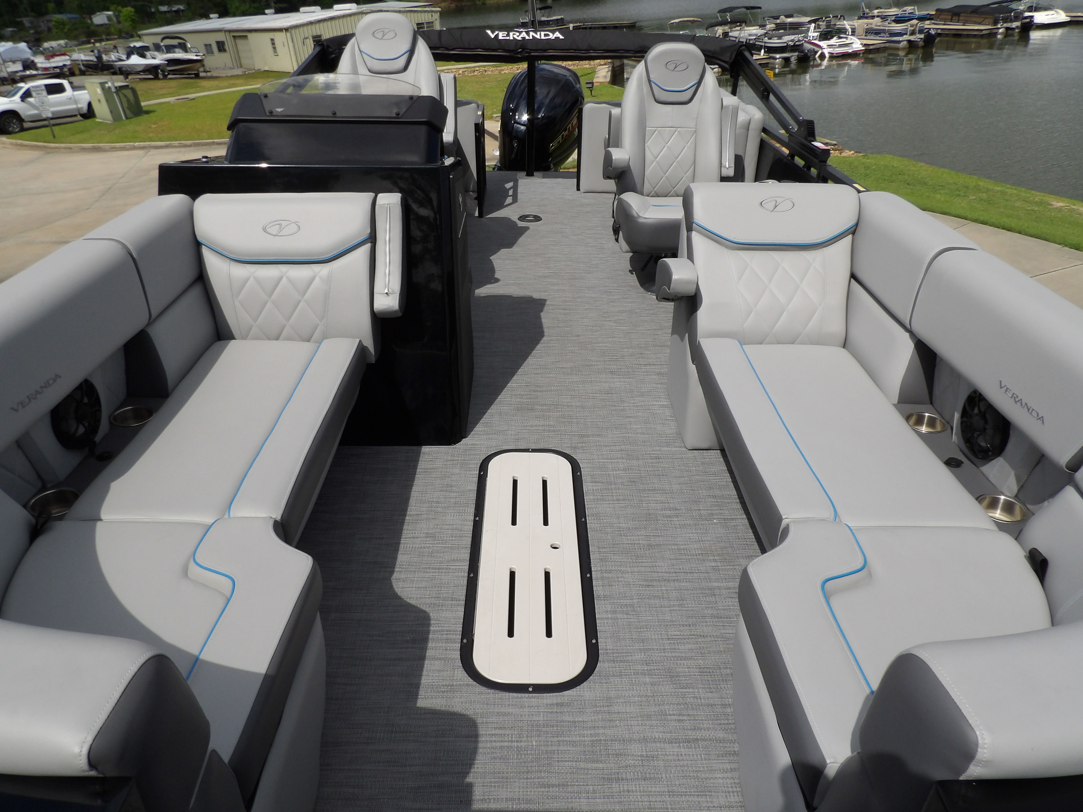 This New 2024 Veranda Vertex VX22RC Premium is heavily discounted & ready to go! Powered by Yamaha 250 HP SHO motor for top speeds in the mid to upper 40s, this tritoon will get you to your destination in no time. This Veranda tritoon is loaded with all the standard features of the Vertex Premium series from Veranda like dual touch screen Garmin displays, 4 zone LED lighting, Wet Sounds premium audio, power bimini top, cooled cup holder and much much more. We can deliver to your dock on the lake with purchase, or we have a selection of tritoon trailers available for purchase. For more details, the latest in pricing and incentives, call us at Sinclair Marine (478) 449-3300 or stop in and see us at 170 SInclair Marina Road Milledgeville, GA. Engine HP: 300 HP