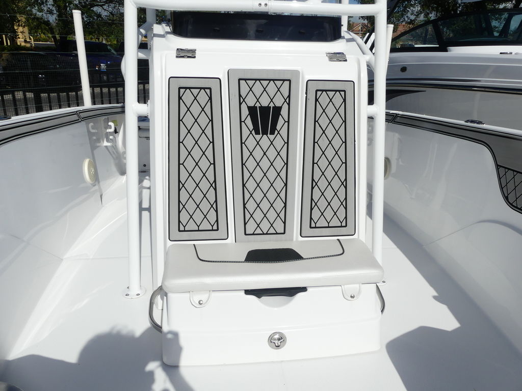 Smart SeatingHelm seating flips aft for more space when lounging or soaking a line.