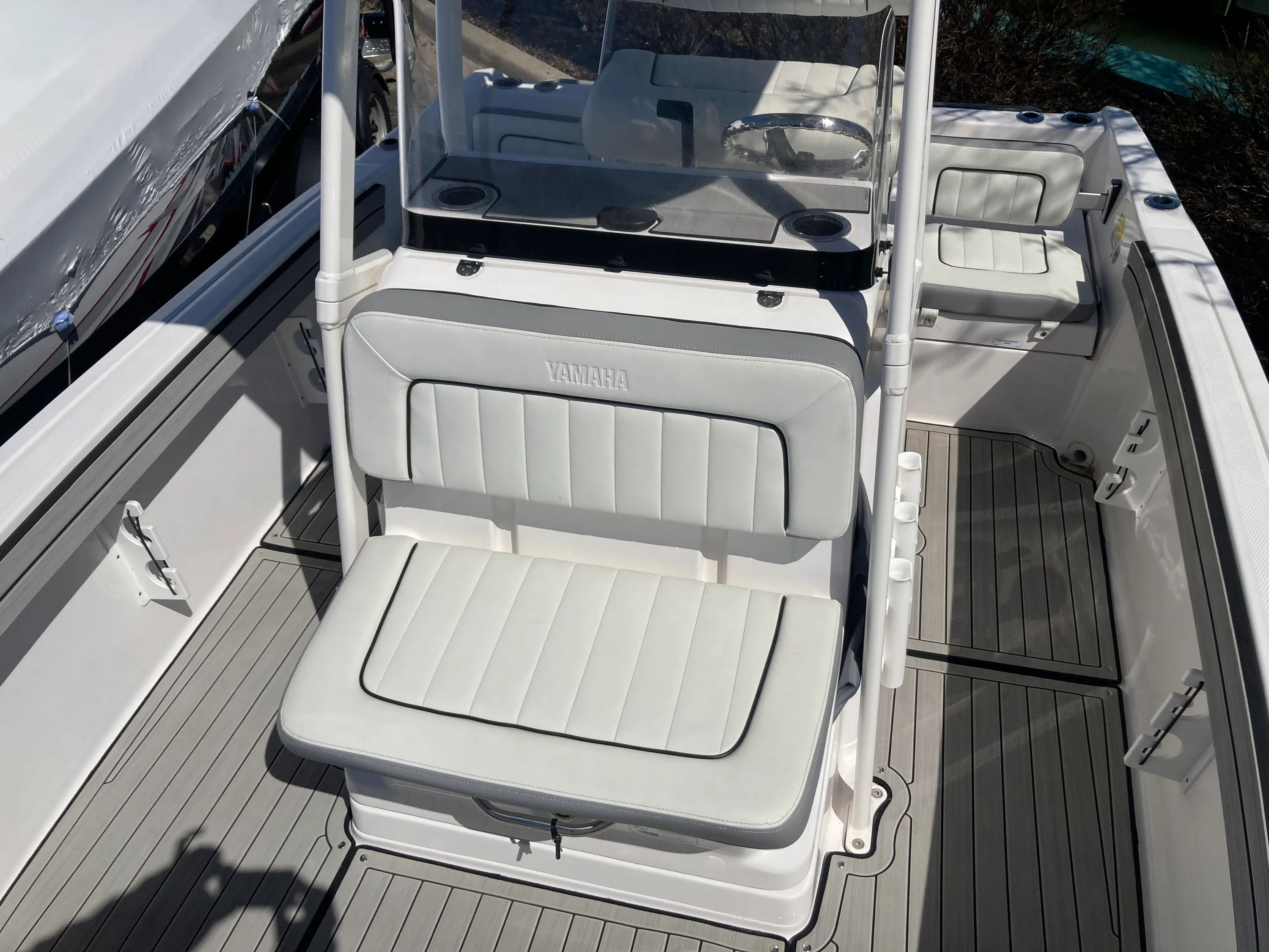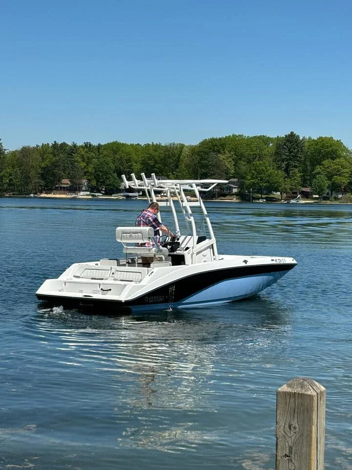 For sale is a pristine 2024 Yamaha 195 FSH Sport. This boat is the ultimate hybrid-a high-performance center console that excels in shallow water fishing, yet family-friendly for watersports. The 2024 Yamaha 195 FSH Sport is a 19-foot 5-inch center console jet boat powered by a 250-horsepower 1.8L Super Vortex High Output (SVHO) supercharged engine. Designed for fishing and family water sports, it features a 40-gallon fuel tank, 8-person capacity, T-top, and Connext touchscreen, offering high performance in a compact, versatile package. Includes an optional factory Yamaha cover and aluminum trailer with swing-away tongue. Skip the Dealer fees. Get a like new 2024 model with supercharged power for $41,499!