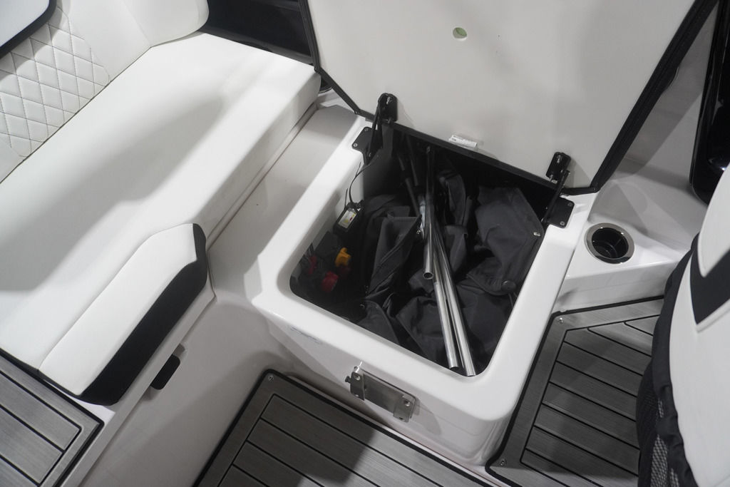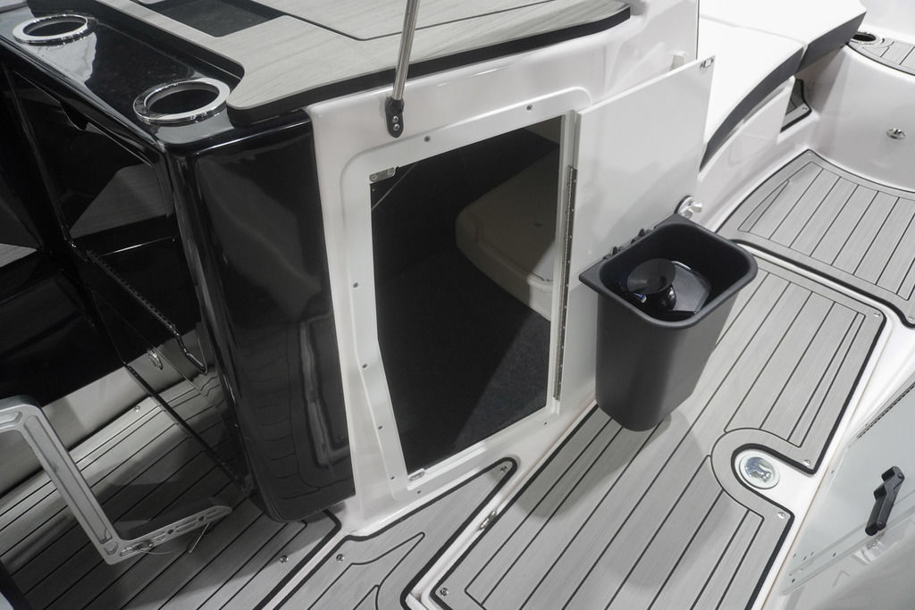 The spacious 22-foot layout features premium upholstery and generous seating, giving everyone plenty of room to relax and enjoy the ride. At the helm, the Connext touchscreen display provides intuitive control and real-time system monitoring, keeping everything at your fingertips. Abundant storage throughout the boat makes it easy to bring along gear, coolers, and watersports equipment without clutter.