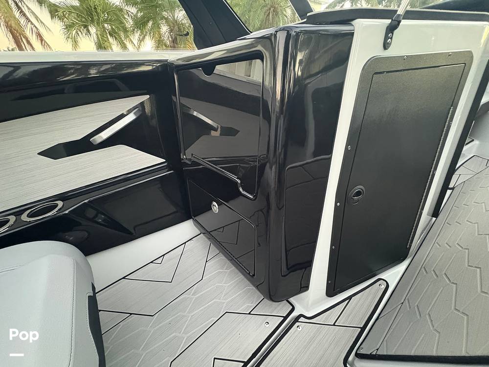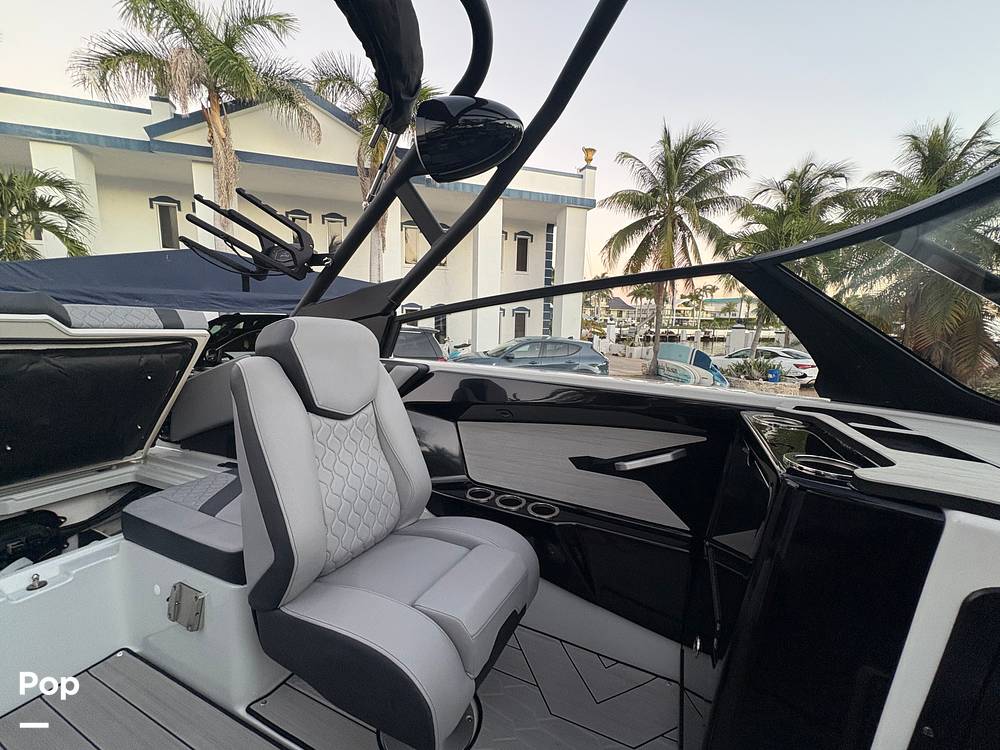 Inside, the spacious cockpit features premium upholstery, comfortable seating for family and friends, and generous storage for boards and gear.