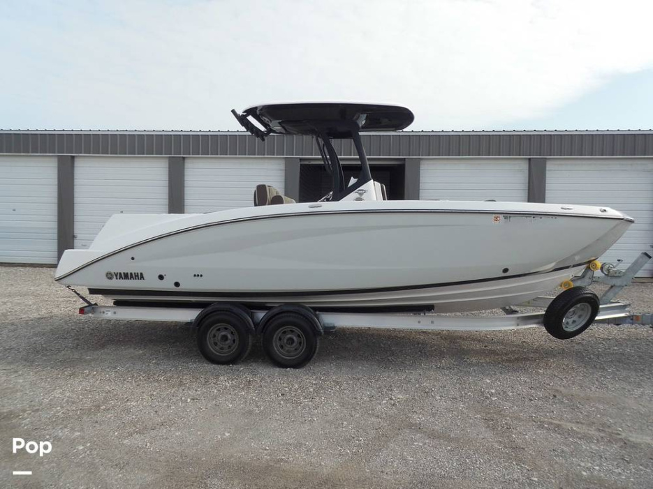 The Yamaha 255 FSH Sport H is a versatile 24' 6" jet-drive Center Console, blending serious fishing features with family-friendly water activities along with comfort. Featured with Yamaha's Helm Master EX joystick control for precise low-speed maneuvering and docking. The boat is powered by twin supercharged 1.8L SVHO engines (500 HP total) for impressive performance and shallow-water capability.