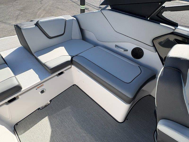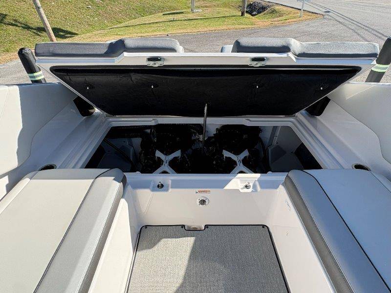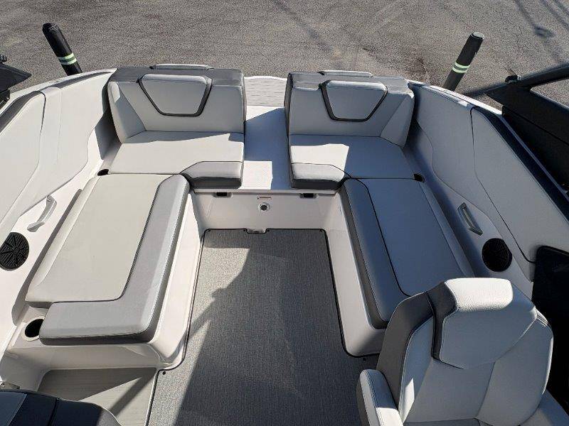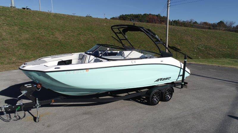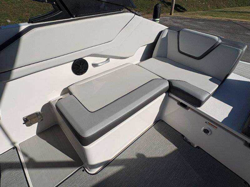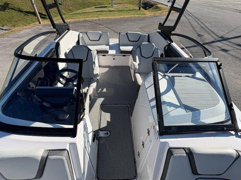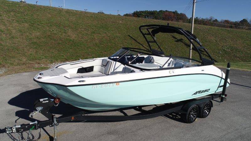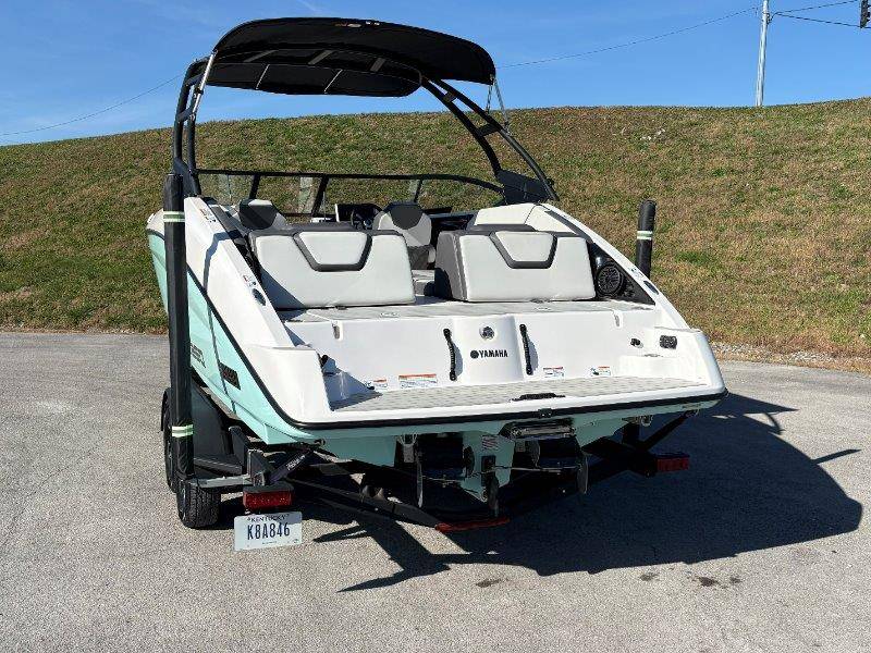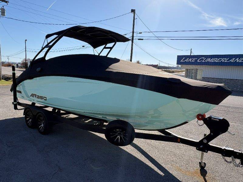 2024 Yamaha AR250 Twin Yamaha Marine 1.9 HO Engines Port Engine showing 52.6 Starboard showing 52.7 hours Rear Boarding Ladder Watersports Tower Bimini Top Full Cover Dual Batteries with Selector Switch Ski Locker Removable Dinette Table with Pedestal Hinged Seat Cushions Integrated Drink Holders Tilt Steering Adjustable Captain's Chair with Flip-up Bolster Walk-through Bow Door Courtesy Deck Lighting Dedicated Anchor and Rope Locker Bow Reboarding Ladder Cockpit Drainage System Integrated Swim Platform Upholstered Cushioned Backrests with Storage 12-volt Outlet Stainless Steel Telescopic Reboarding Ladder 7-inch Connext with Touchscreen Custom Fit Smartphone Holder Black Helm Switch Panels Premium Marine Stereo No Wake Mode Control Cruise Assist Compass Electronic Speedometer Fuel Management System