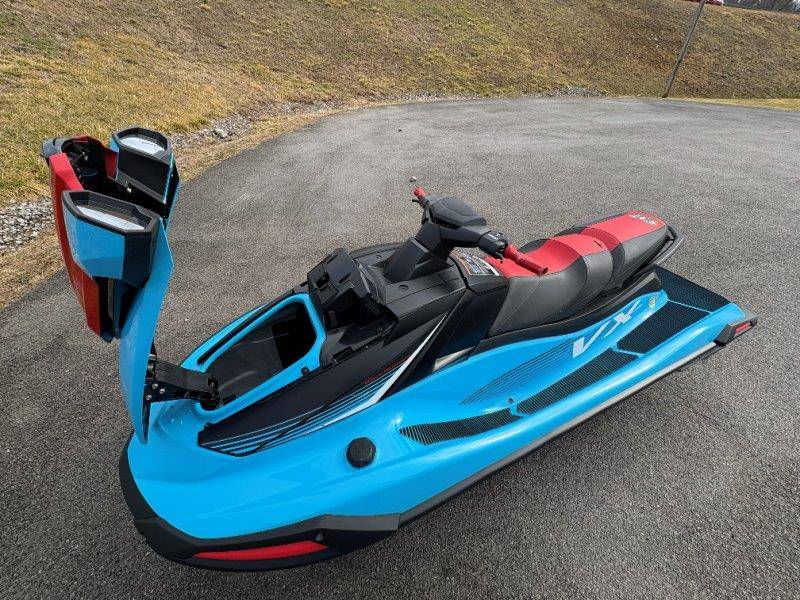 2024 Yamaha VX Cruiser Key Features and Specifications: Engine:  1.9L High Output Yamaha Marine Engine (4-cylinder, 4-stroke), upgrading from the previous 1.8L. Performance:  ~64-65 mph top speed, with improved acceleration and hole shot. Dimensions:  132.7" L x 48.8" W x 47.2" H. Weight & Capacity:  780 lbs dry weight; 3-person seating capacity. Fuel & Storage:  18.5 gal fuel capacity; 30.1 gal total storage. Technology:  4.3-inch Connext helm control with LCD screen, RiDEĀ® dual-throttle system (reverse/brake), and optional integrated Bluetooth audio. Comfort:  Signature 3-tiered, contoured Cruiser seat with lumbar support.