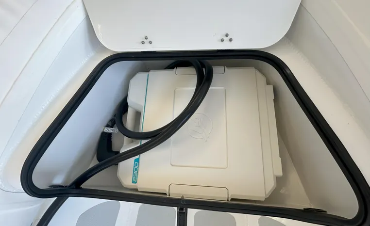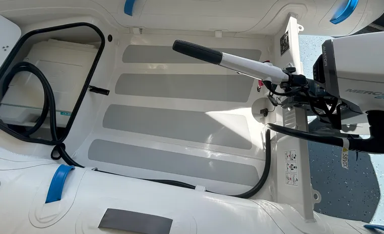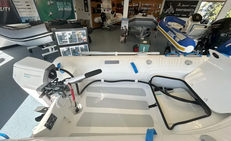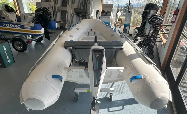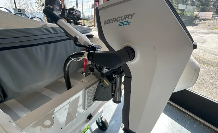 This ELECTRIC boat package has a large battery capacity, great thrust and extended range for your tender needs. No fuel, no maintenance, no noise.... the new way to boat! The Mercury Avator 20e is a perfect fit for your electric boat needs whether on the lake or on the ocean. This complete boat package includes the Nomad 2.7, Avator (not Nomad 3.1) 20e electric engine, 8' battery cable, 2300KW battery and 230W charger.