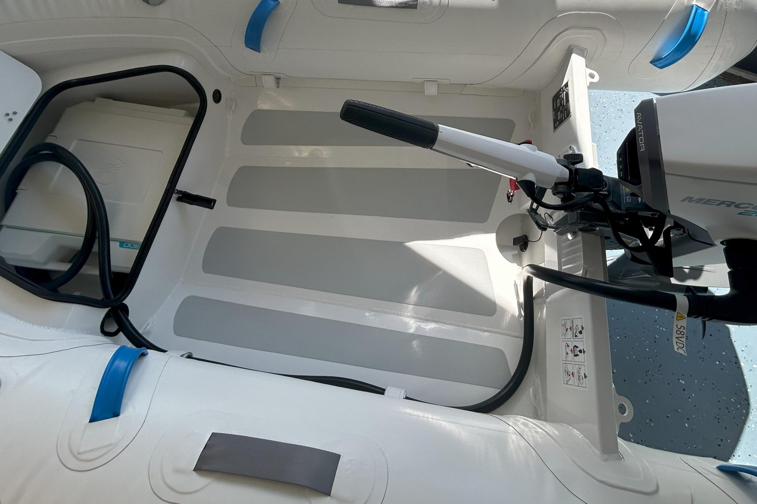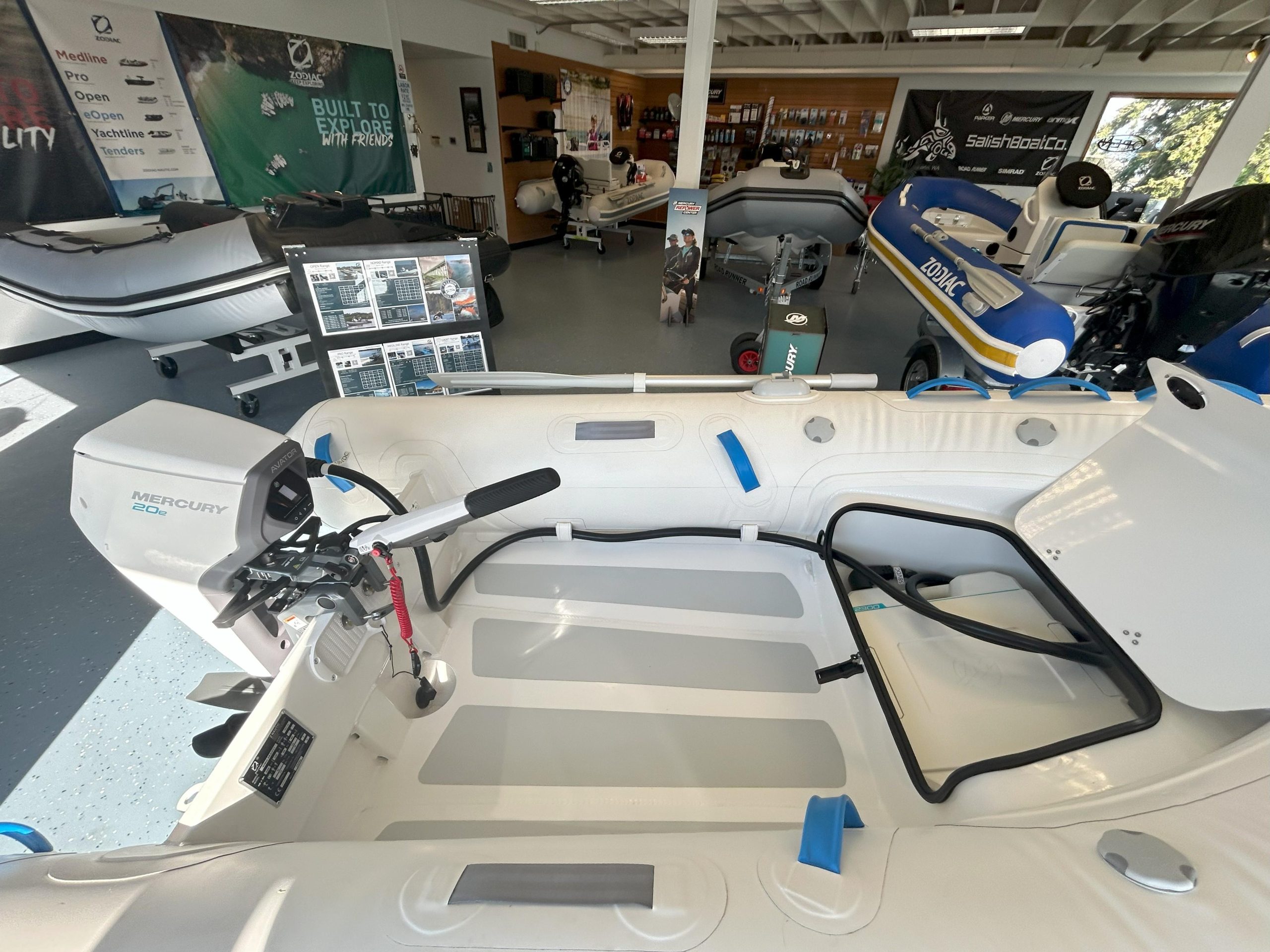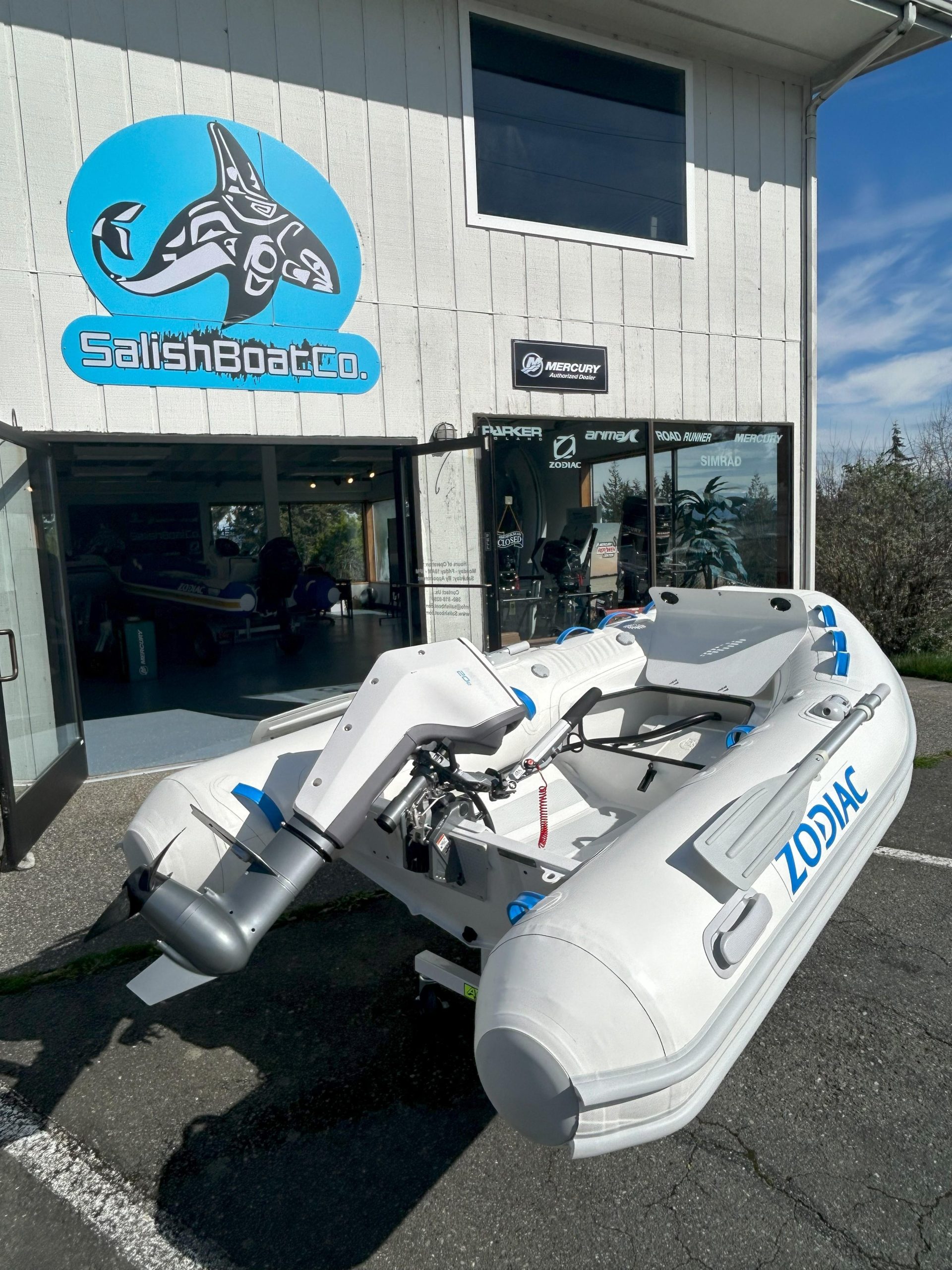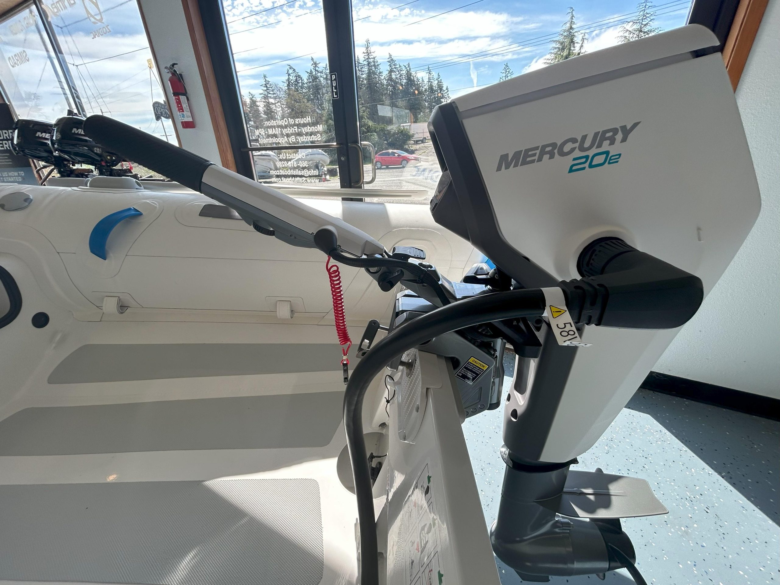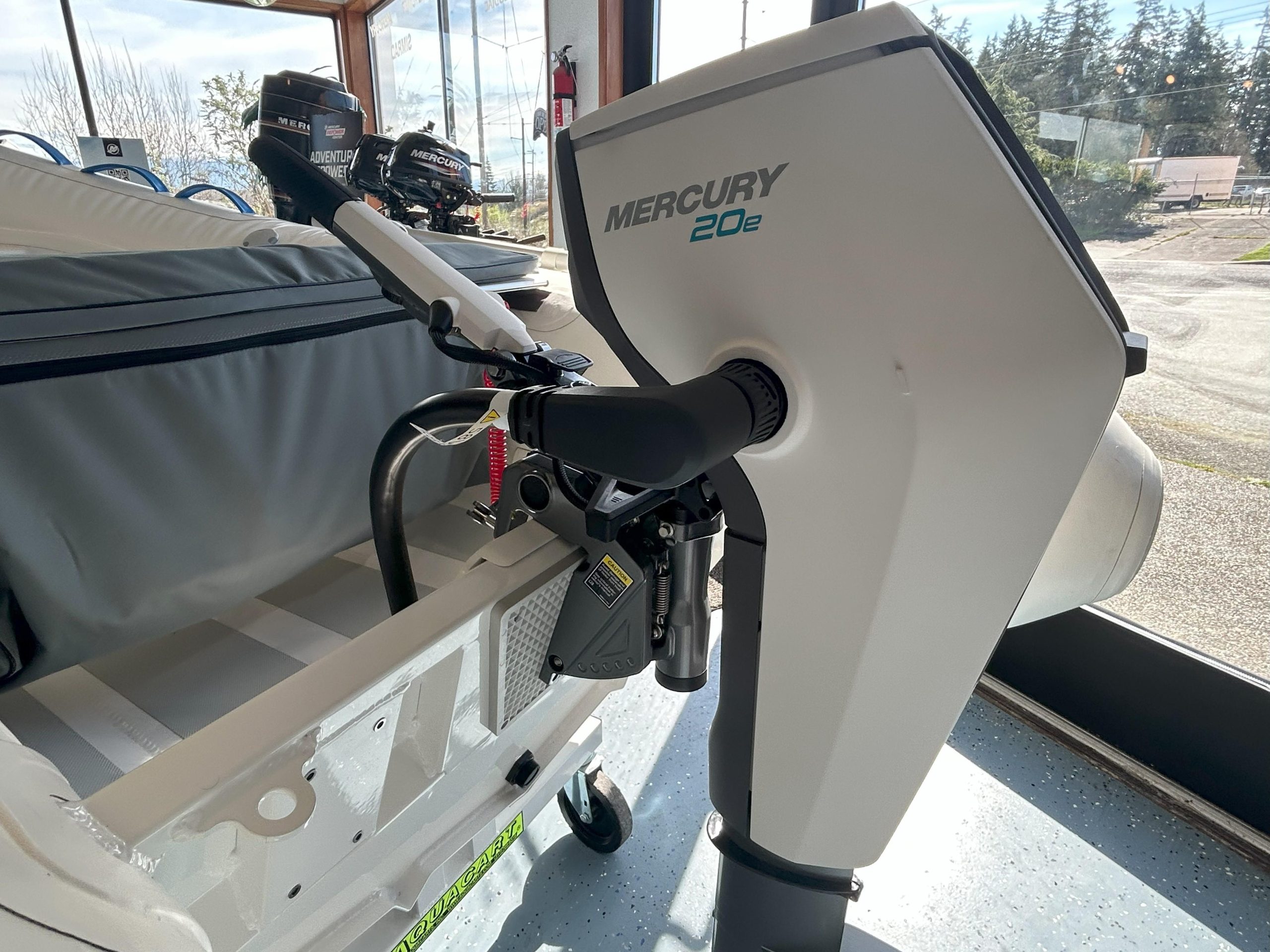 This ELECTRIC boat package has a large battery capacity, great thrust and extended range for your tender needs. No fuel, no maintenance, no noise.... the new way to boat! The Mercury Avator 20e is a perfect fit for your electric boat needs whether on the lake or on the ocean. This complete boat package includes the Nomad 2.7, Avator (not Nomad 3.1) 20e electric engine, 8' battery cable, 2300KW battery and 230W charger.