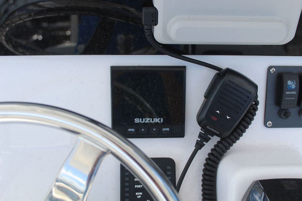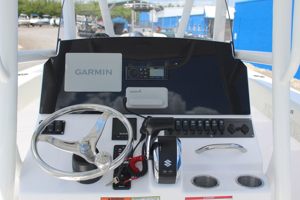 Advanced Technology: Features a Garmin GPS/Chartplotter, marine audio system, and Bluetooth capabilities for navigation and entertainment.