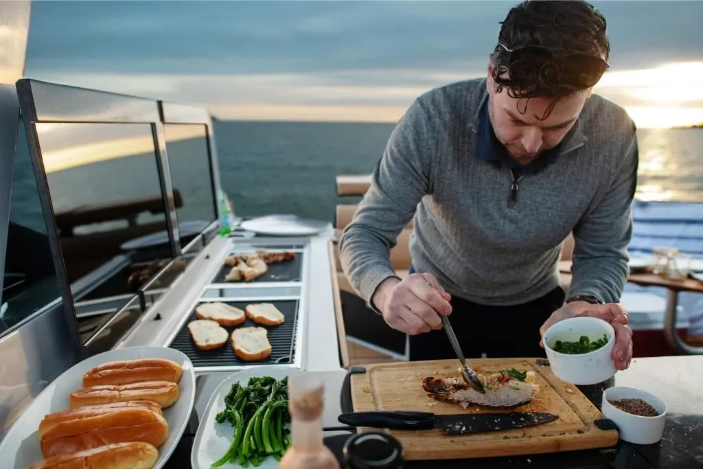 Step aboard and immerse yourself in the lavish comforts of the Aviara AV40 Outboard. From the sleek lines of its design to the premium finishes throughout, every detail exudes sophistication and elegance.