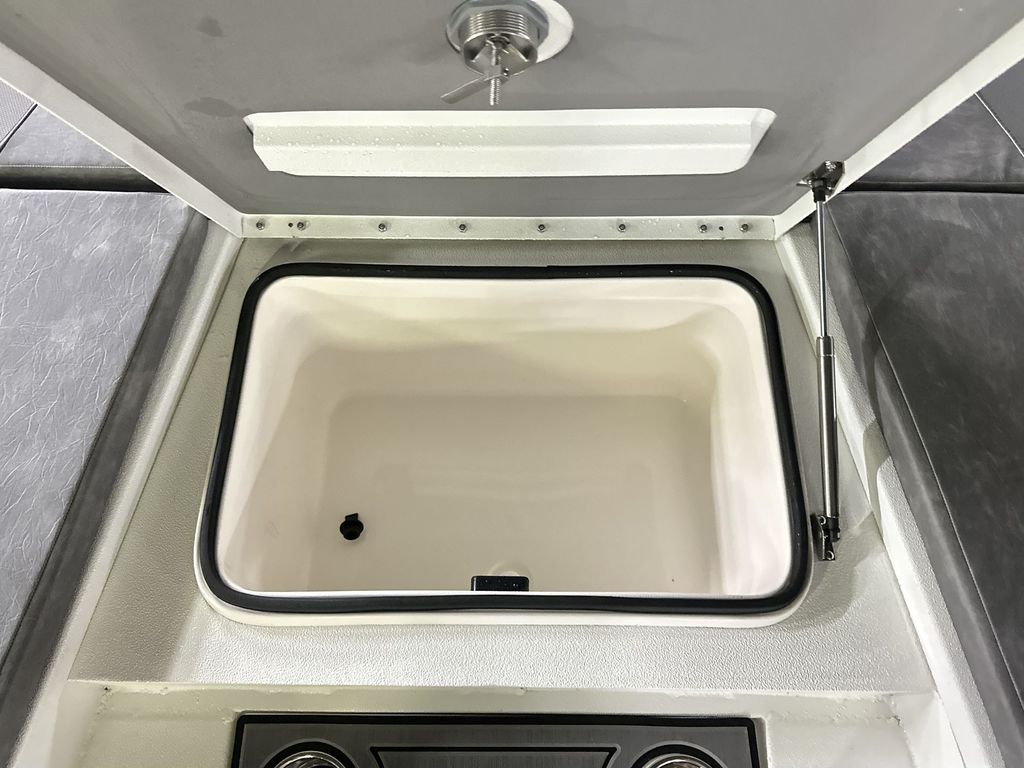 - Bow Insulated 100 qt Fish Box/Storage w SS Gas Shock Support & Overboard Drain