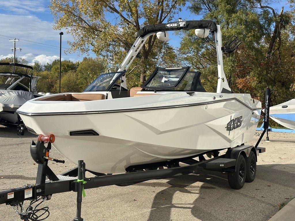 2025 Axis T220 - Arctic White / Sepia Brown!!! This Arctic White 2025 Axis T220 looks amazing! Powered by the quiet and reliable Malibu Monsoon M5Di engine, this boat offers exceptional torque and extremely smooth handling. With the Power Wedge III and Surf Gate with Axis Surf Band, you can craft the perfect wake or wave for riders of all skill levels. The 3-Tank Hard Ballast system, combined with plug’n’play plumbing and additional ballast bags, ensures endless customization of your waves and wakes. A user-friendly touchscreen display with rider presets simplifies operation, so you can focus on enjoying your time on the water. Notable Options Include:Malibu M5Di EngineSurf GatePower Wedge IIISurfpipe ExhaustAW20 Tower with ShockSpinner Board RacksBimini TopWet Sounds Icon 8 Tower SpeakersChillAX Flip-up SeatsGarmin TouchscreenRider PresetsSoft-Grip FlooringSKYBOX SeatingSki PylonDocking Lights Additional Details: The 2025 Axis T220 is designed to deliver premium wake performance and comfort in a sleek, affordable package. Whether you’re surfing, wakeboarding, or cruising, this boat has the features to elevate your time on the water. From its advanced wave technology to its comfortable seating and soft-grip flooring, the T220 offers unmatched versatility and convenience. Why Choose Gull Lake Marine? With over 100 years of boating experience, Gull Lake Marine is West Michigan’s trusted marine dealership. We provide factory-certified, inboard technicians and the most up-to-date training to ensure your Axis operates at peak performance. Every Axis purchase includes:Free Delivery within 15 milesOn-Water Orientation with our trained Delivery CaptainFree Watersports Lesson to get you started For more details, visit GullLakeMarine.com, email us at sales@GullLakeMarine.com