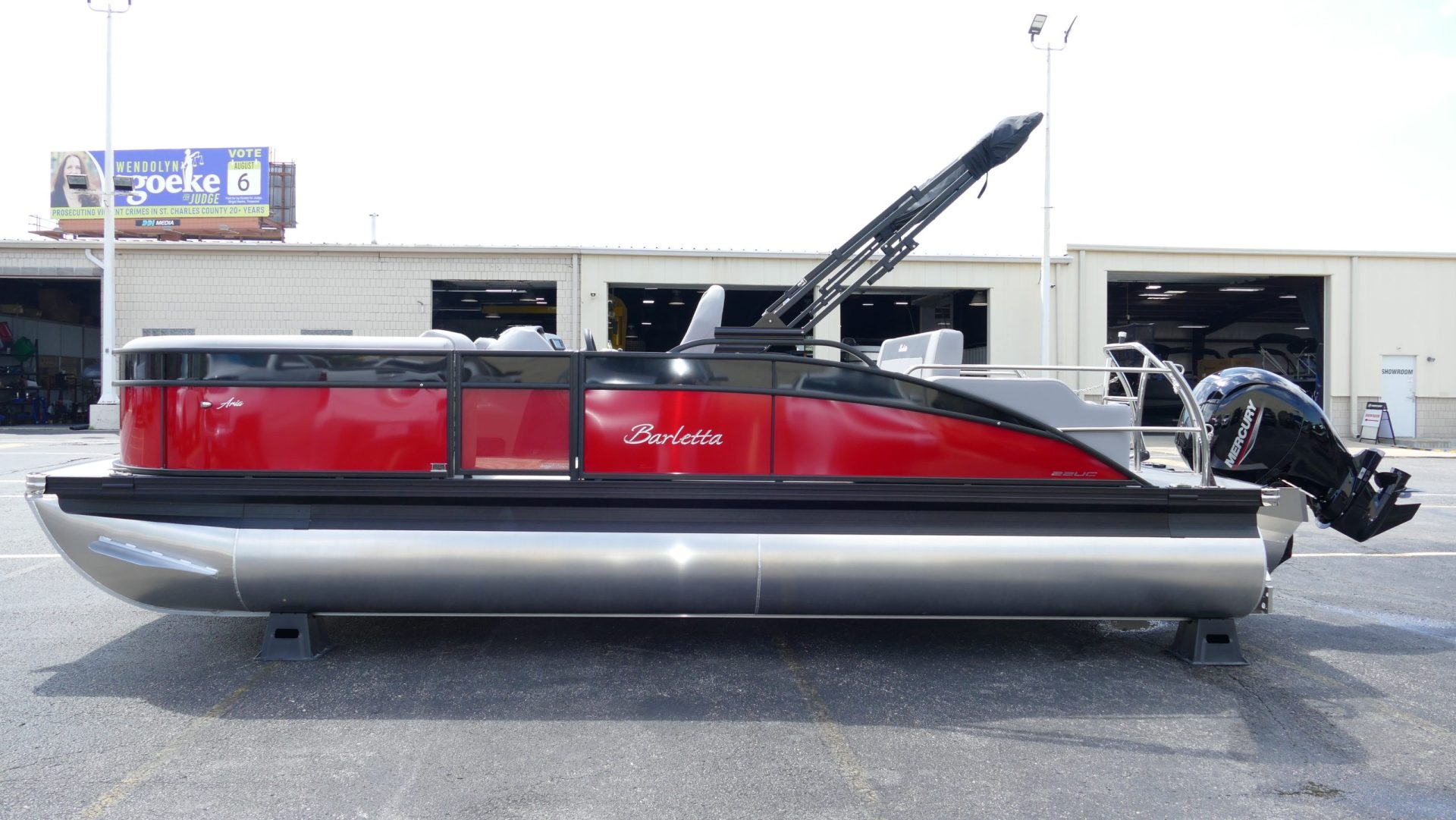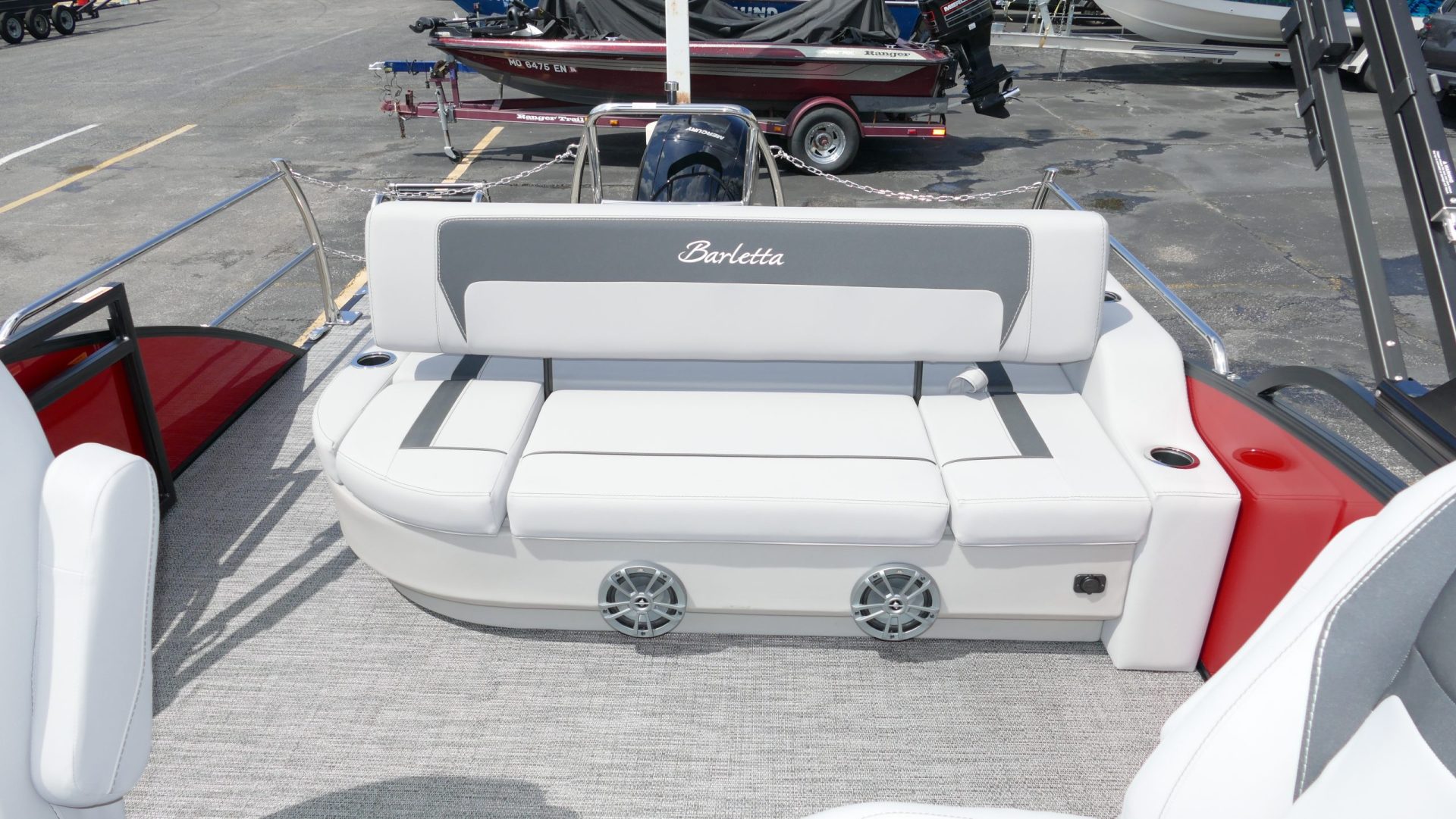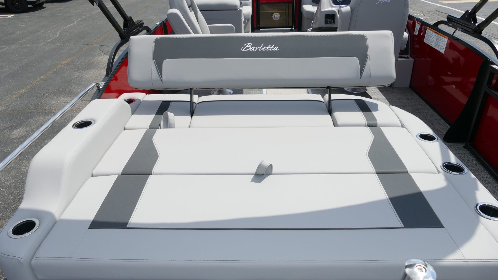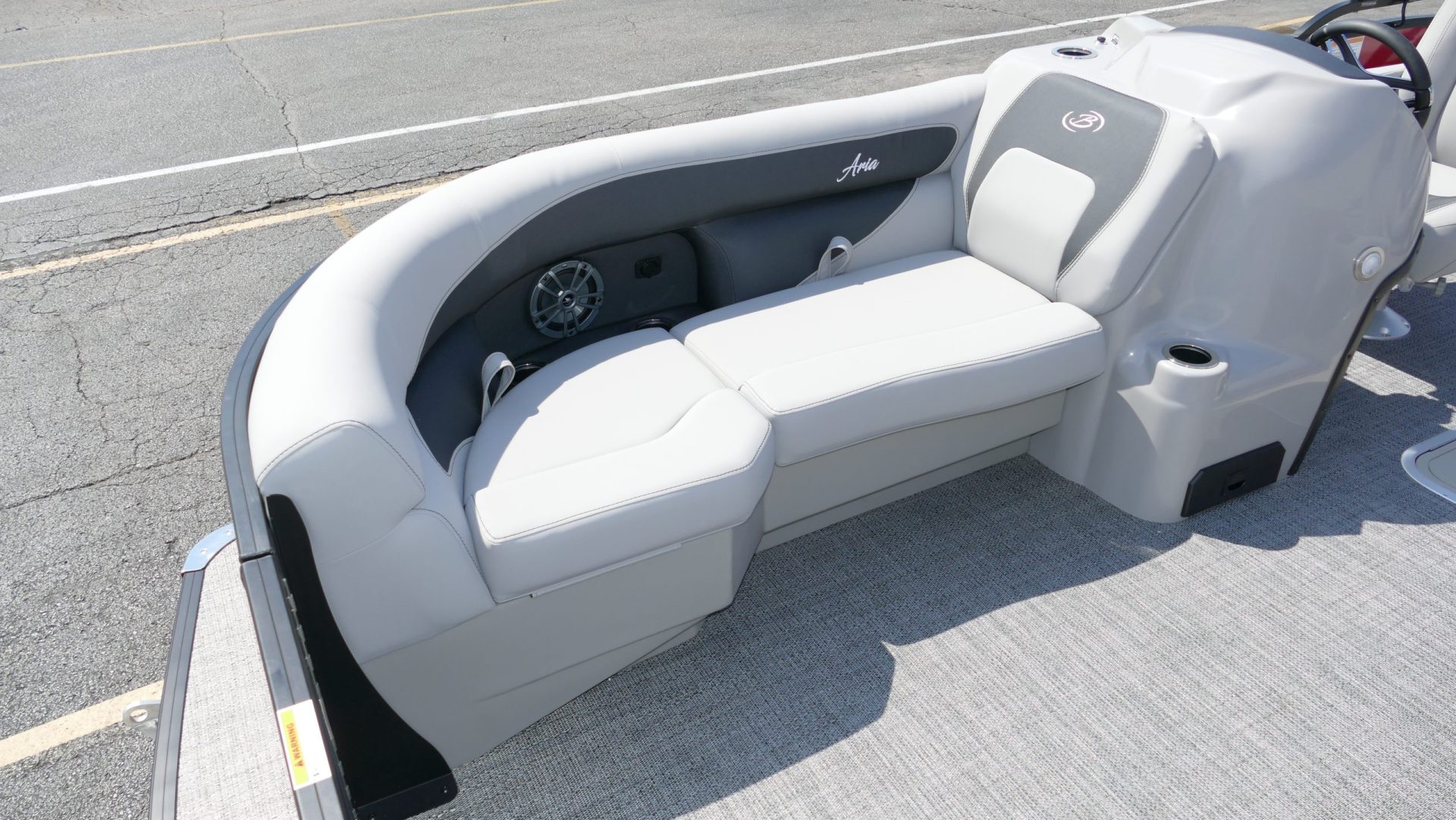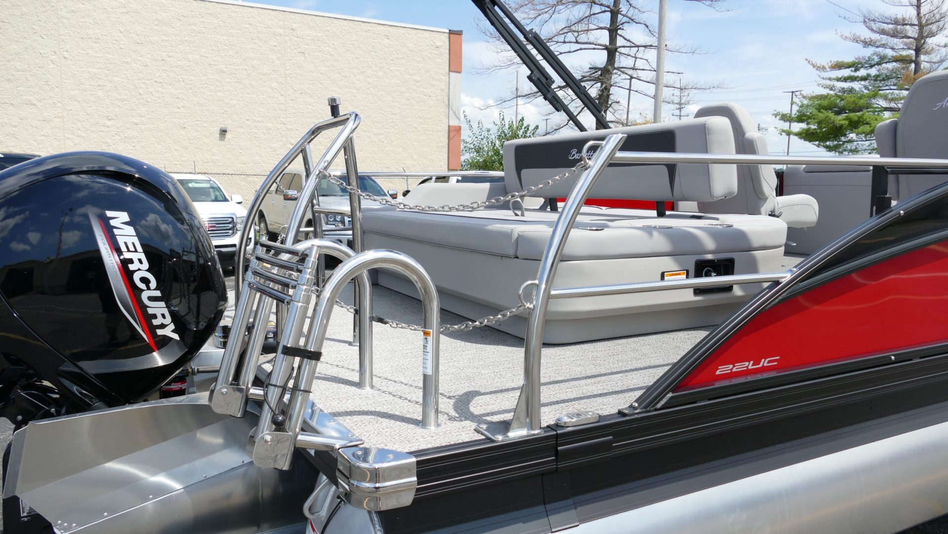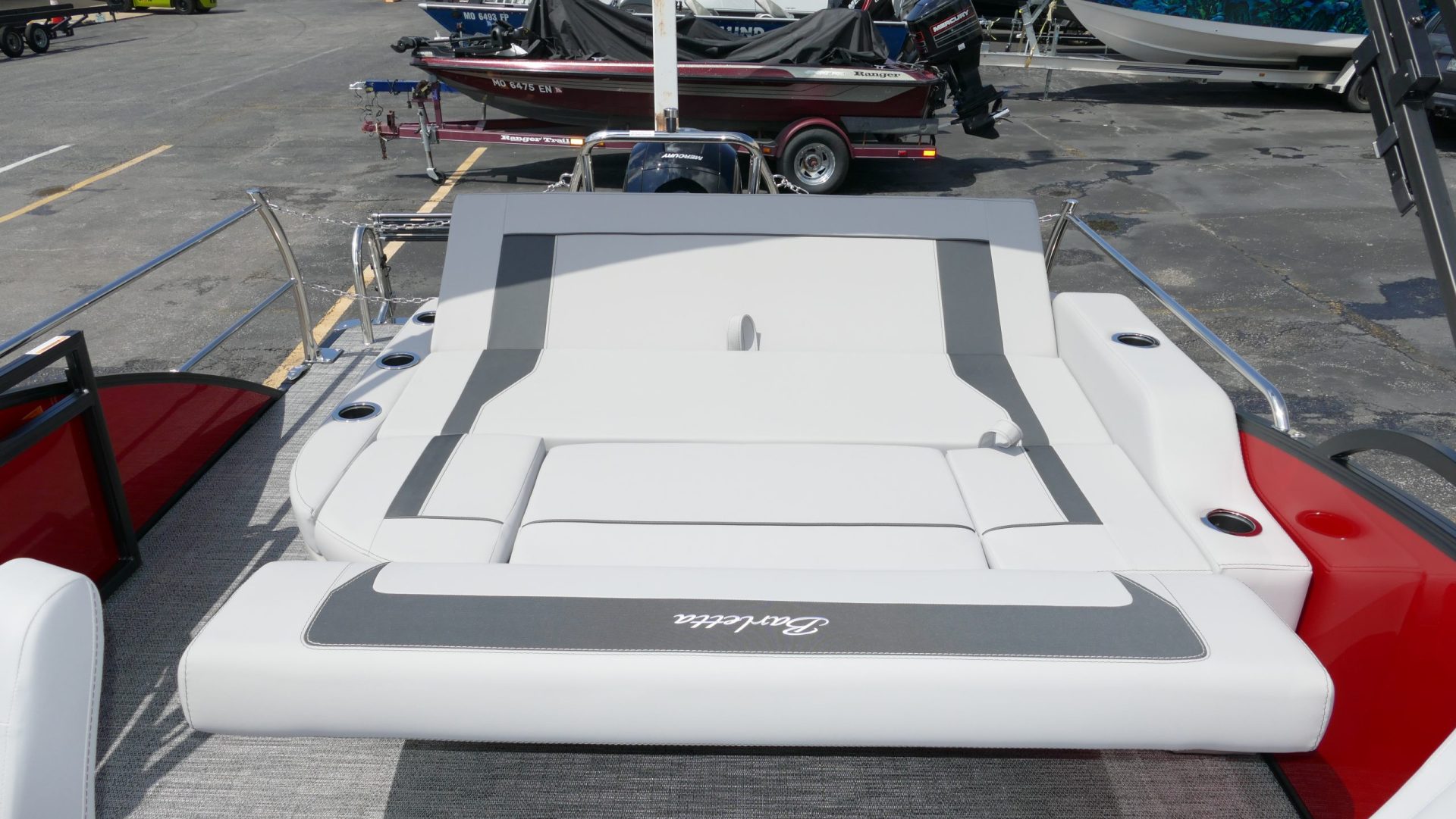 Railskin Color - Macau Red, Railskin Accent Color: Black Diamond, Interior Colors : Tempest Gray / Black Accent, Flooring : Amore Gray Full Length Flooring, Aria Tri Toon Package Includes: 25" Center Tube With 53 Gallon Fuel Tank, Full Lifting Strakes (Inside & Outside), Hydraulic Steering, Ski Tow Bar, Full Belly Skin, Aria Blackout Package Includes : Black Rails, Black Bimini, Black Rubrail, Black Skirting, Black Shims And Gate Pockets, Black Heavy-Duty Rail Supports, Mercury 150L. 4 Stroke, In Floor Midship Storage, Stainless Steel Safety Stanchions With Chains, Propeller, Lifetime + 10 Year Bow To Stern Warranty. Trailer Available For A Additional Cost.