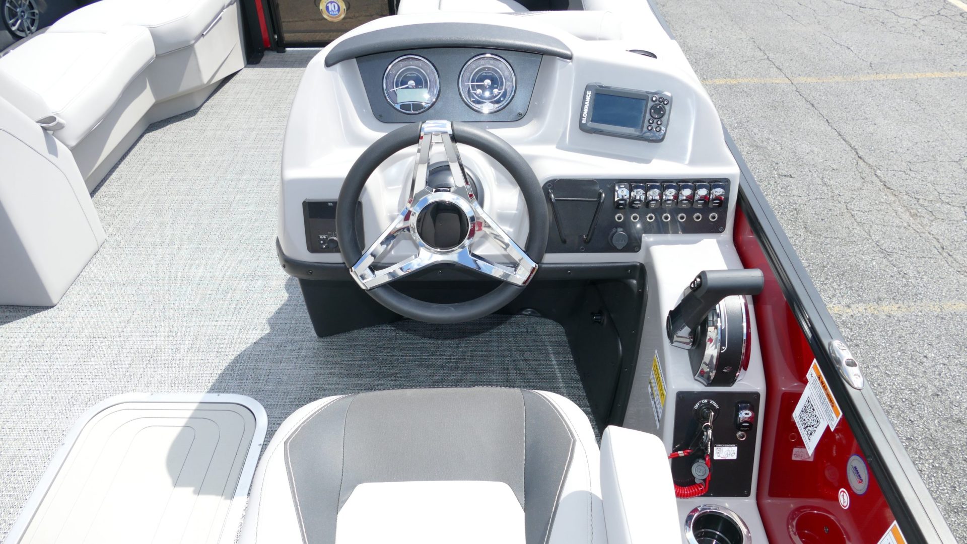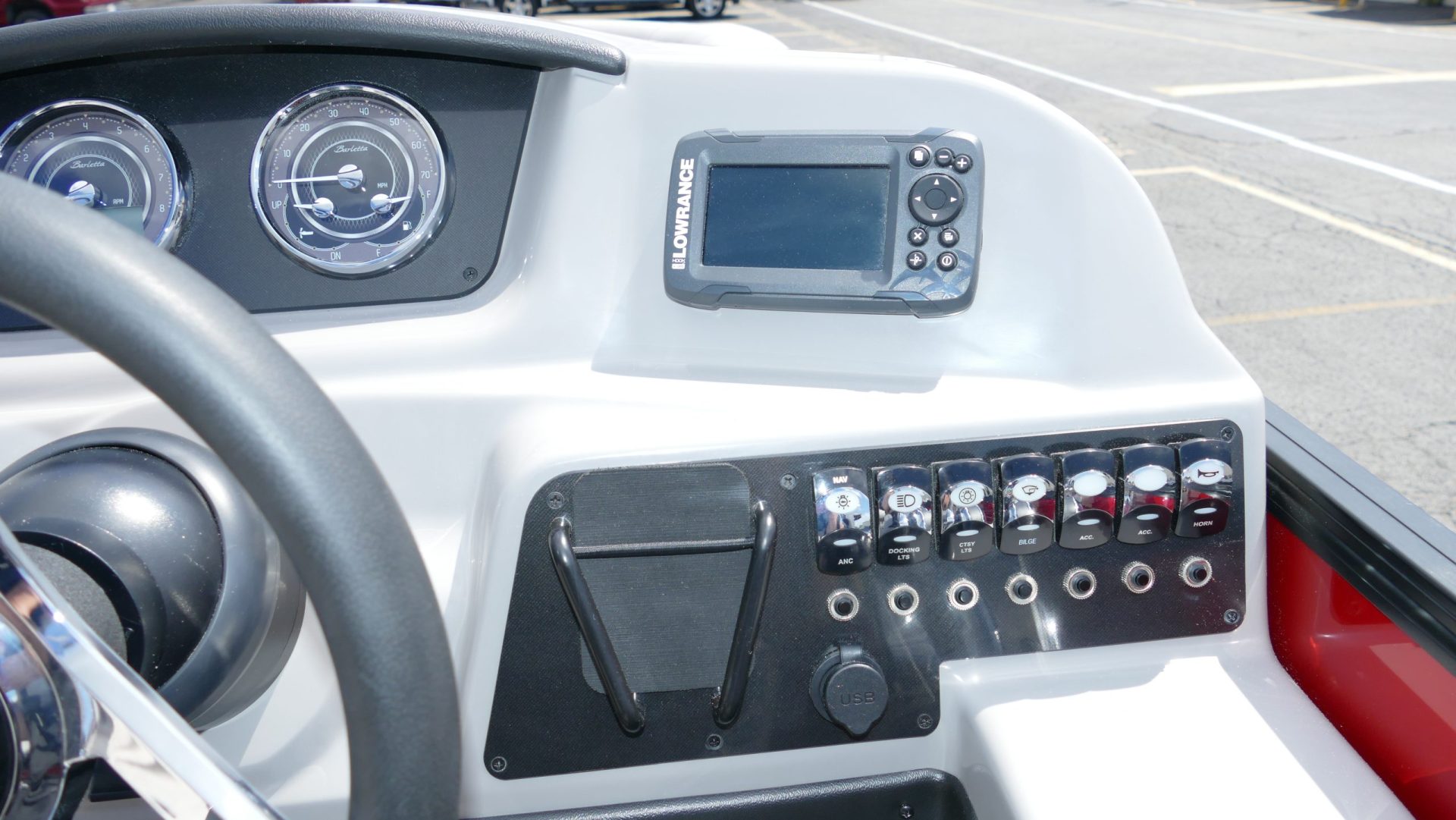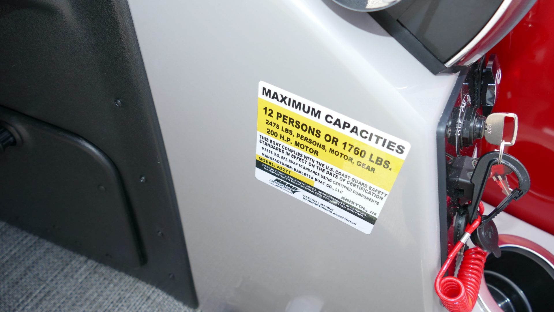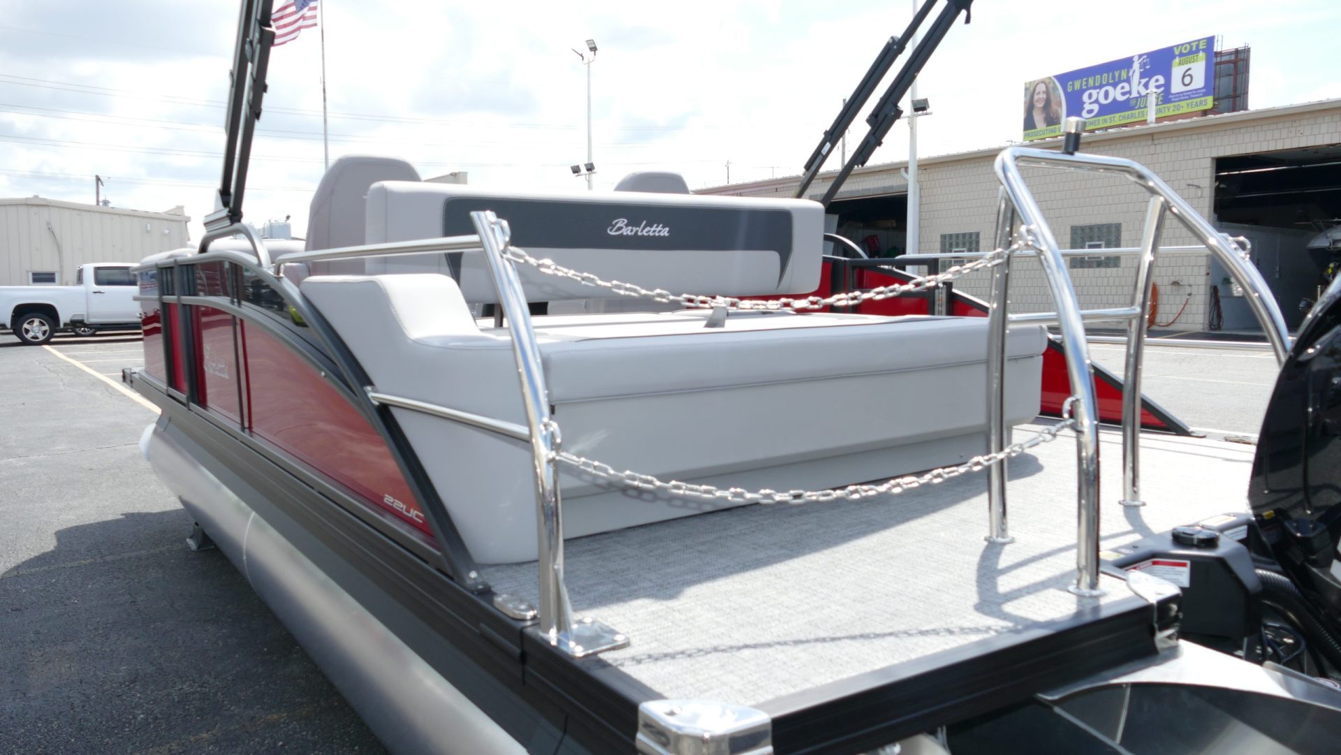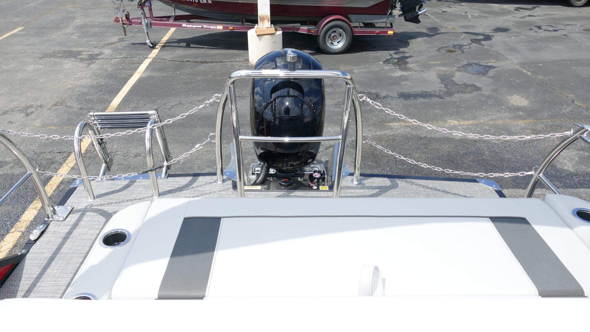 Railskin Color - Macau Red, Railskin Accent Color: Black Diamond, Interior Colors : Tempest Gray / Black Accent, Flooring : Amore Gray Full Length Flooring, Aria Tri Toon Package Includes: 25" Center Tube With 53 Gallon Fuel Tank, Full Lifting Strakes (Inside & Outside), Hydraulic Steering, Ski Tow Bar, Full Belly Skin, Aria Blackout Package Includes : Black Rails, Black Bimini, Black Rubrail, Black Skirting, Black Shims And Gate Pockets, Black Heavy-Duty Rail Supports, Mercury 150L. 4 Stroke, In Floor Midship Storage, Stainless Steel Safety Stanchions With Chains, Propeller, Lifetime + 10 Year Bow To Stern Warranty. Trailer Available For A Additional Cost.